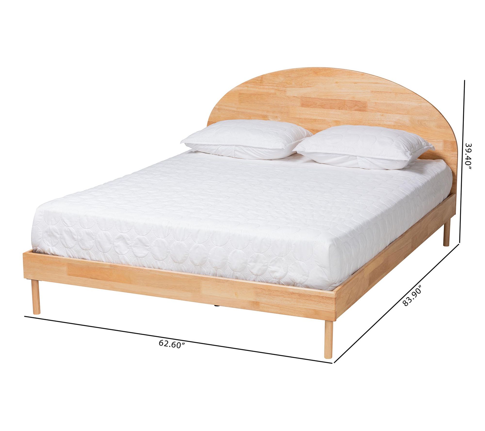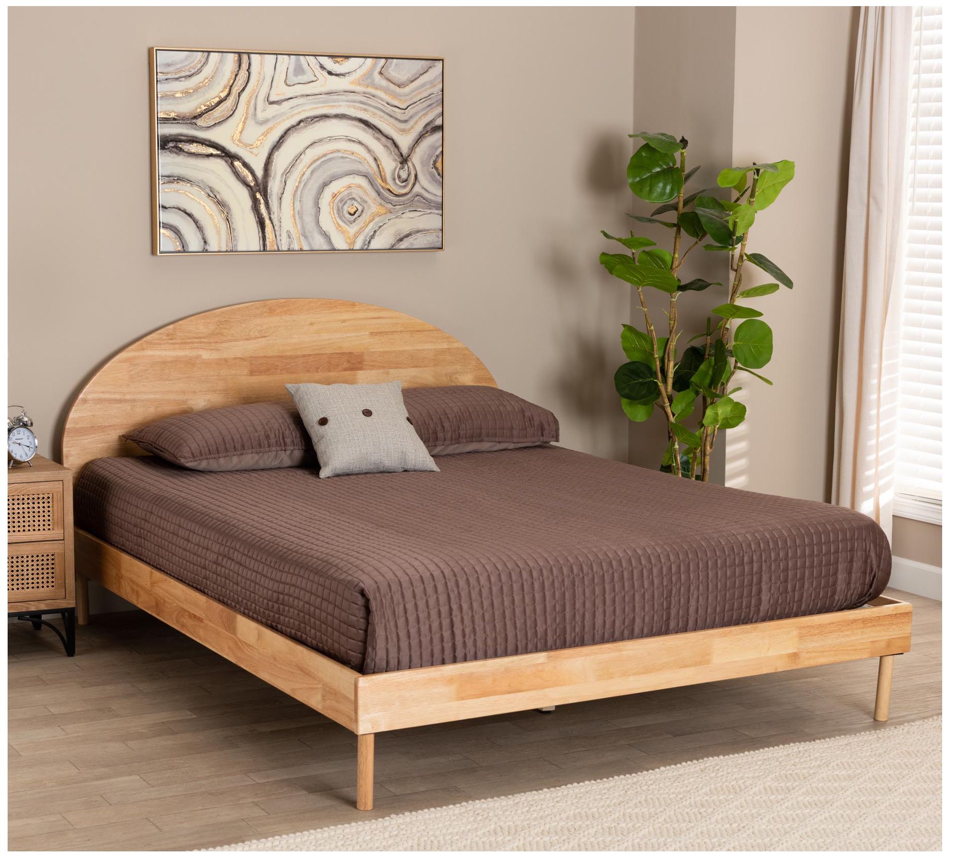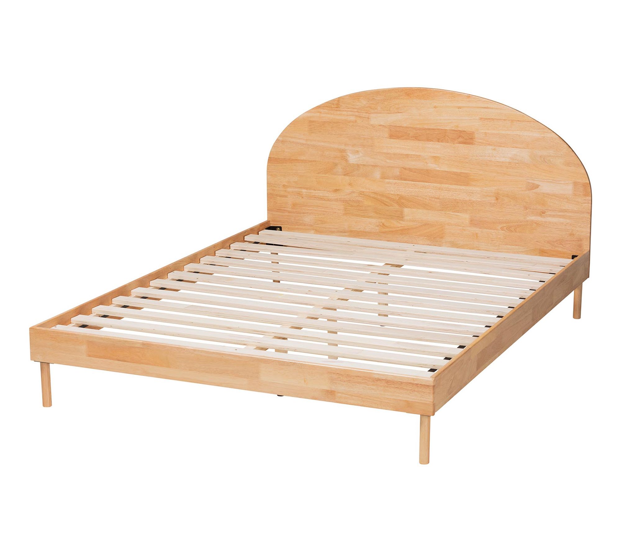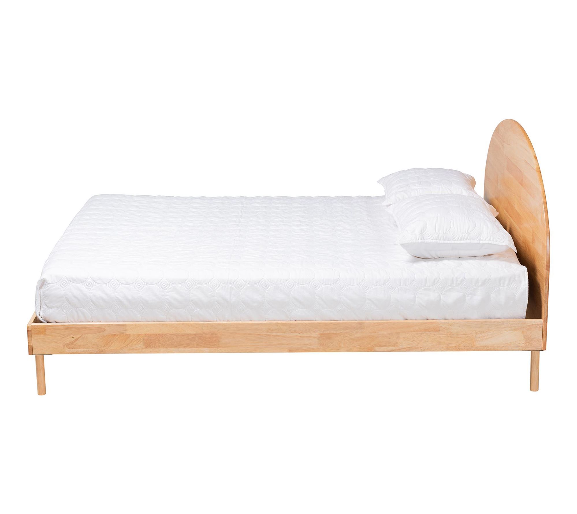 Transform your bedroom into a serene retreat with the Baxton Studio Denton queen platform bed. The Japandi-style bed features a round headboard with rich geometry, providing optimal support for sitting and relaxing. From Baxton Studio.