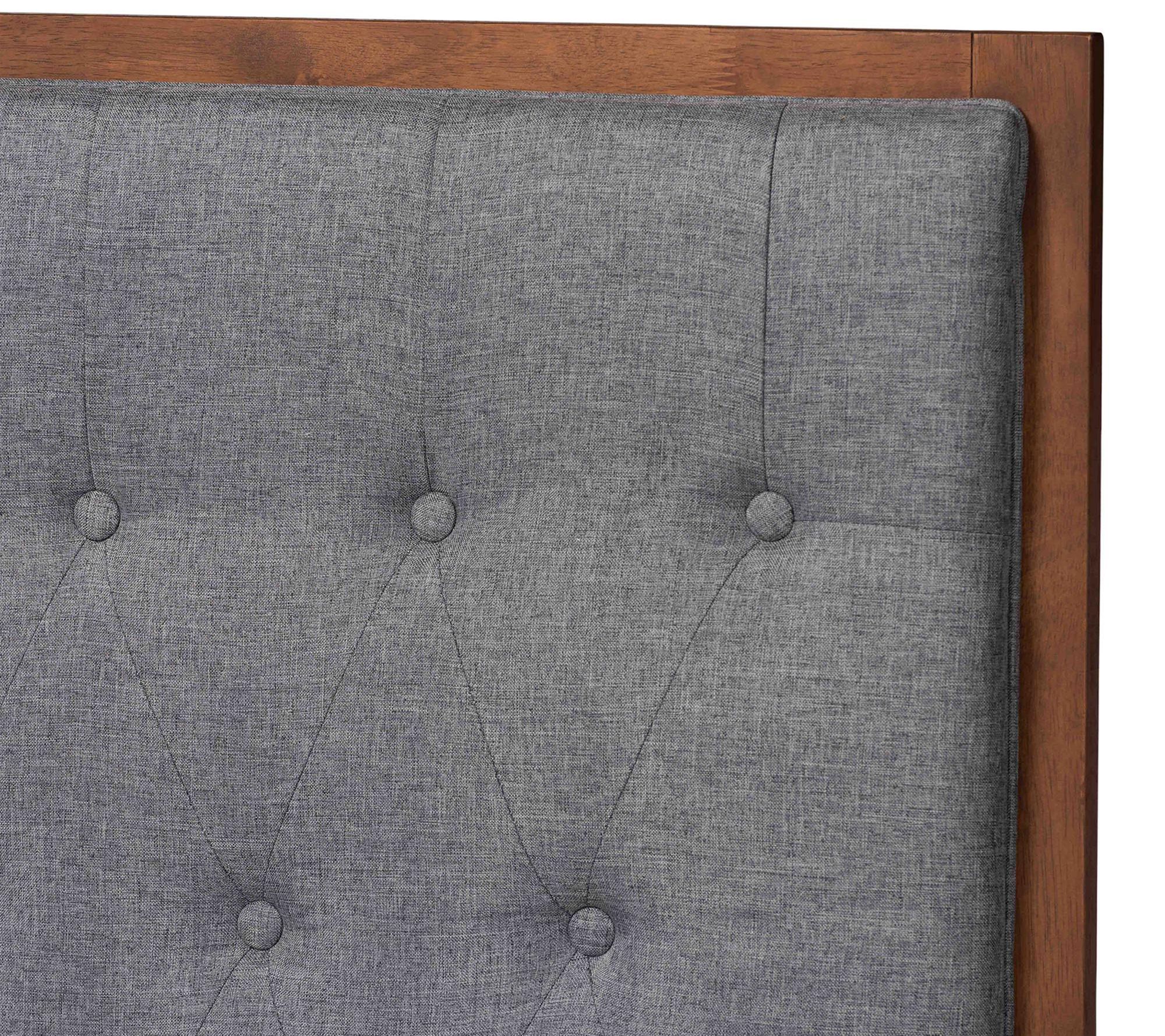 Baxton Studio Dericia Grey Fabric Brown Wood King Platform Bed