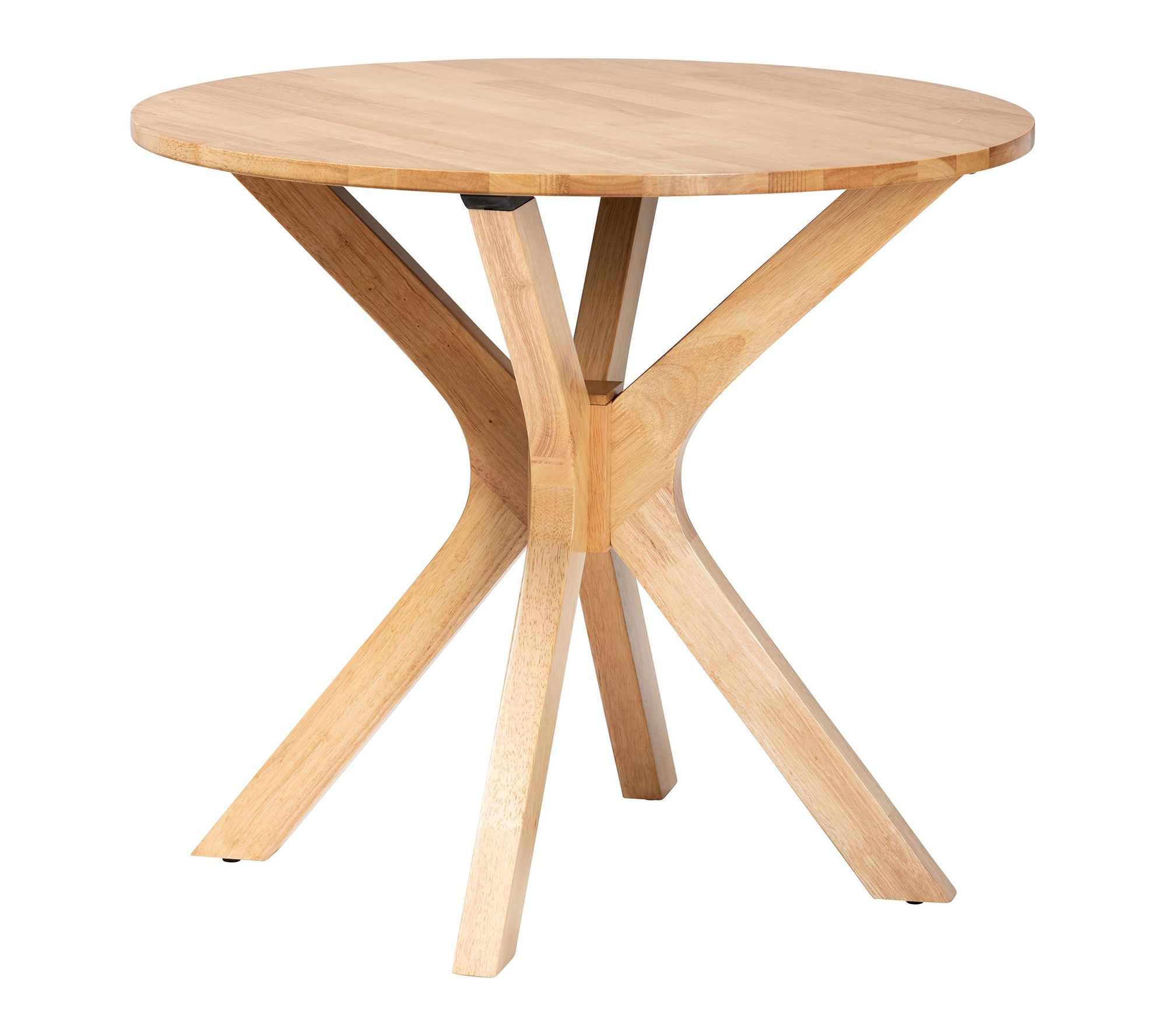 Bring charm and sophistication to everyday meals or special gatherings with this five-piece dining set. The wood table offers a spacious round top for serving up family favorites, while the curved chairs with woven rattan-inspired backs keep guests comfortable throughout every course. From Baxton Studio.