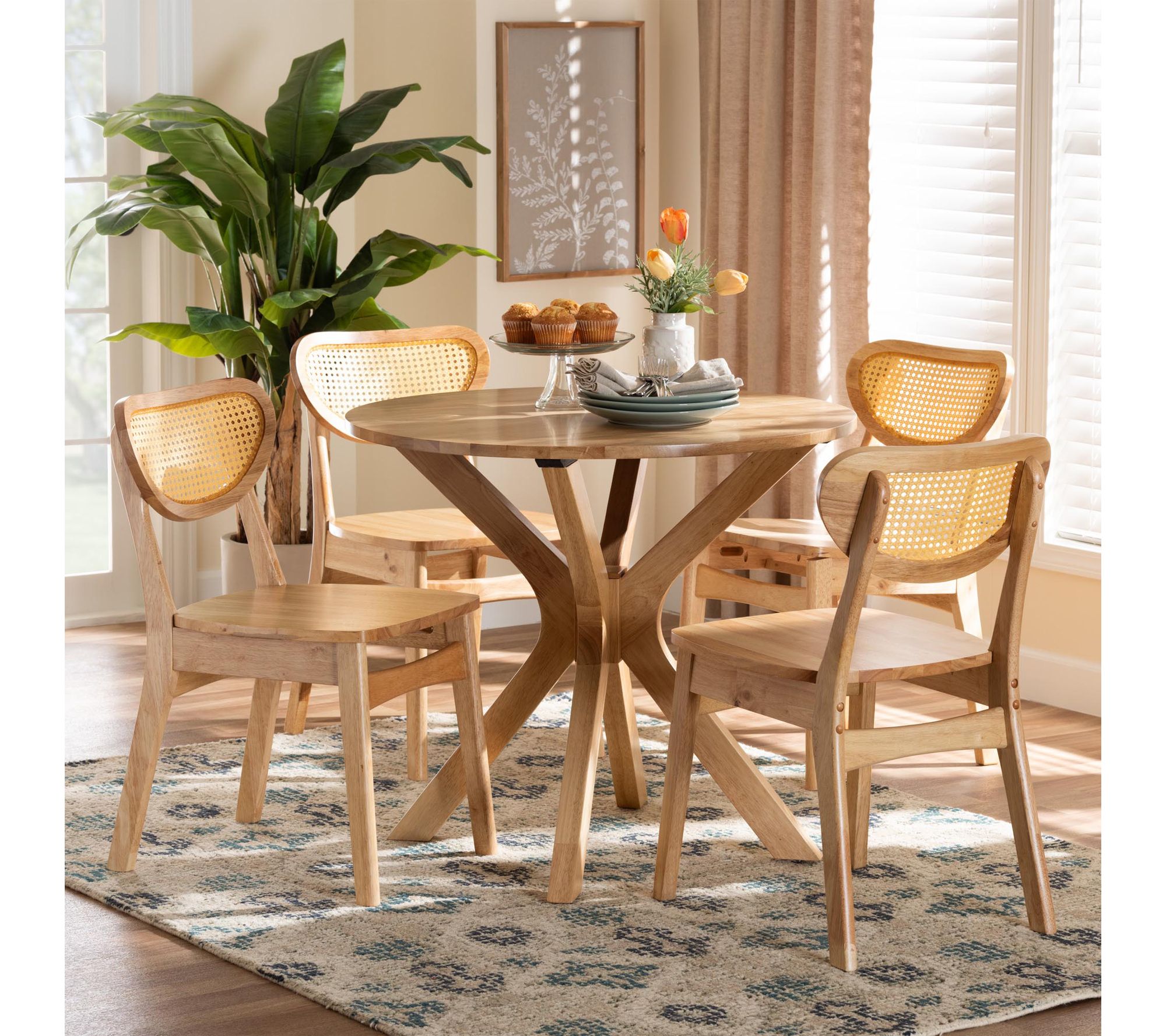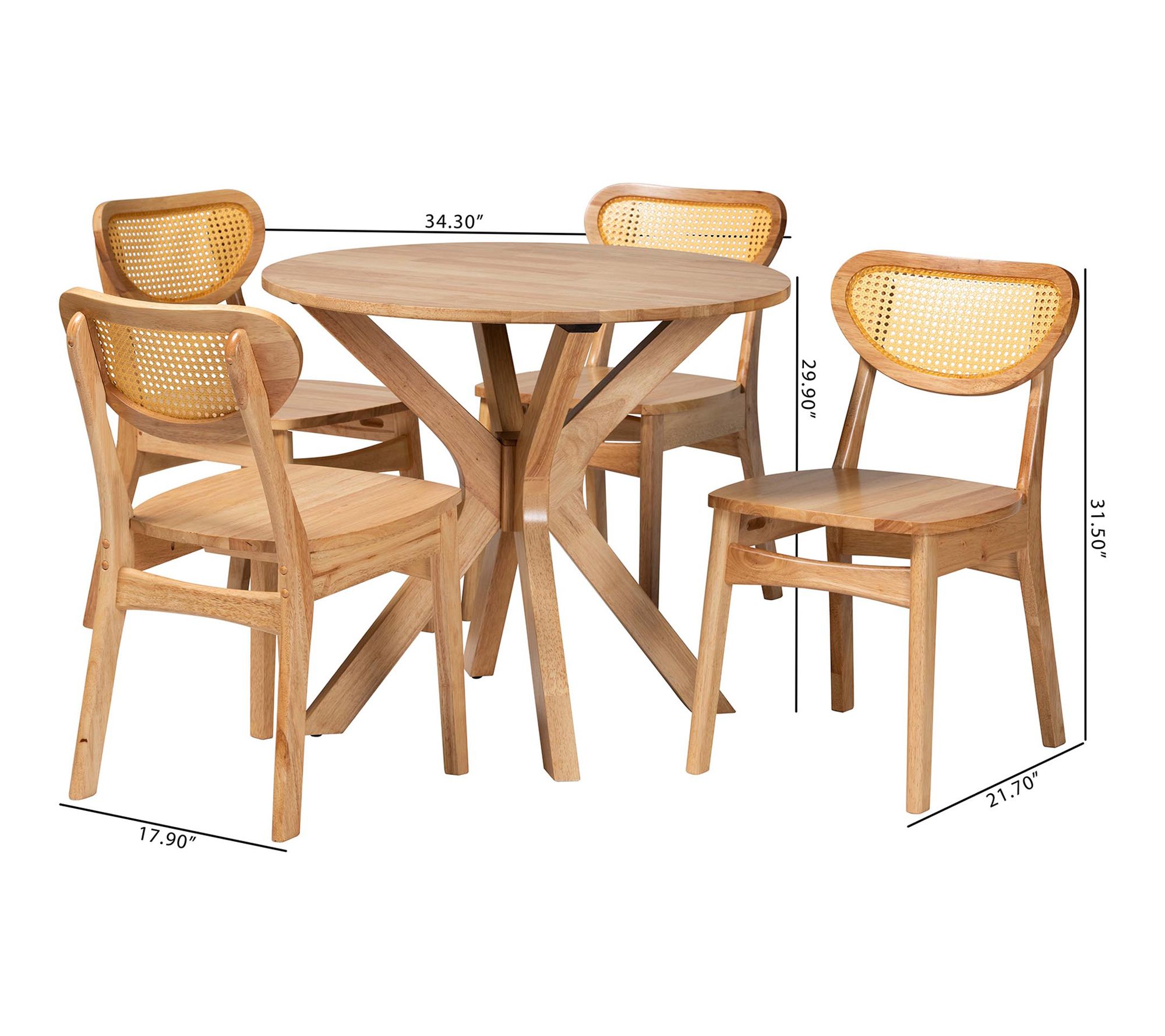 Baxton Studio Donato Wood and Rattan 5-Piece Dining Set
