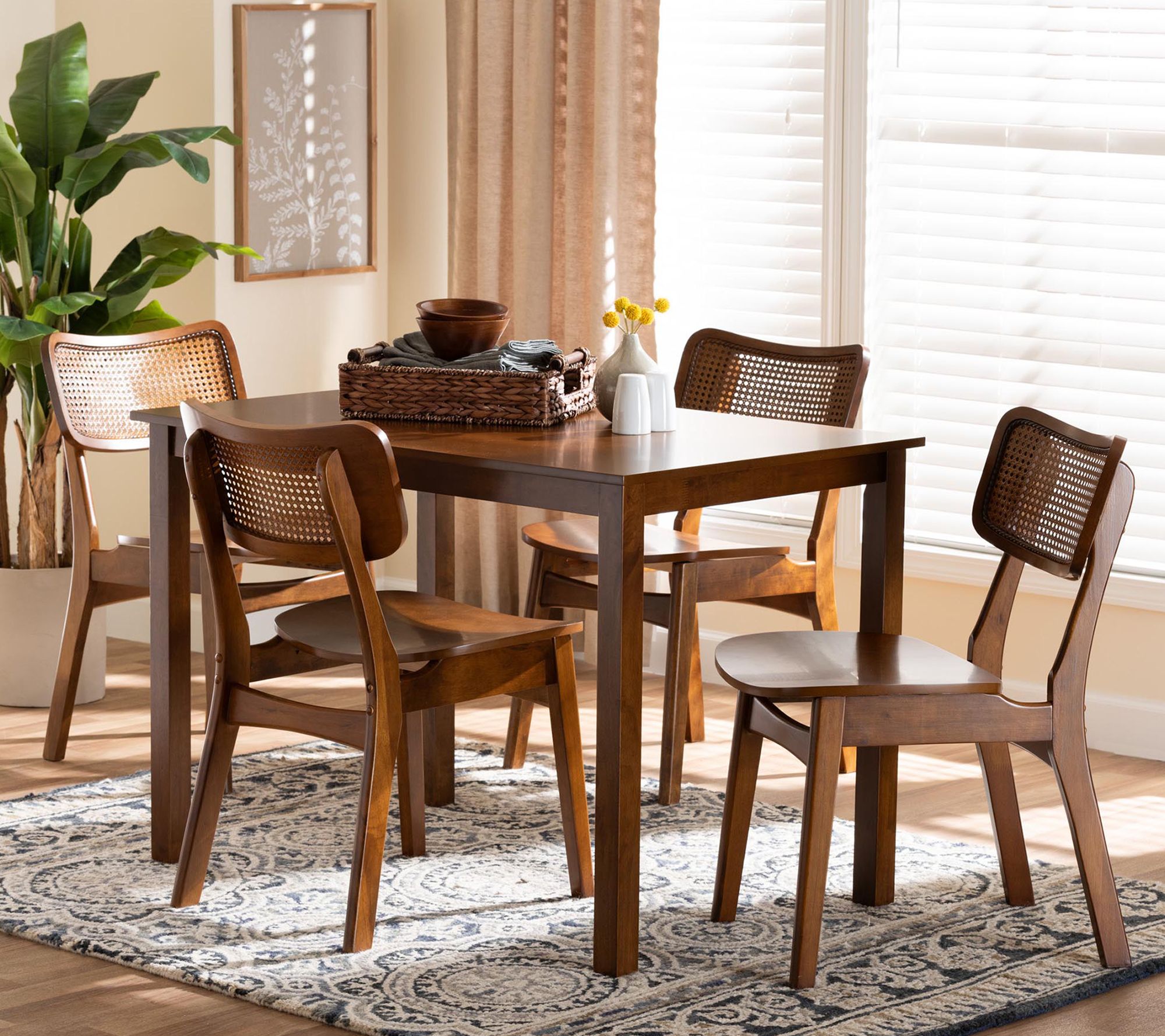 Baxton Studio Estera Brown Wood and Rattan 5-Piece Dining Set