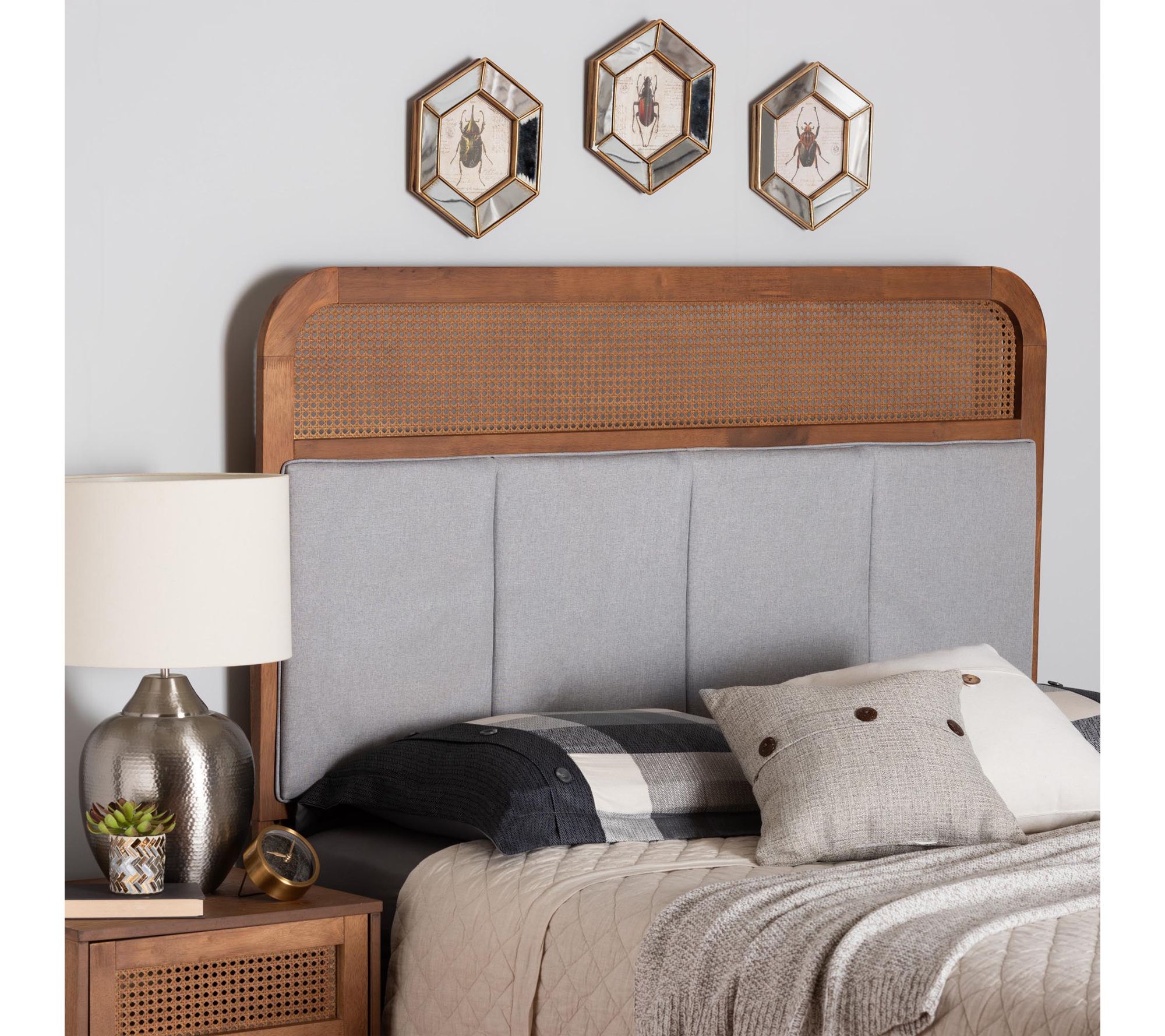 Baxton Studio Esti Grey Ash Walnut Rattan KingWood Headboard