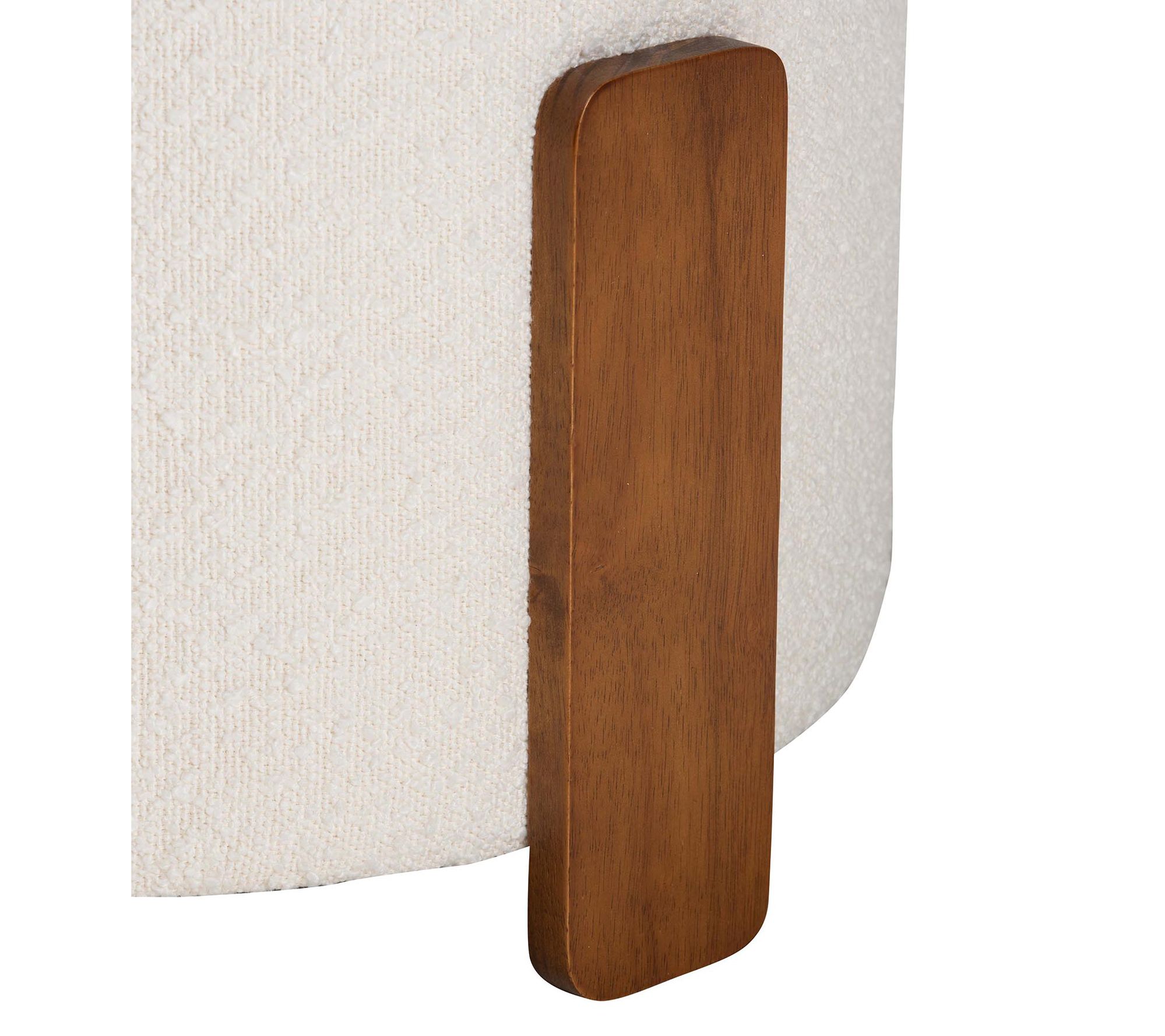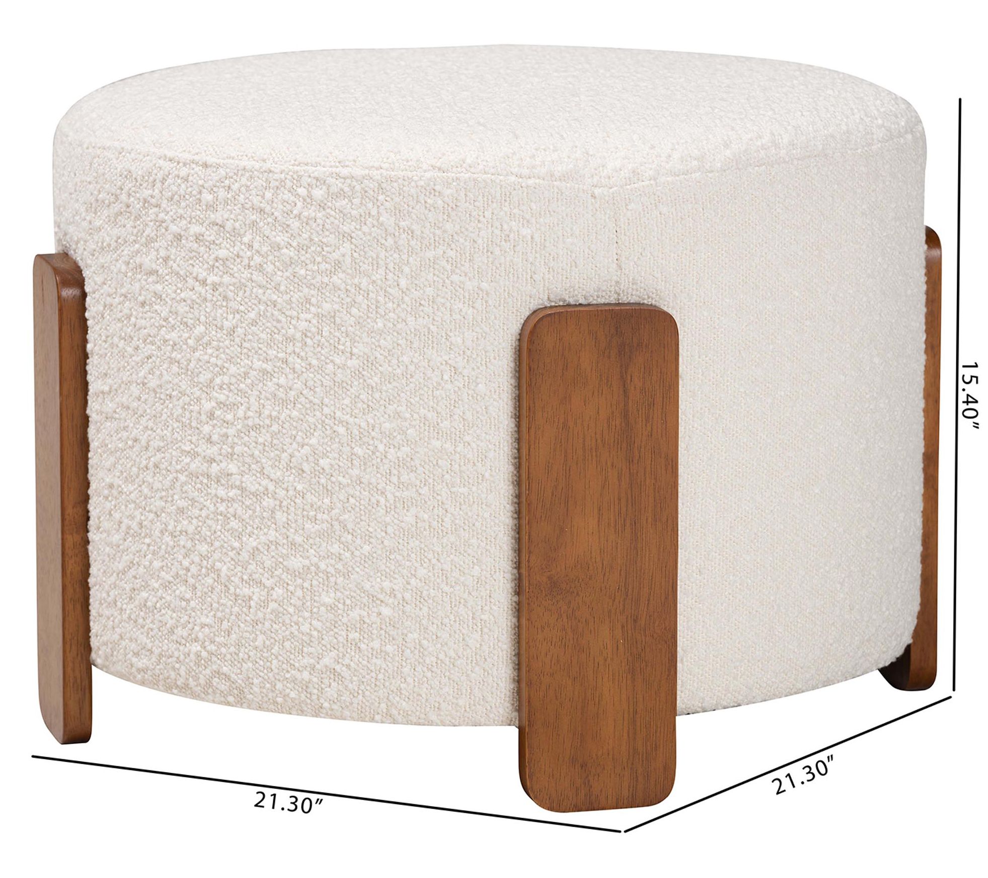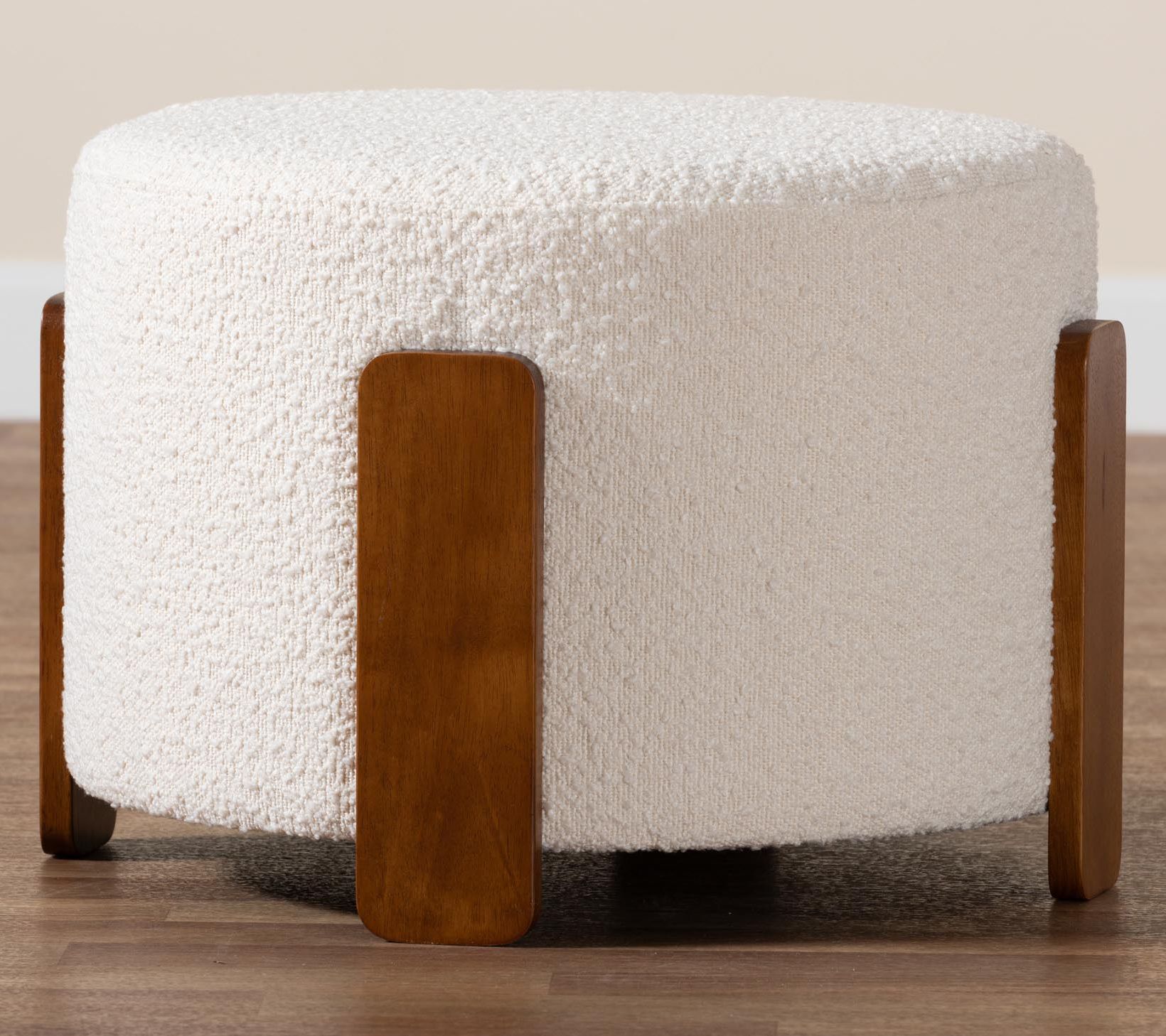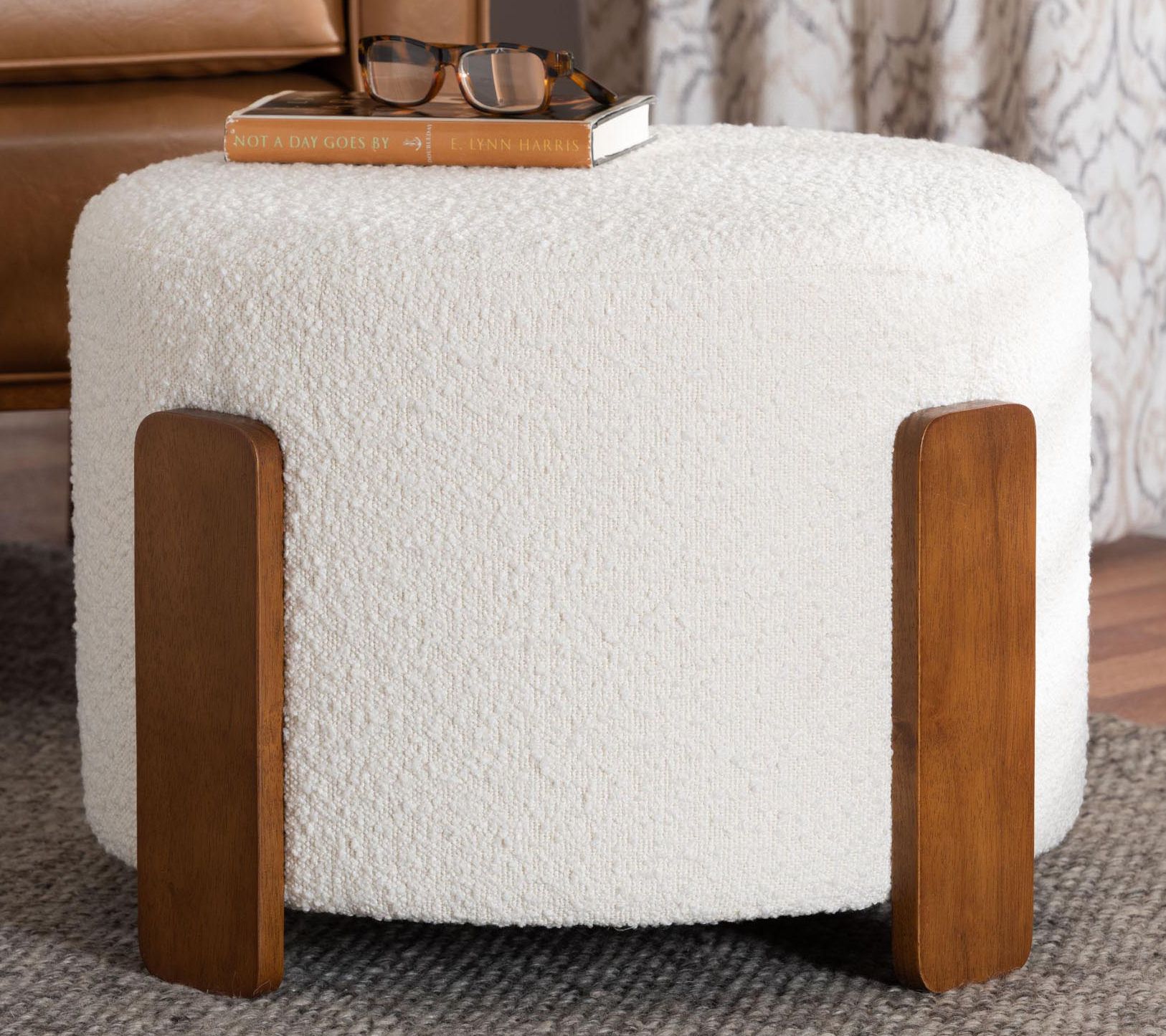 A plush seat or a chic accent, the Finlay ottoman brings cozy style to any room. Whether used as a footstool while you unwind or as extra seating for impromptu guests, its textured boucle fabric and sturdy design invite a touch of comfort and character to your space. From Baxton Studio.