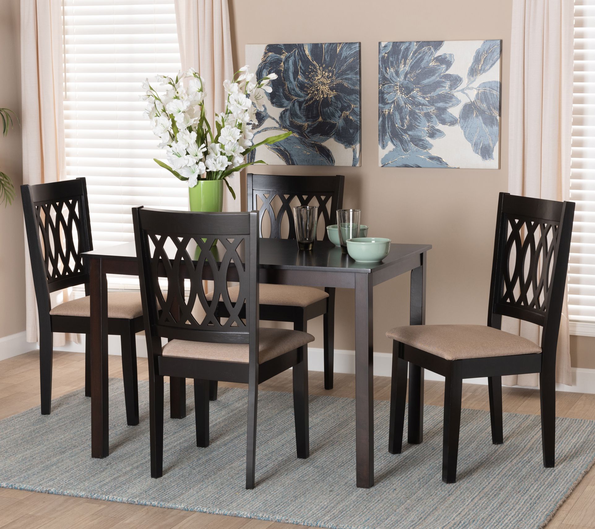 Baxton Studio Florencia Fabric and Wood 5-Piece Dining Set