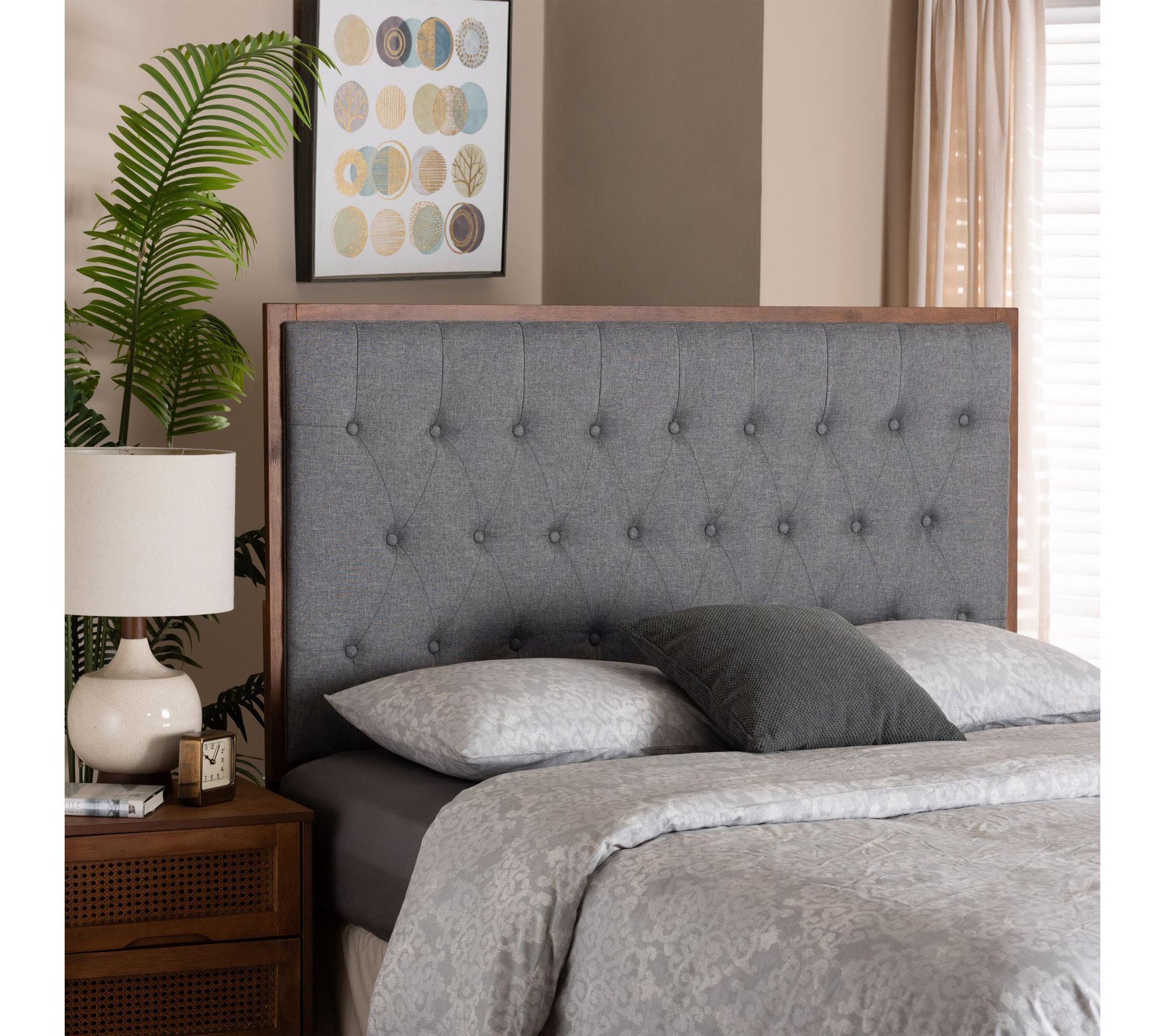 Baxton Studio Harumi Grey and Walnut Brown WoodKing Headboard