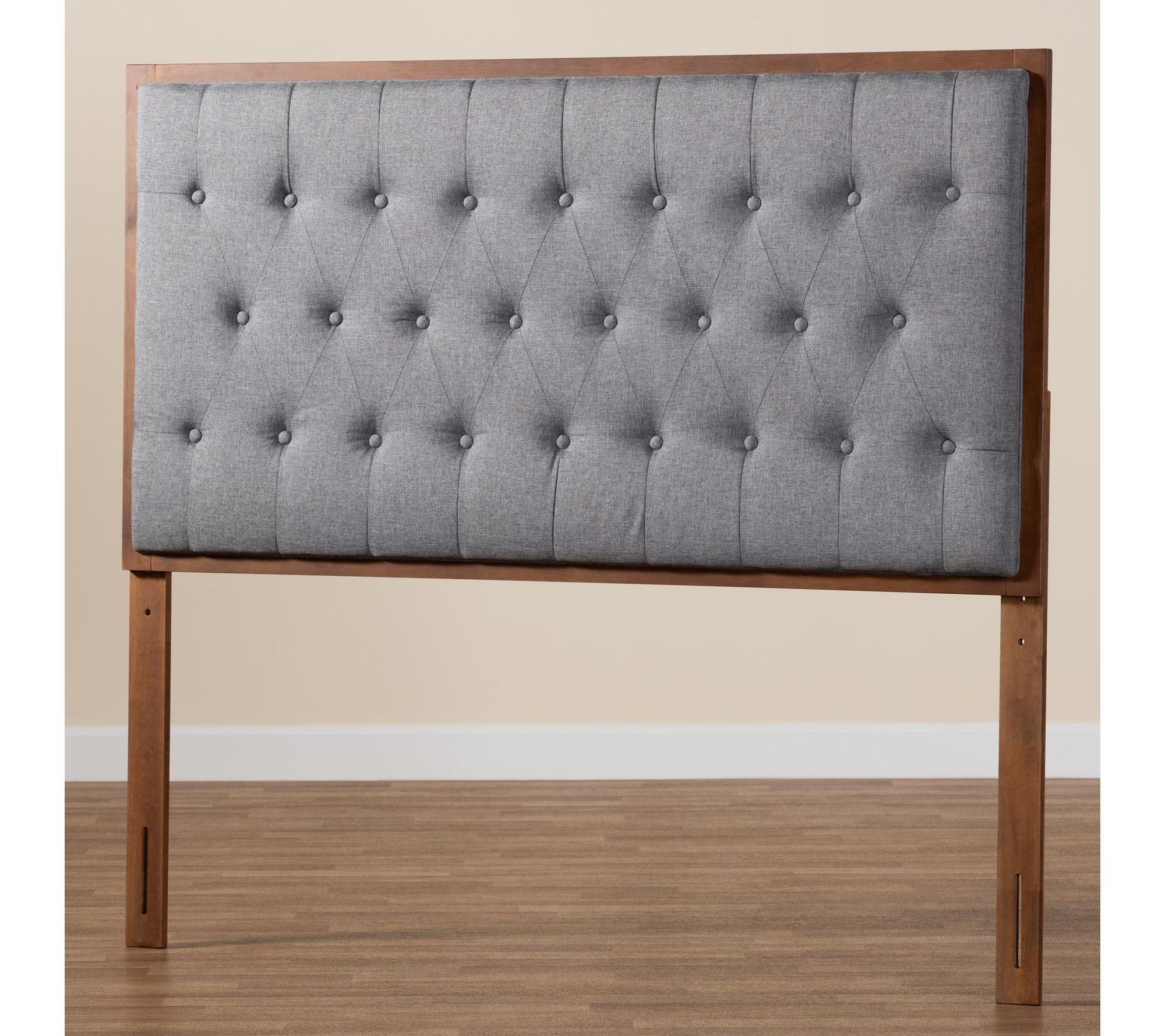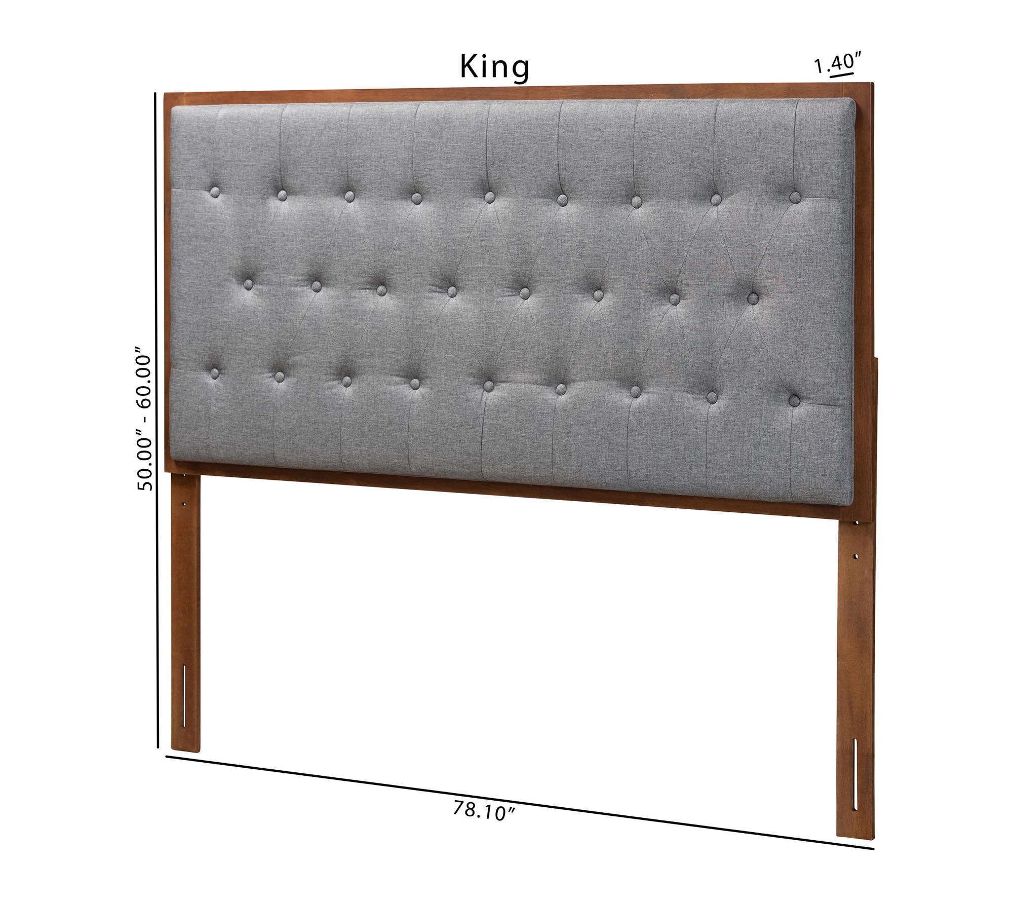 Carry a sense of refined ease into your bedroom retreat with this king headboard -- its broad, foam-padded silhouette and elegant button-tufted upholstery create a timeless centerpiece that complements any decor. With five adjustable height settings, it adapts beautifully to your space, providing a striking backdrop for relaxing evenings or leisurely mornings. From Baxton Studio.