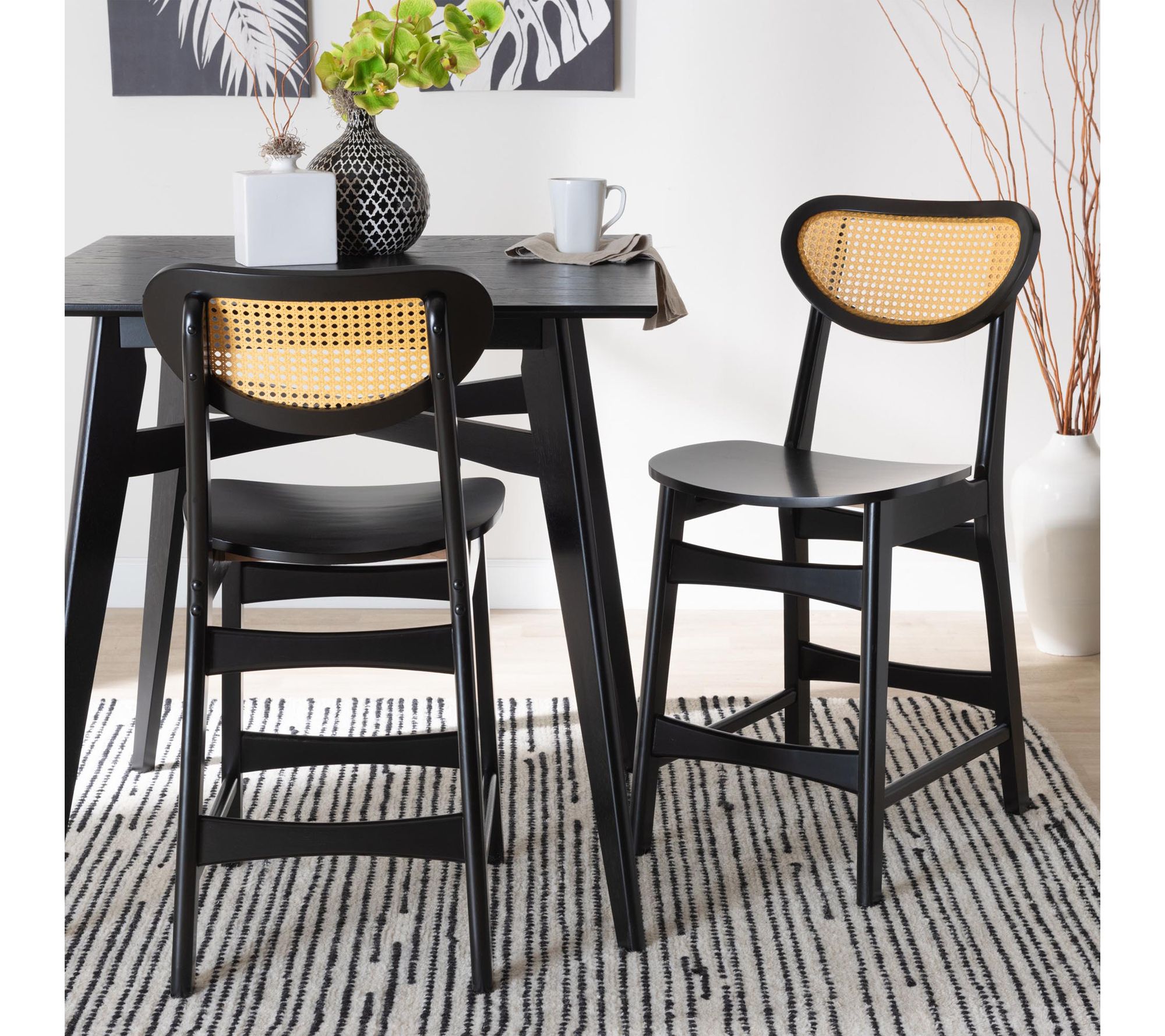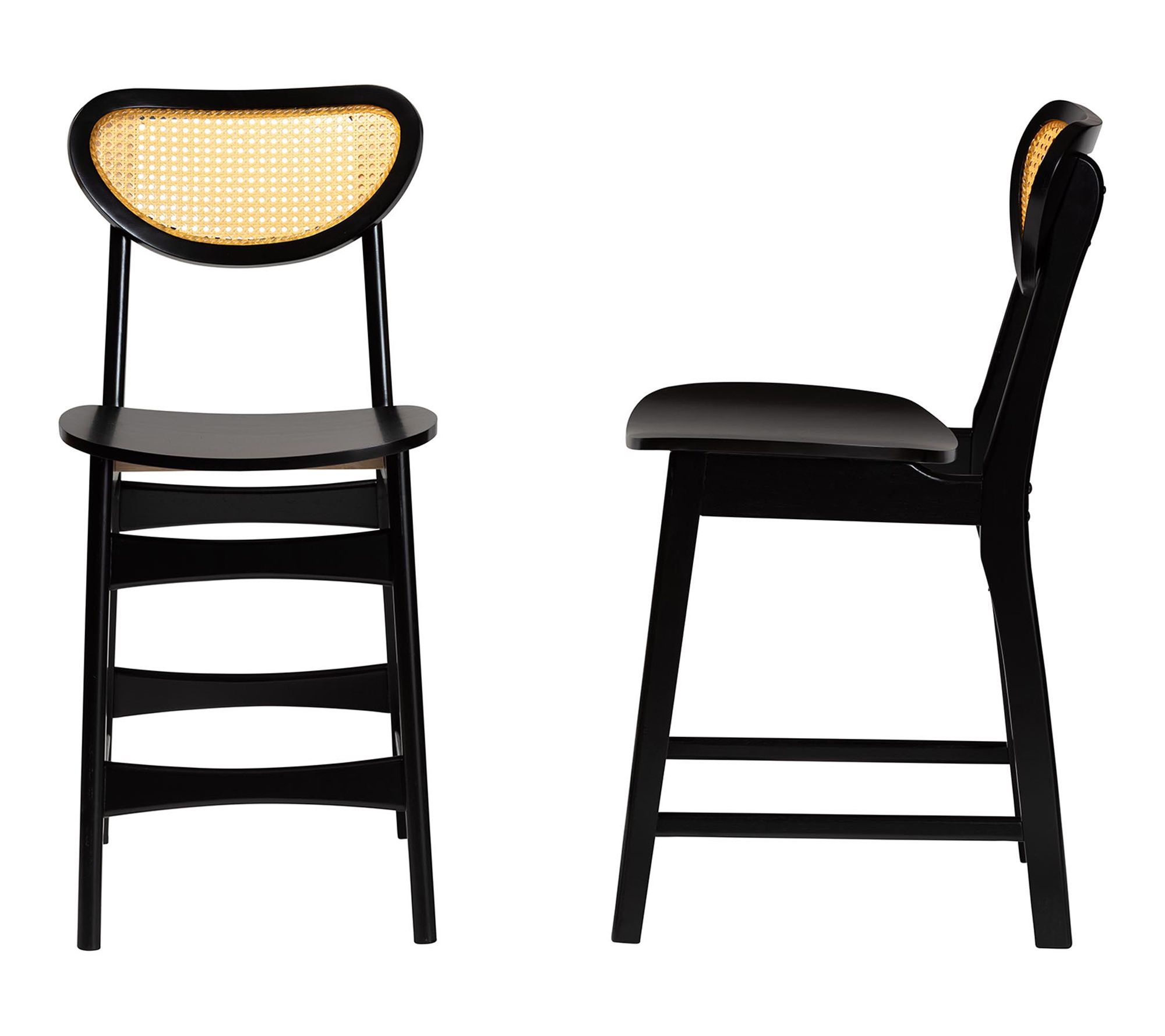 Infuse your kitchen island or breakfast bar with inviting, rustic charm using this set of two counter stools. The crescent-shaped seat and woven synthetic rattan backrest blend mid-century inspiration and comfort, while the built-in footrest awaits those leisurely mornings sipping coffee or catching up with friends. From Baxton Studio.