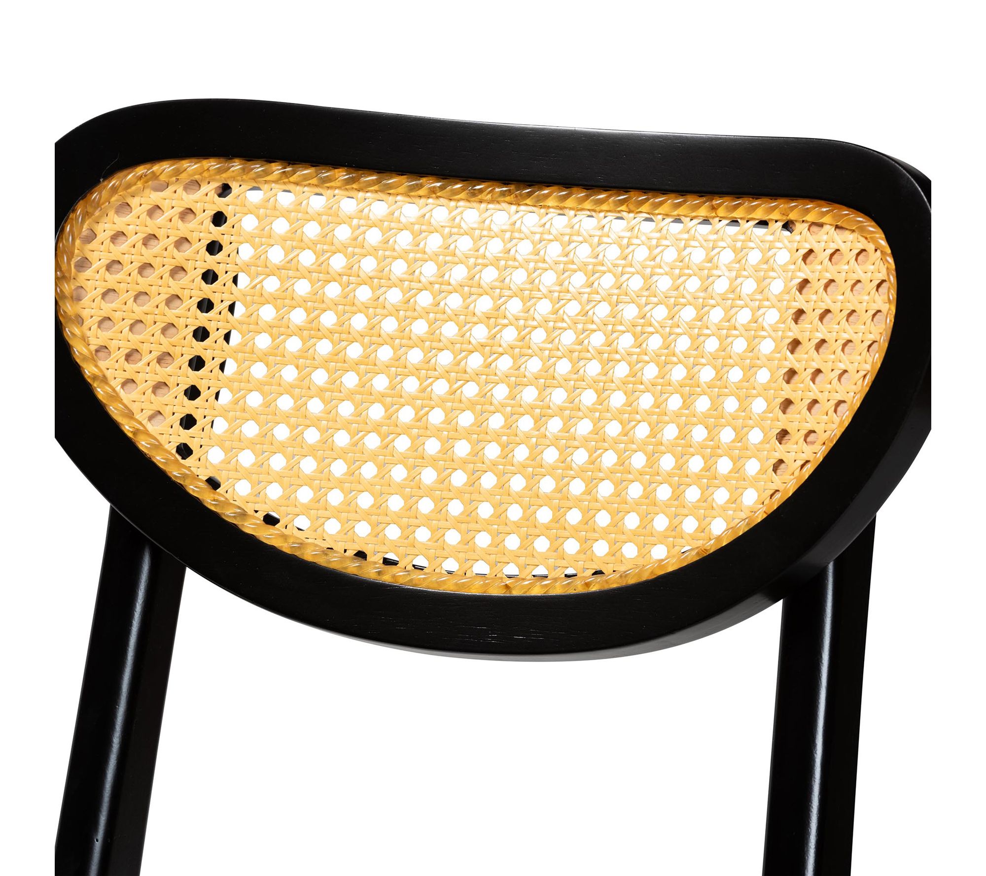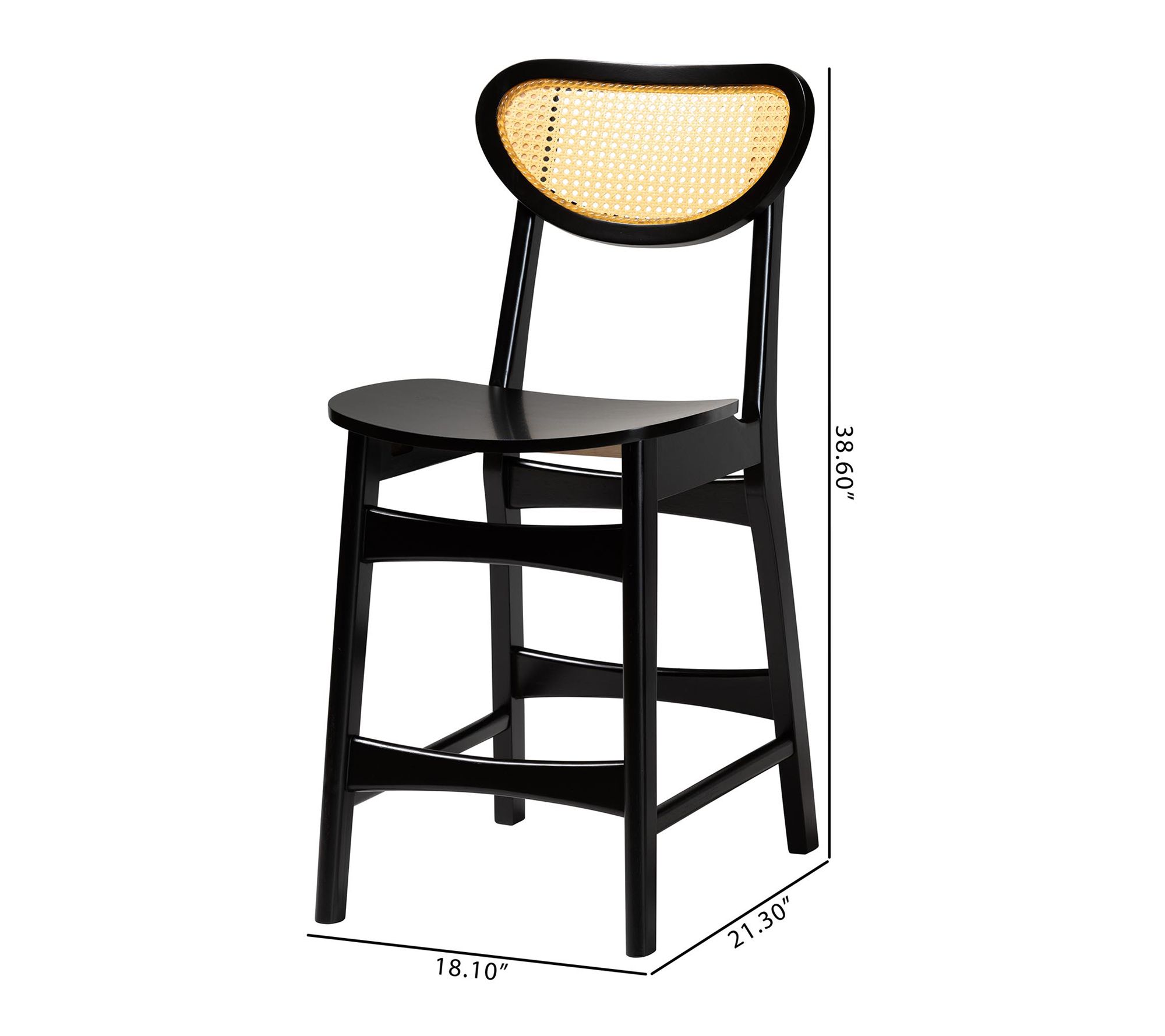 • Rubber wood, MDF seat, synthetic rattan backrest