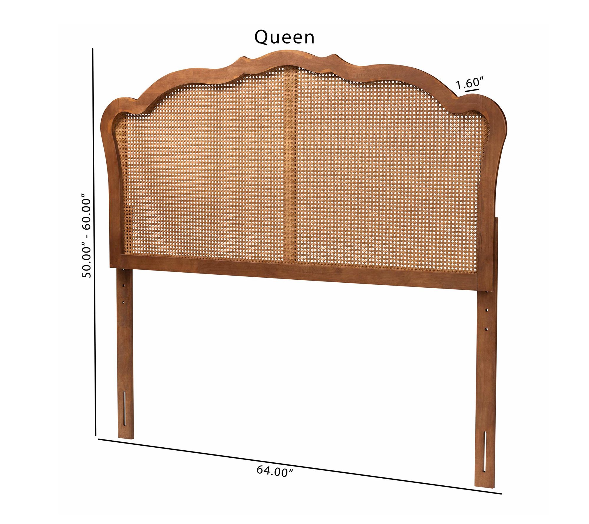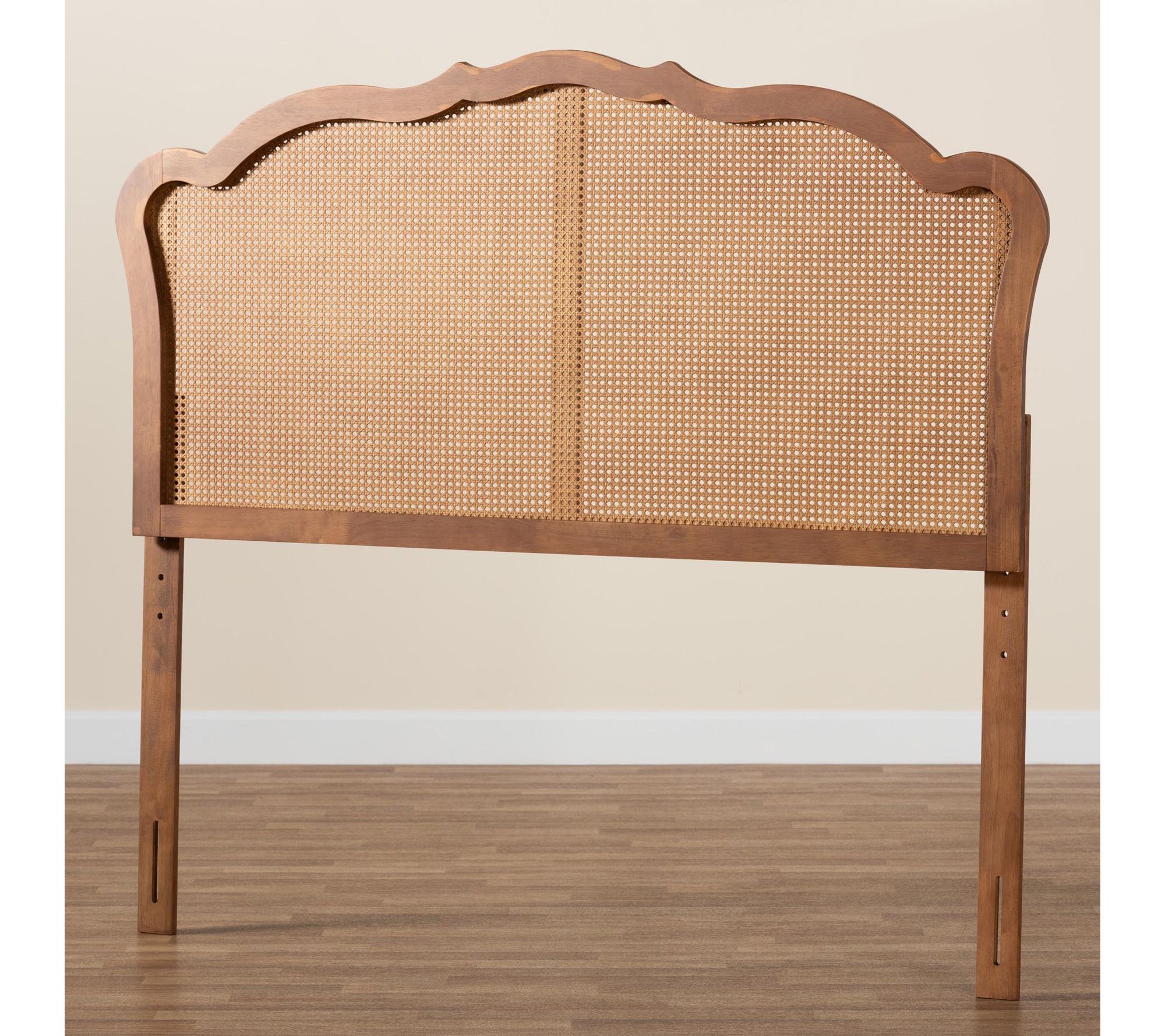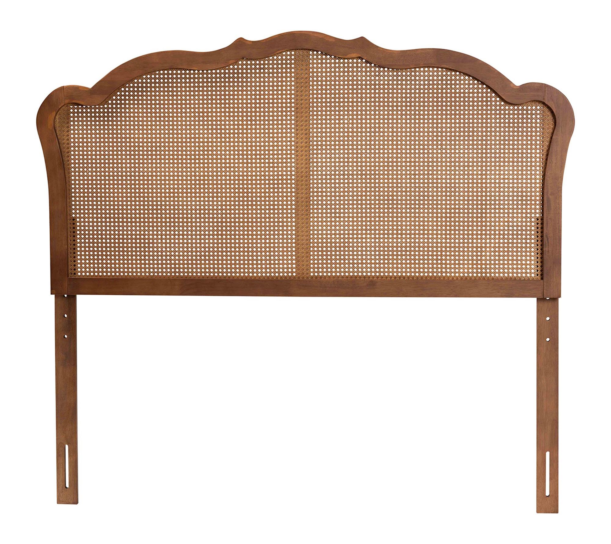 Baxton Studio Leandra Ash Walnut Rattan Queen Wood Headboard