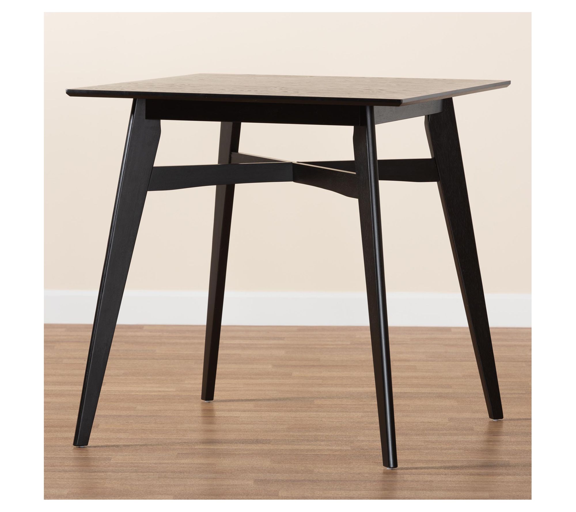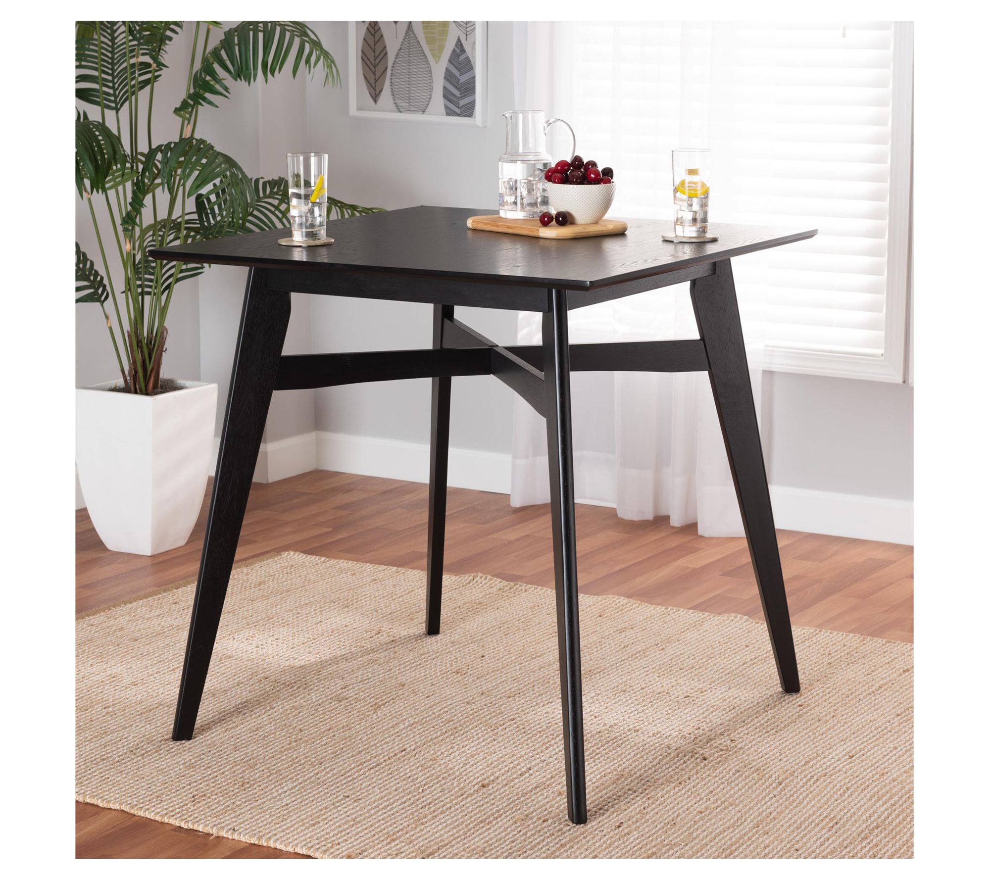 Crisp lines and refined craftsmanship distinguish the Leena pub table. Its square tabletop exudes sleek geometric charm and comfortably seats four. From Baxton Studio.