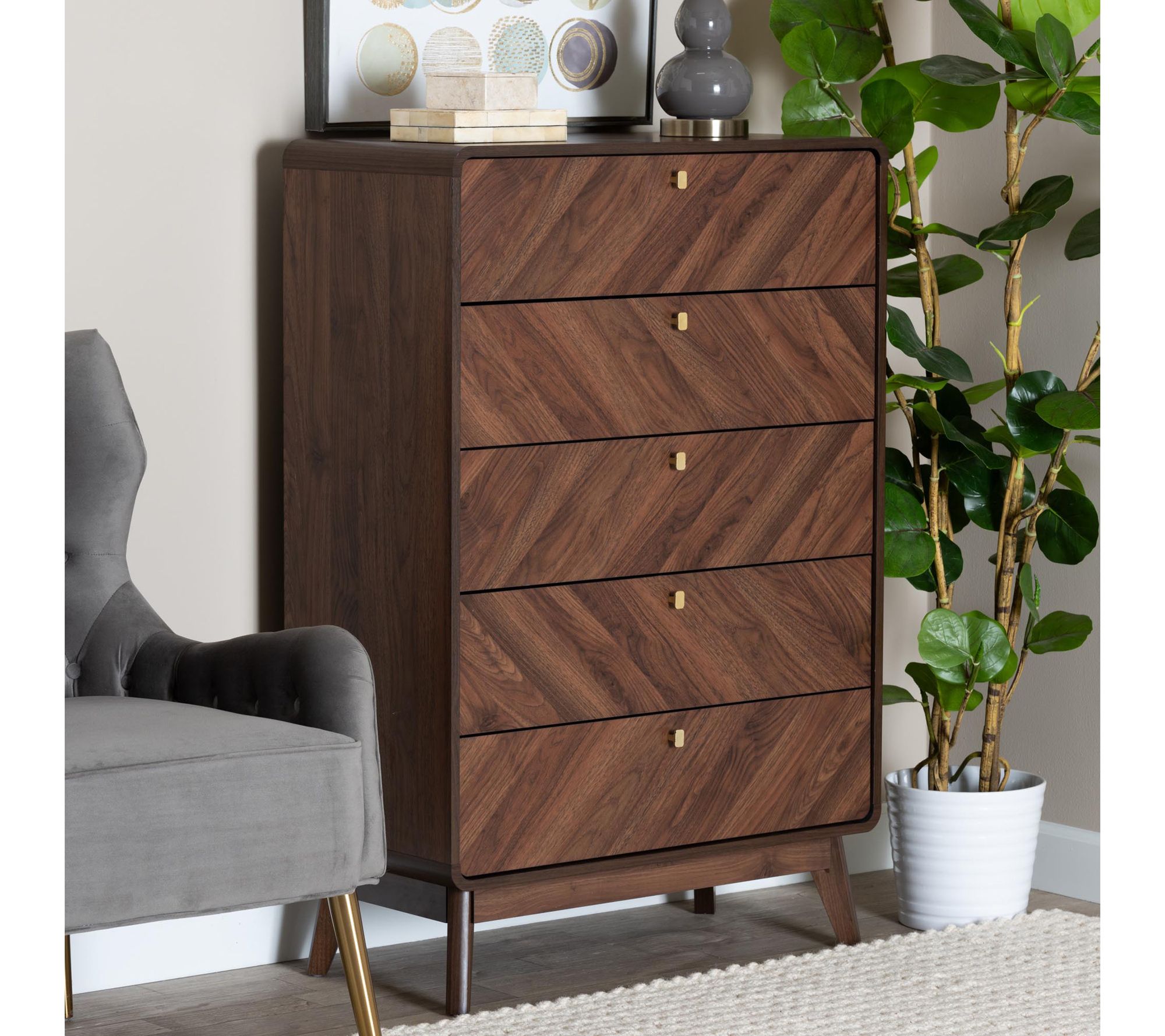 Baxton Studio Markell Walnut Brown Wood 5-Drawer Chest