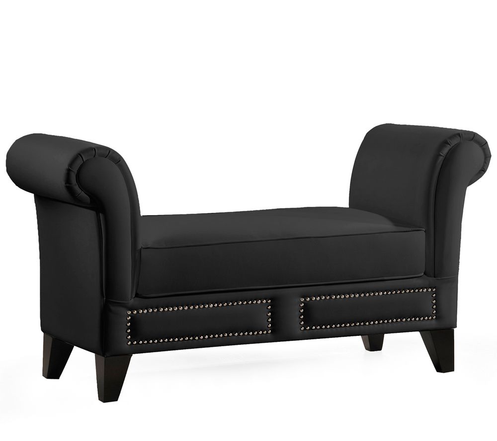 Dress up your bedroom with this lovely bench. Elegant scrolled arms and nailhead trim create its refined yet modern look. From Baxton Studio.