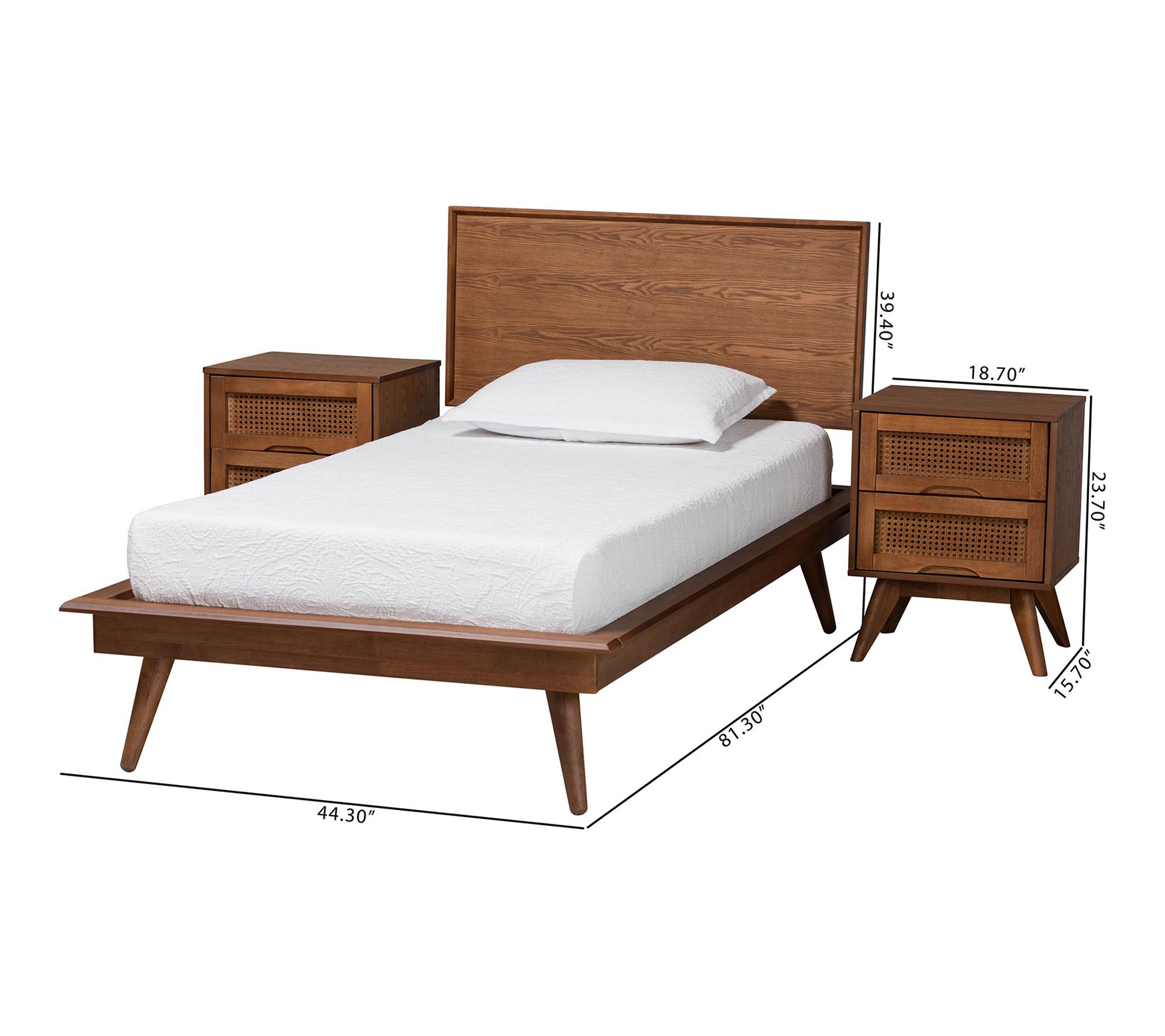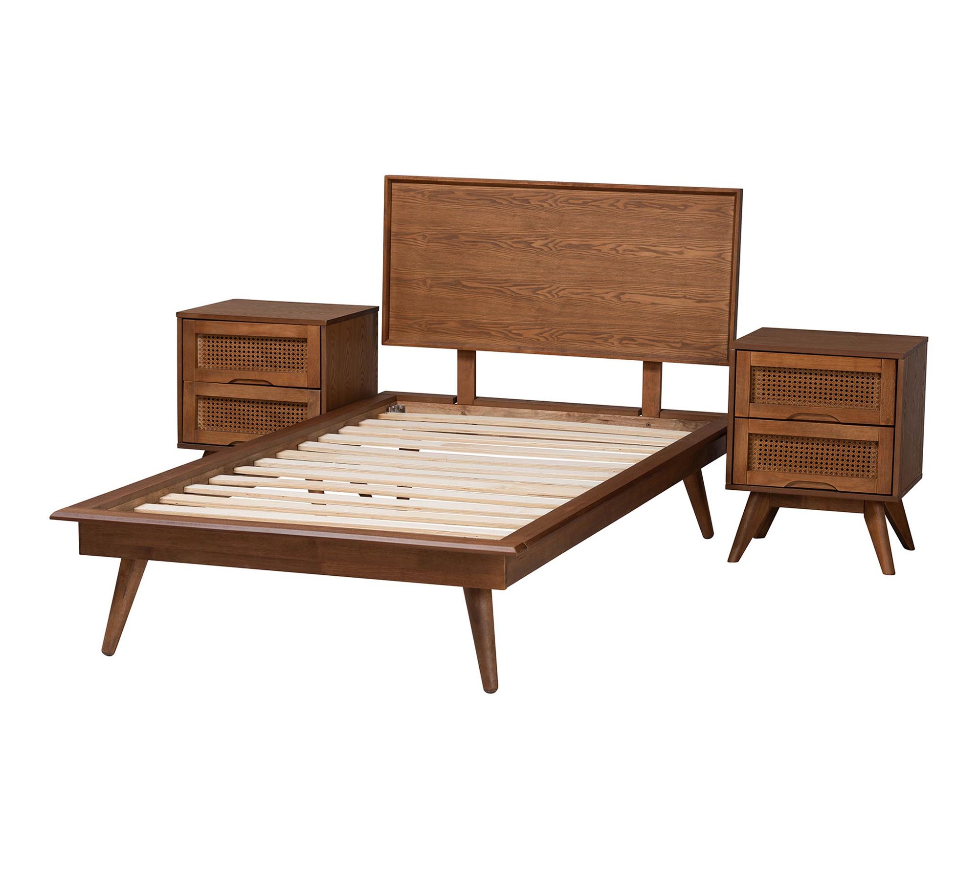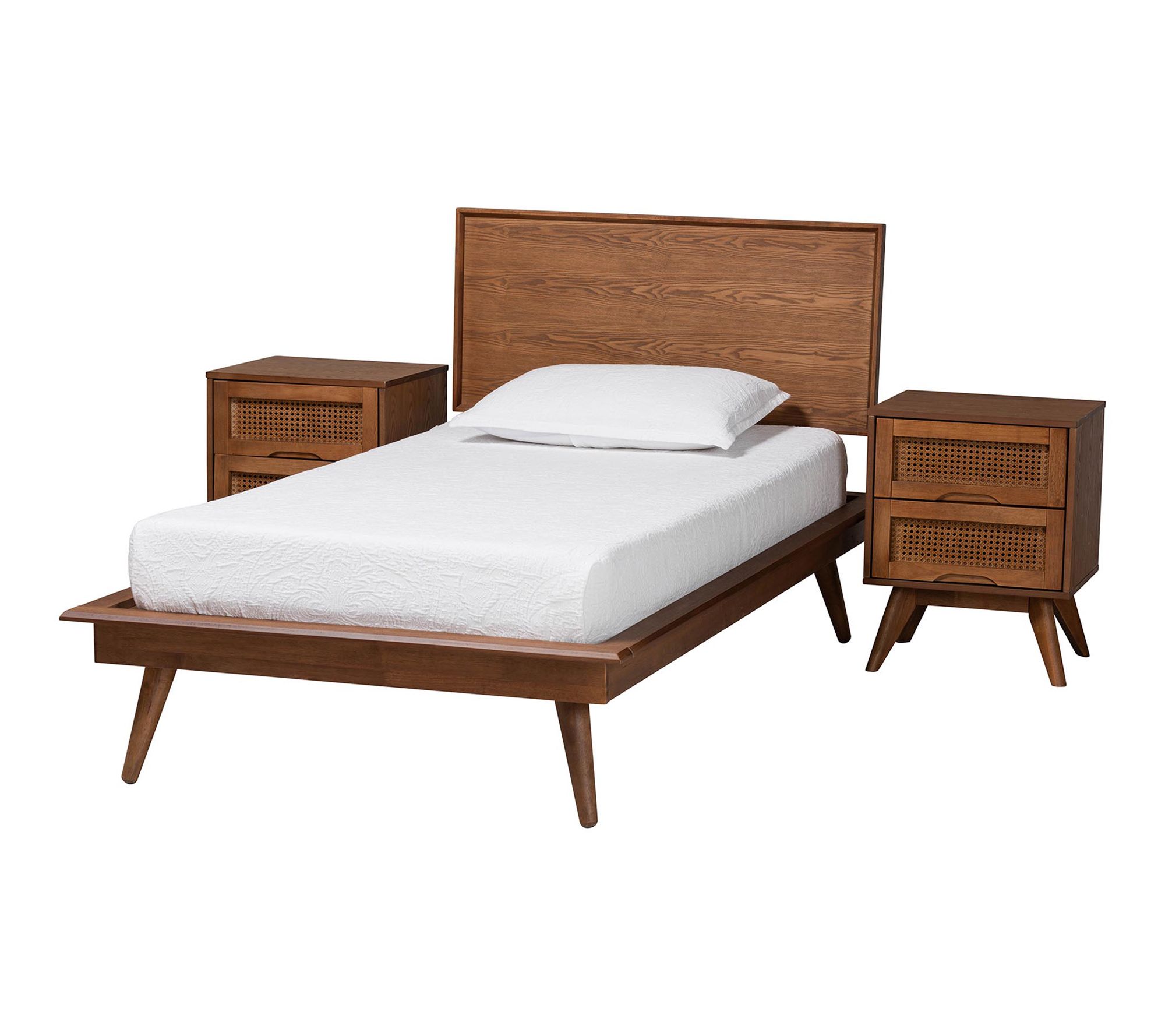 Baxton Studio Melora Wood and Rattan Twin 3-Piece Bedroom Set