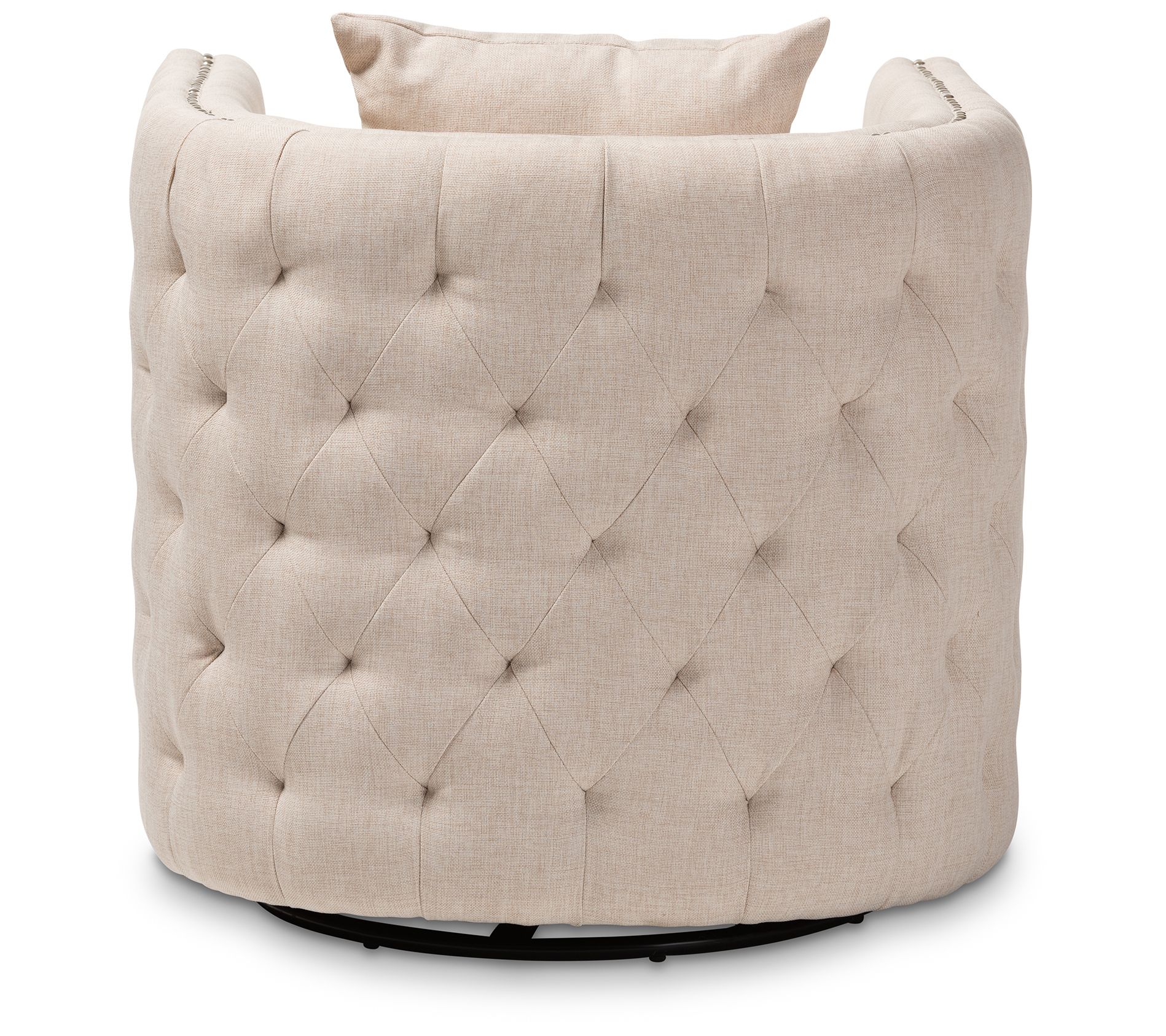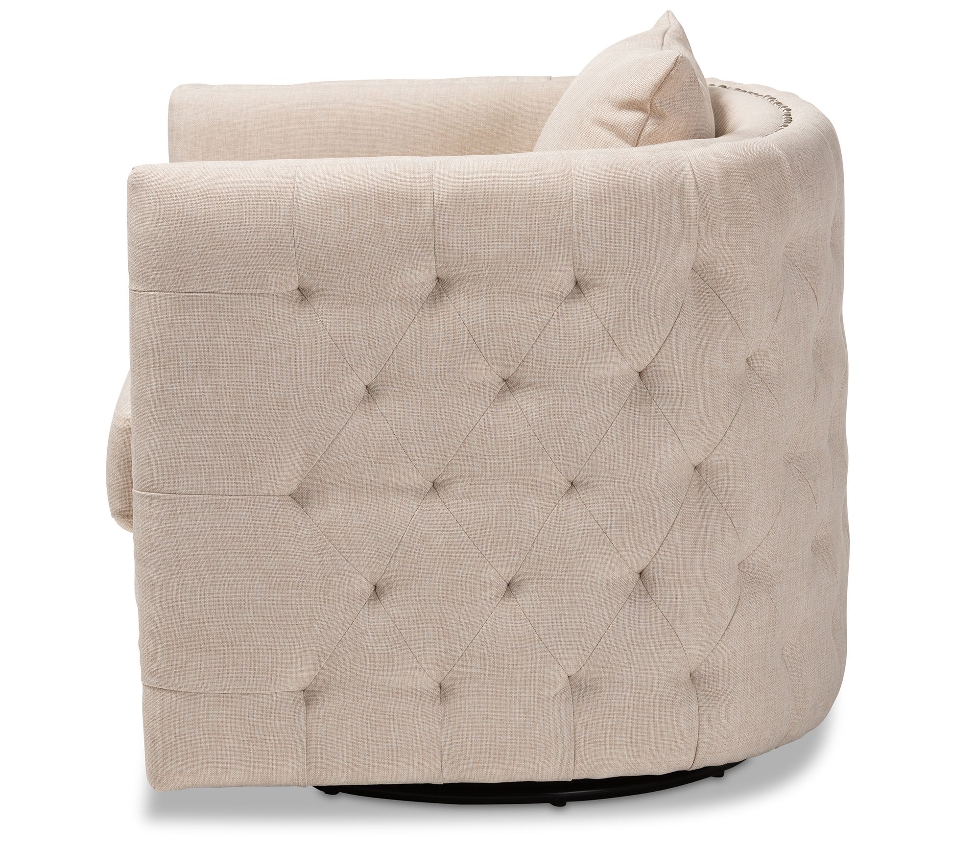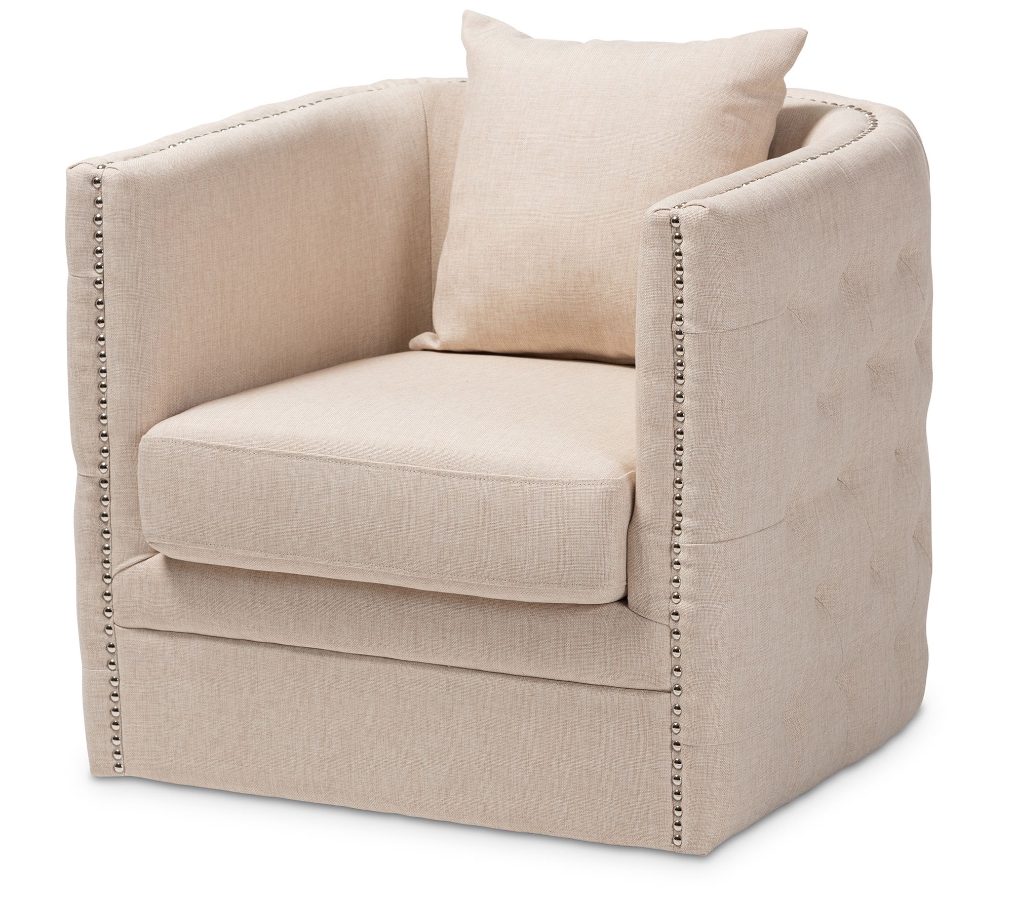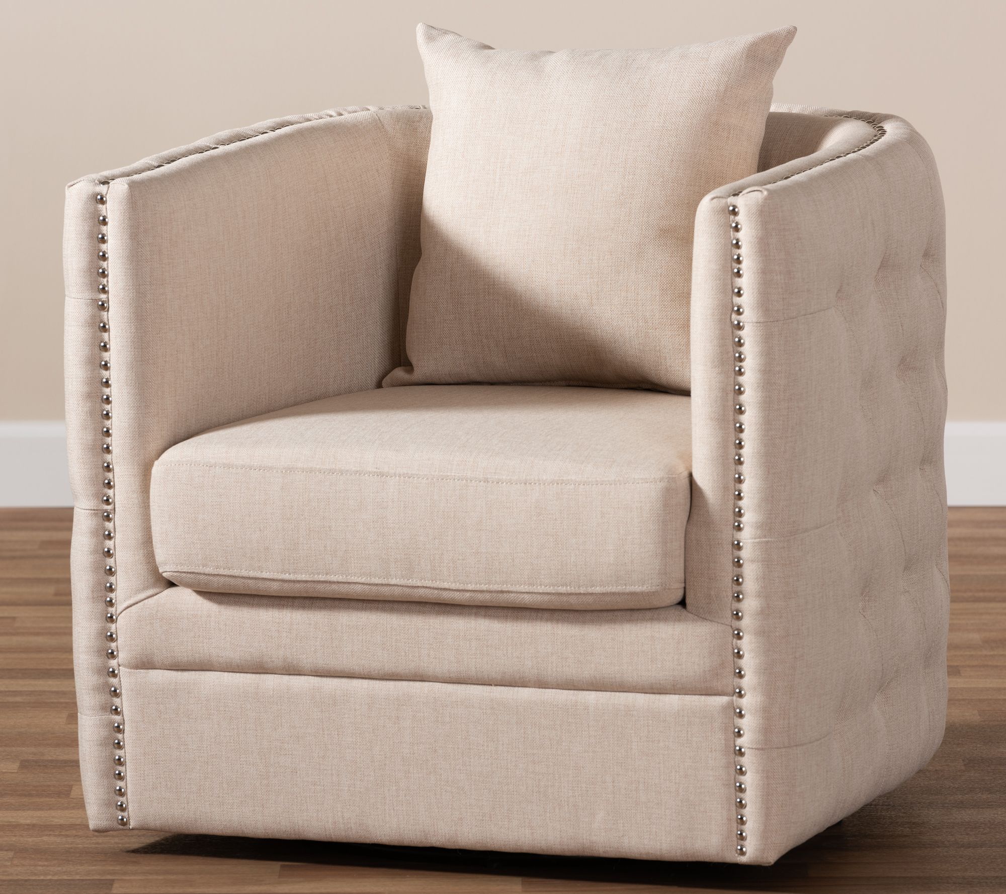 Classic and comfortable. This cozy swivel chair strikes the perfect balance between the two. From Baxton Studio.