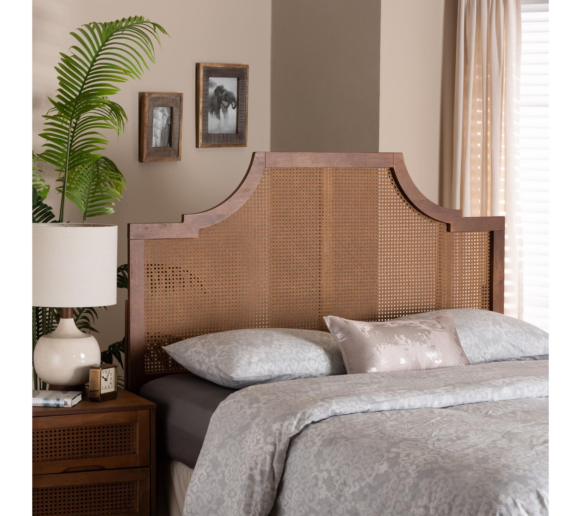 Baxton Studio Risha Ash Walnut Wood and RattanQueen Headboard