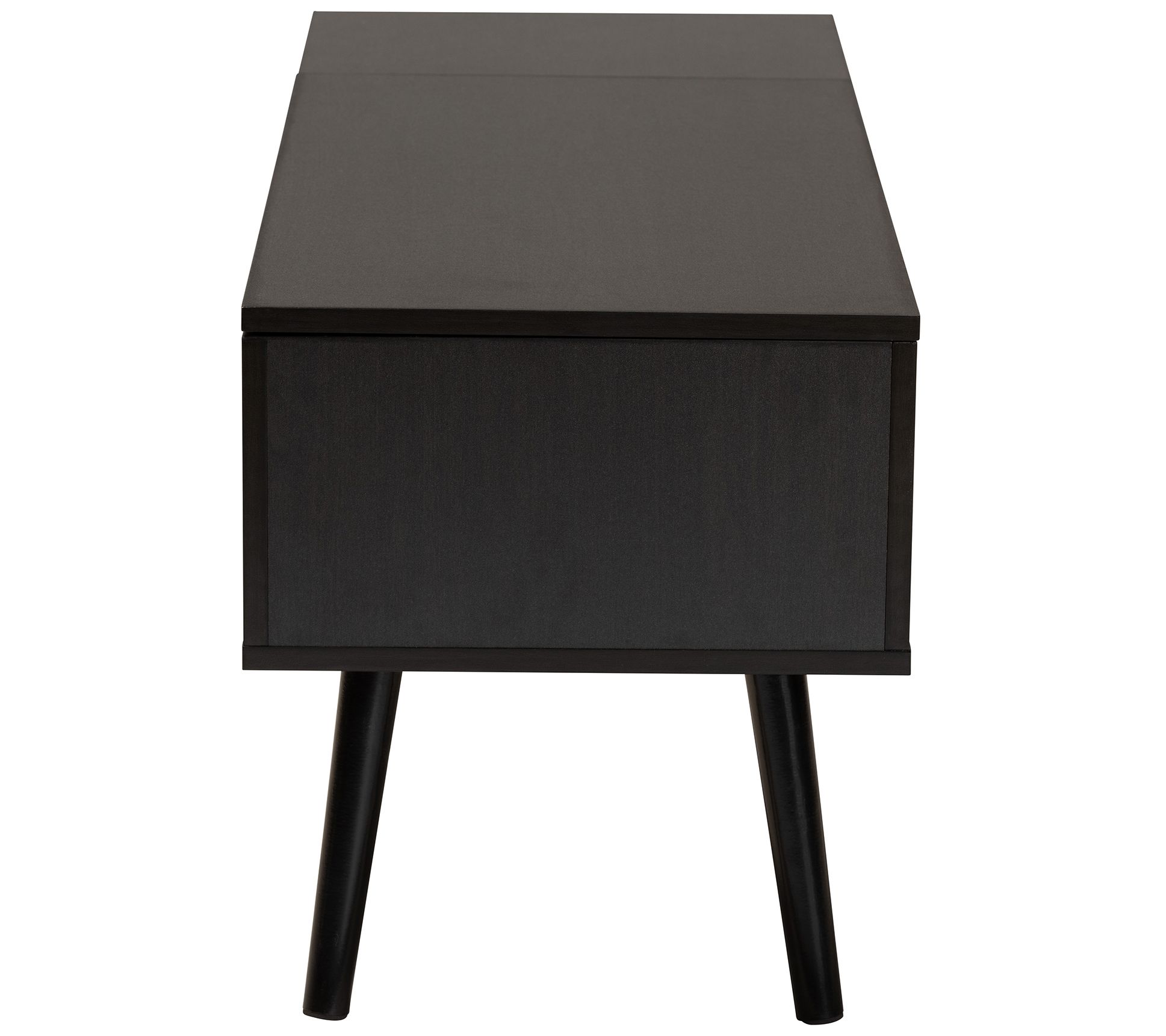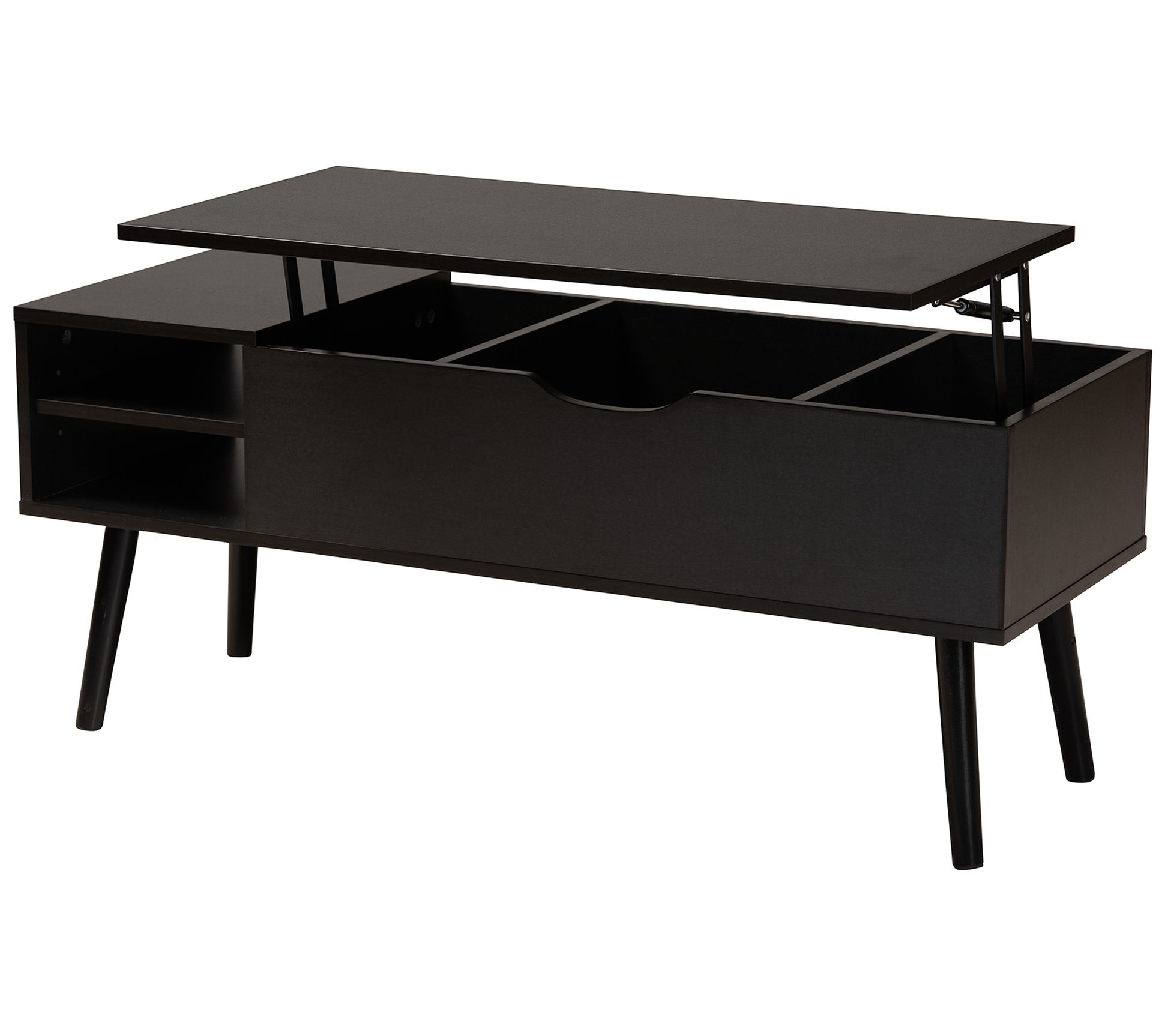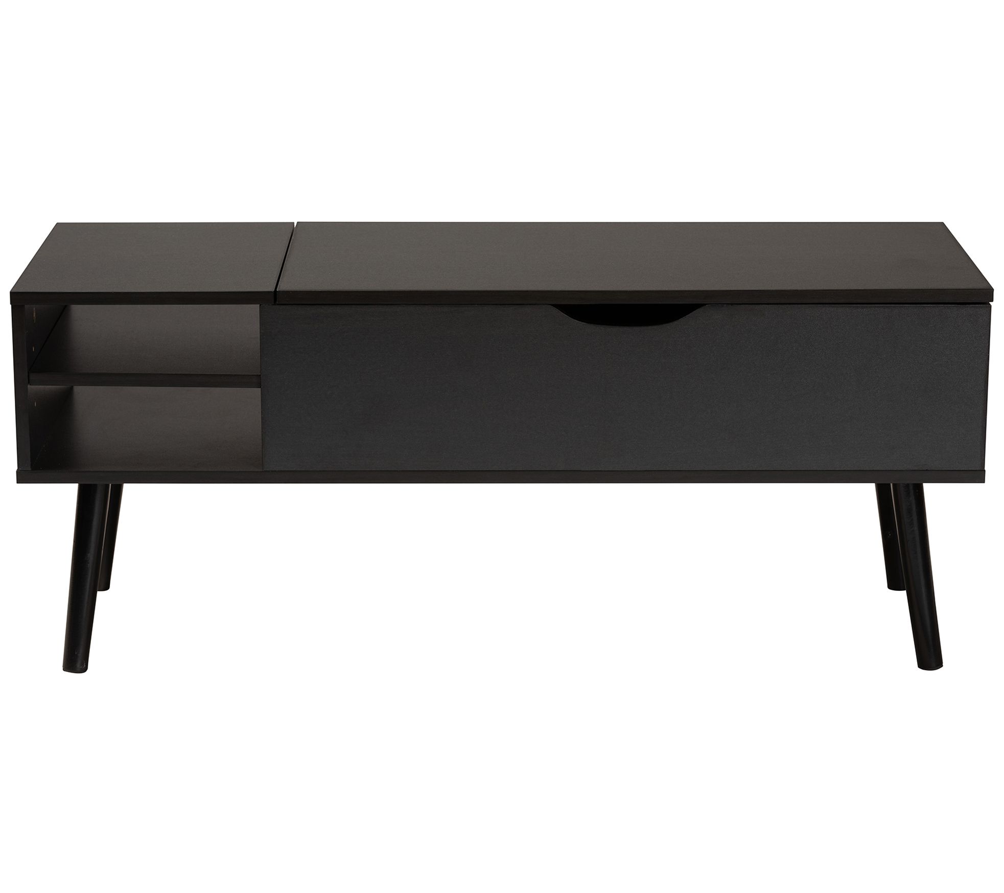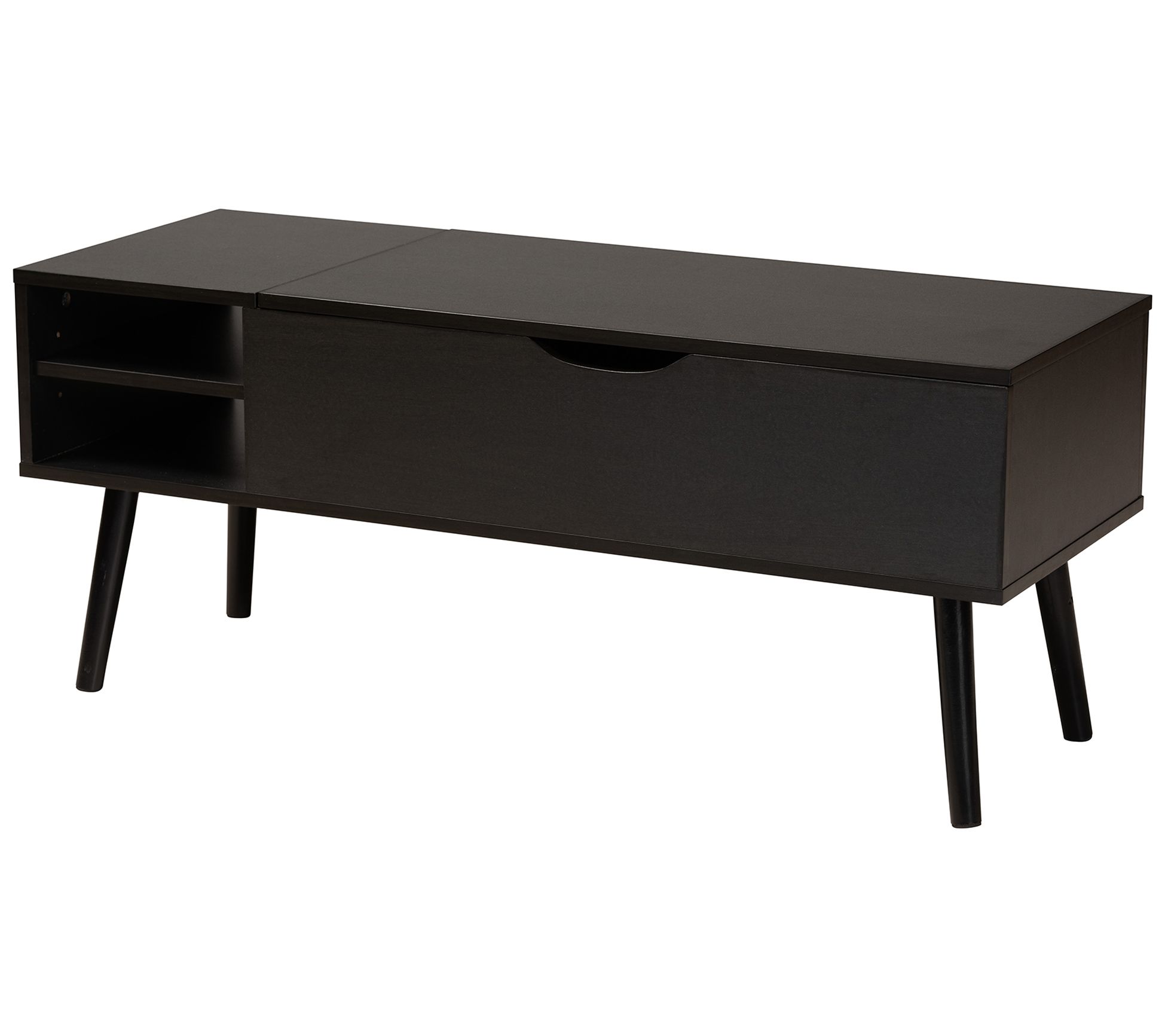 Organize your home with this tidy coffee table boasting a spacious interior for storage and two outer shelves for display. From Baxton Studio.