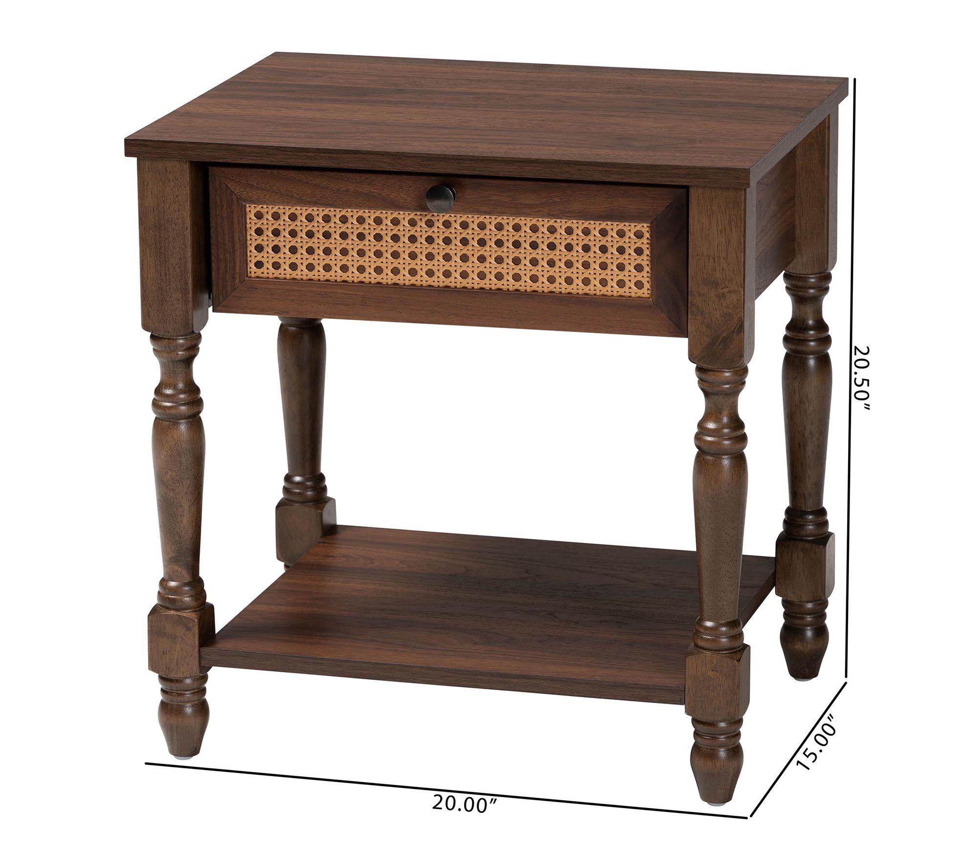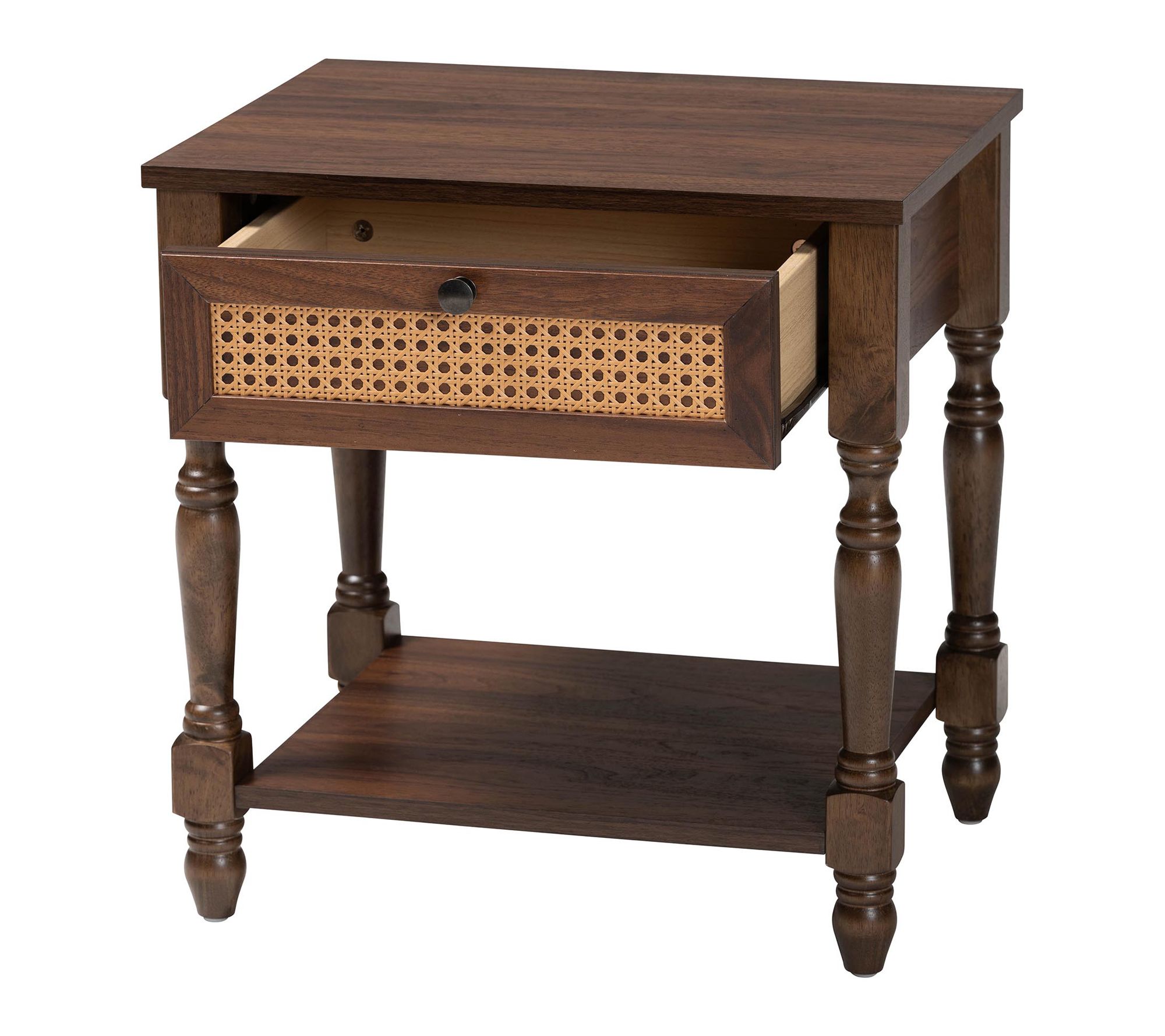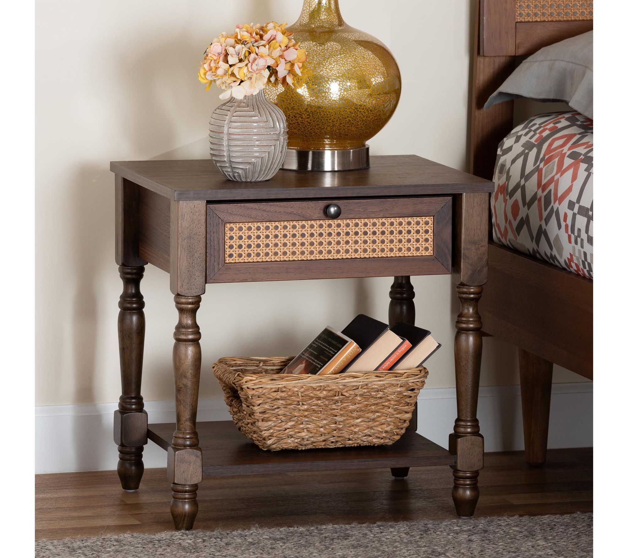 Baxton Studio Roden Dark Brown Nightstand withRattan