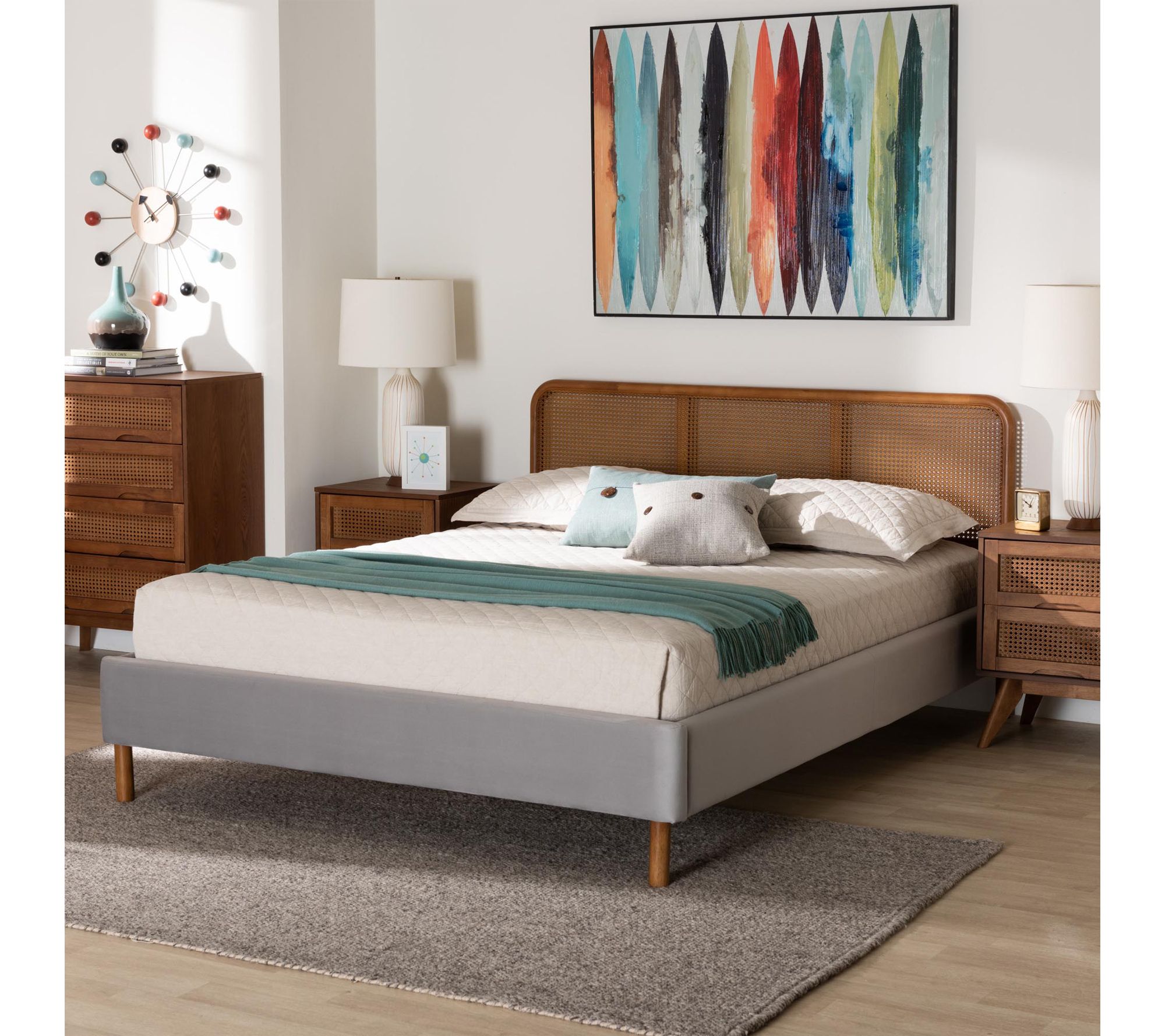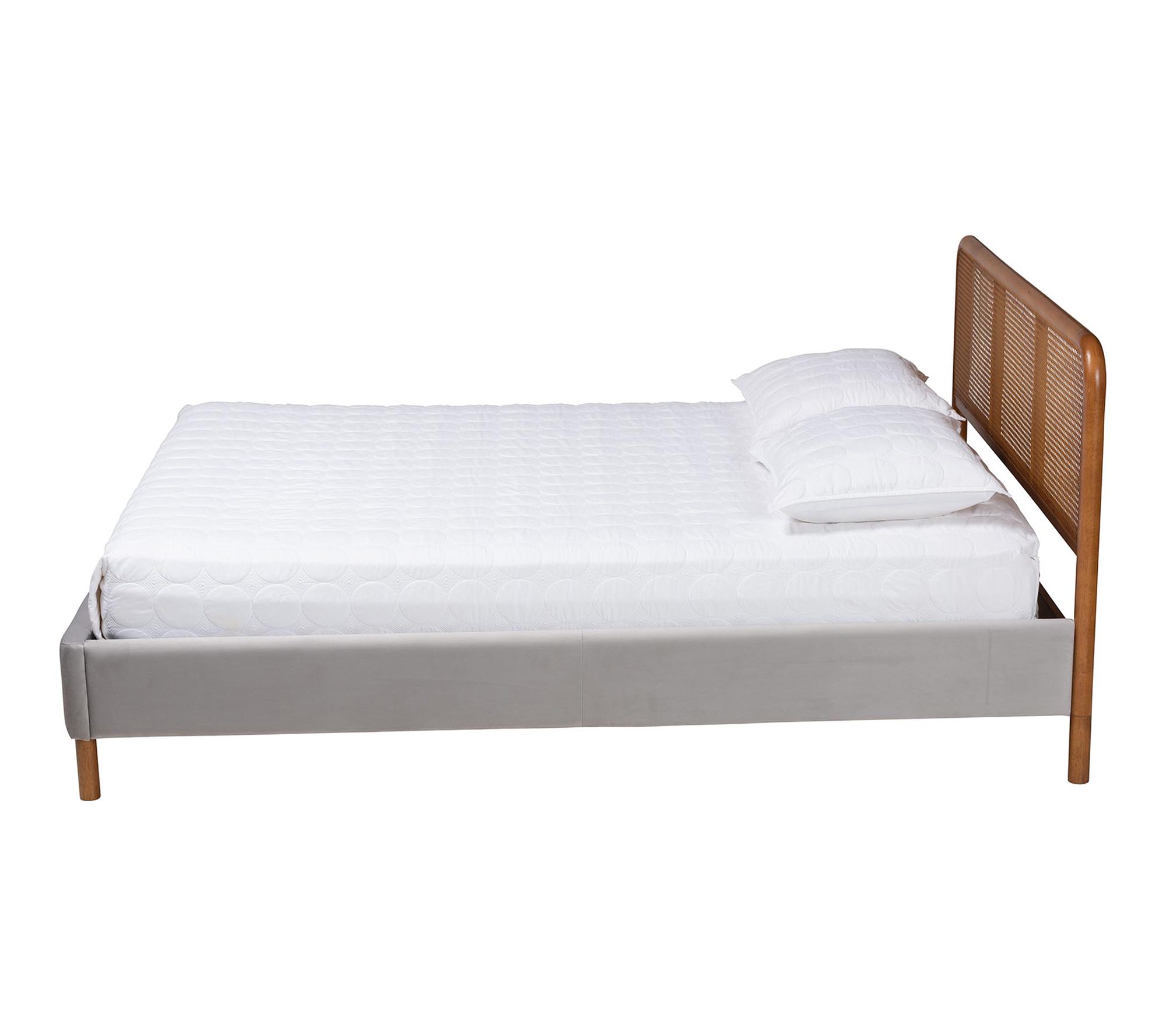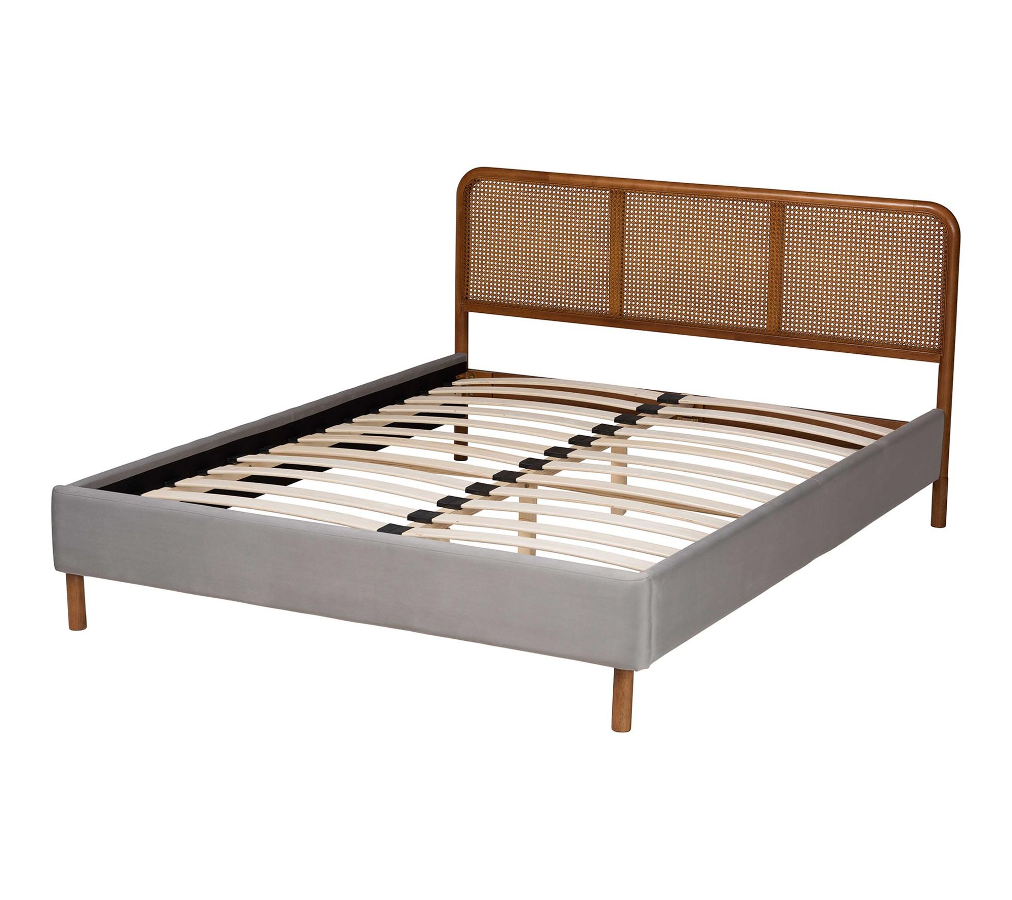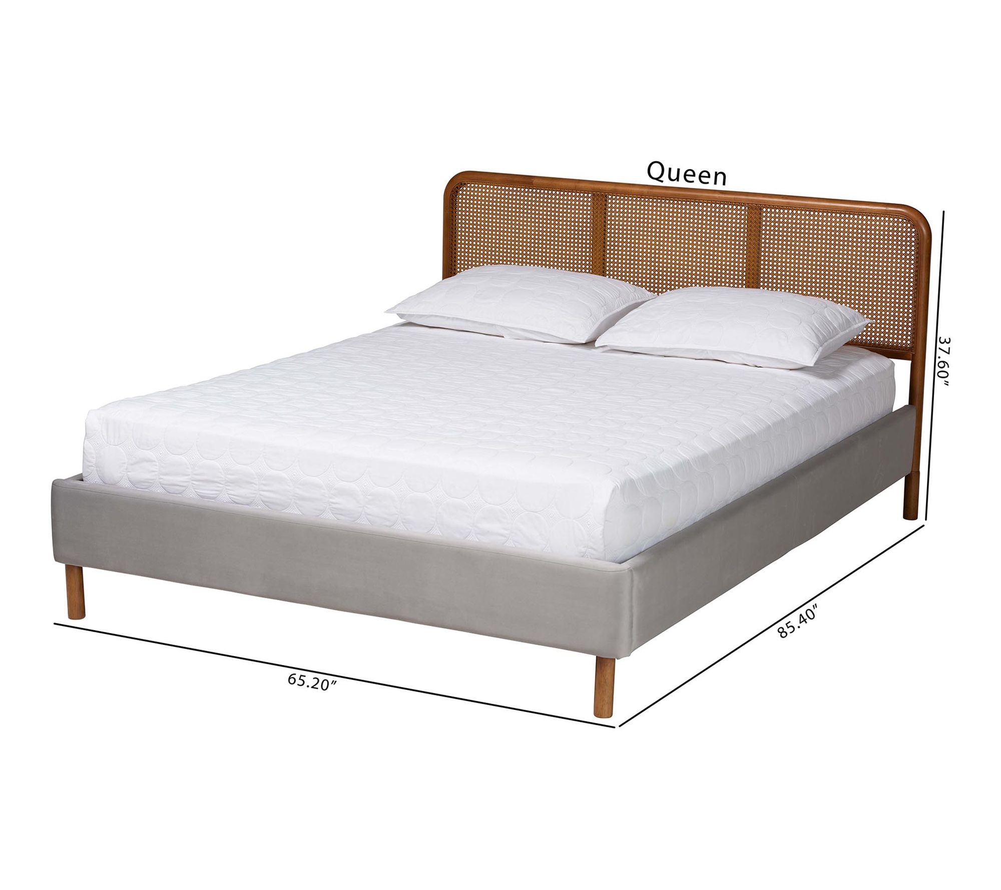 Baxton Studio Rosita Grey Velvet Brown Wood Queen Platform Bed