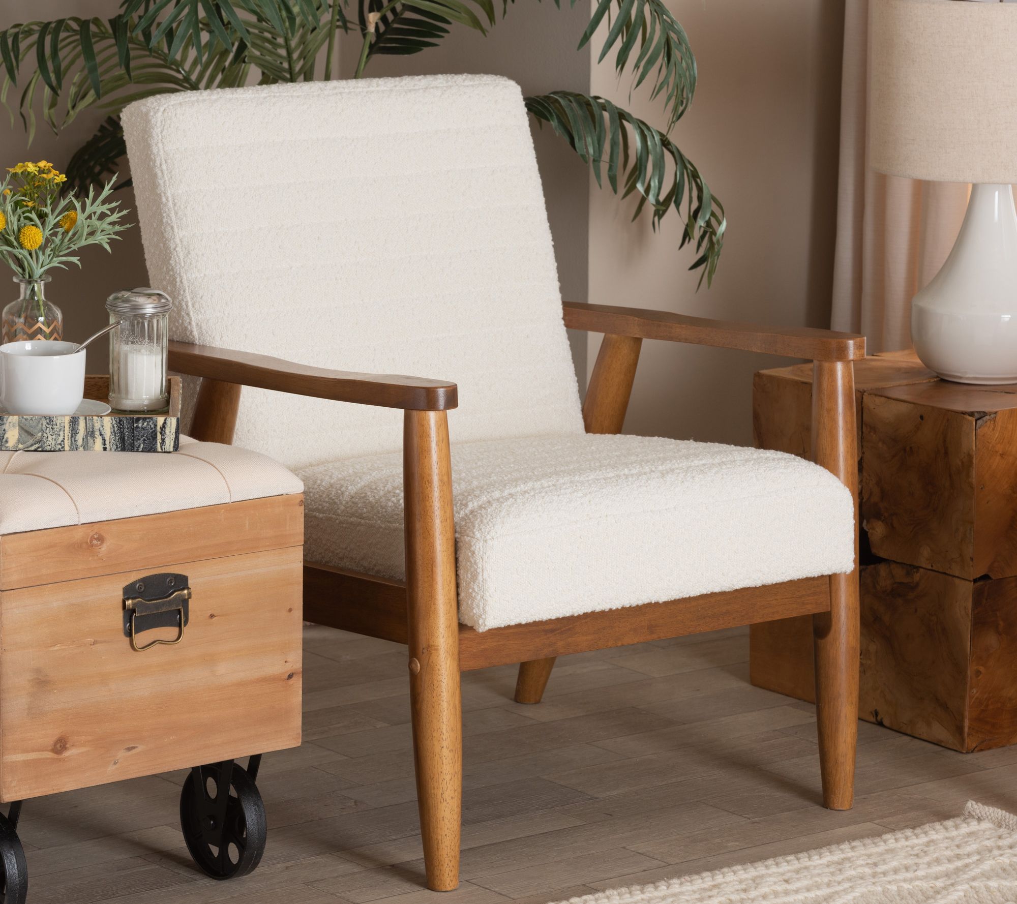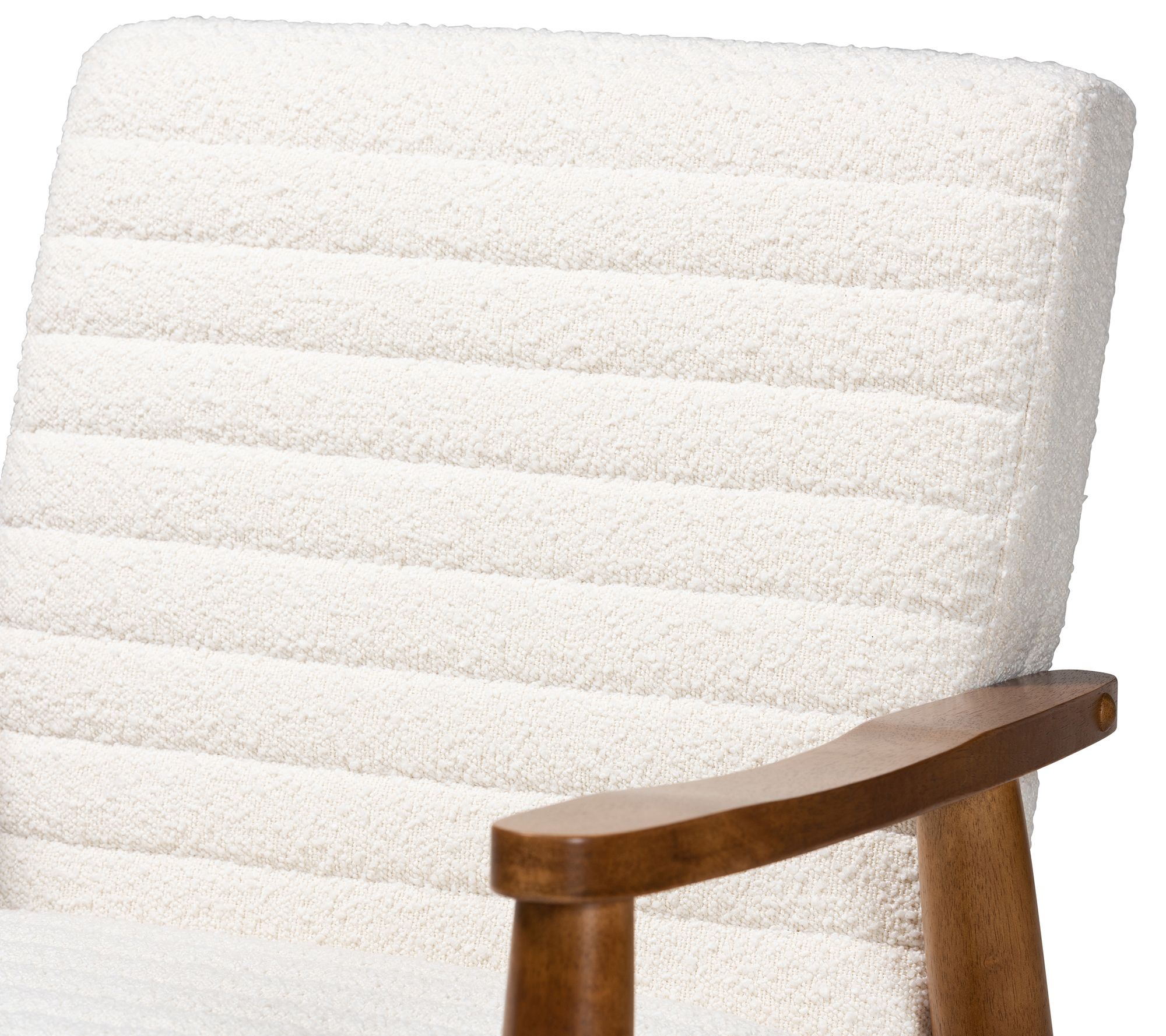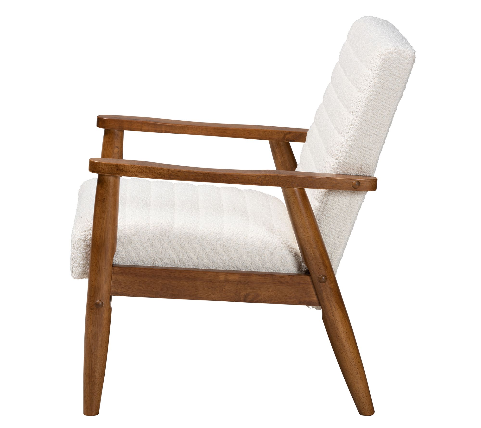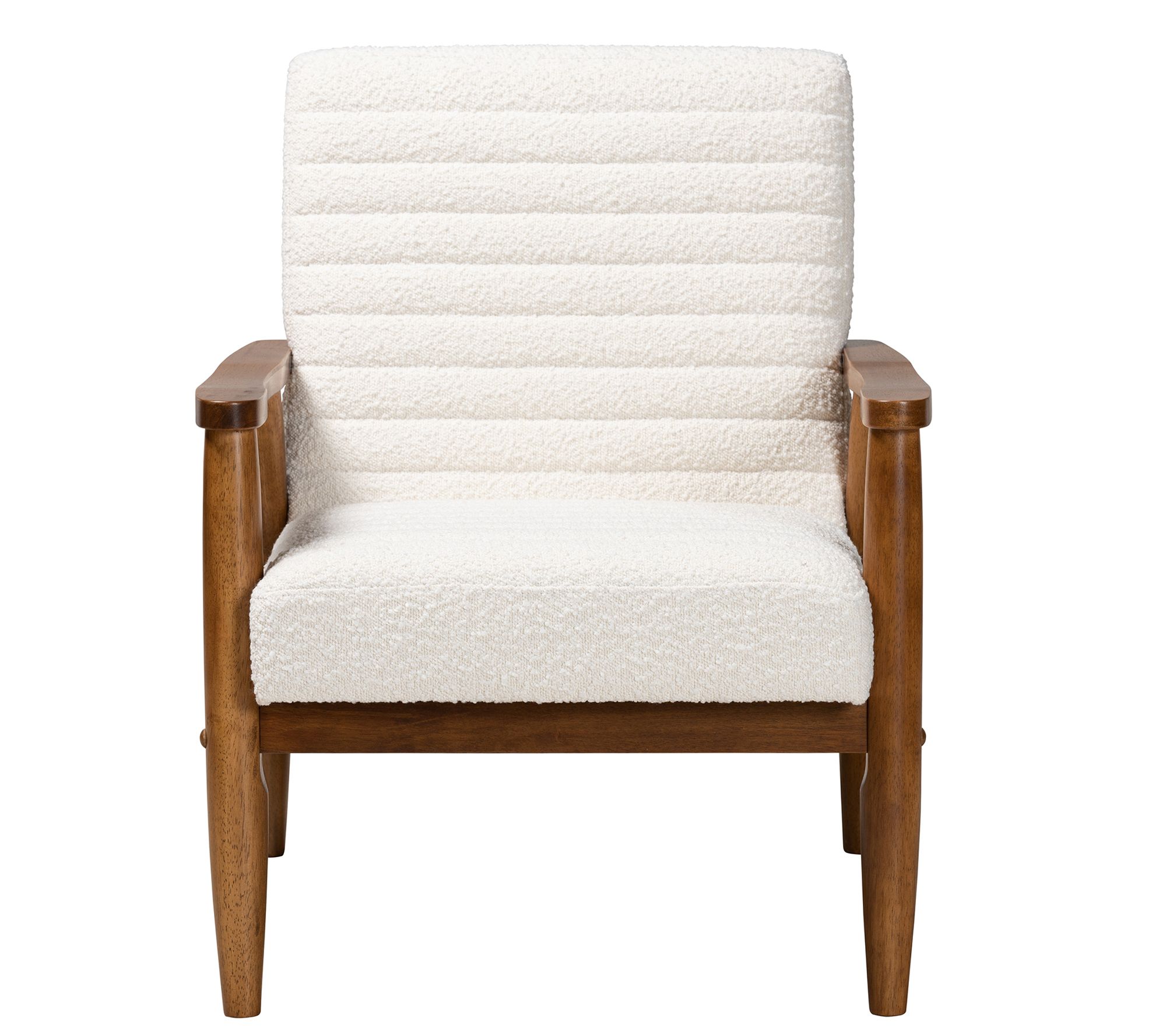 Sit back and relax with a good book or a glass of wine in the cushiony comfort of this mid-century-inspired Stratton armchair. From Baxton Studio.