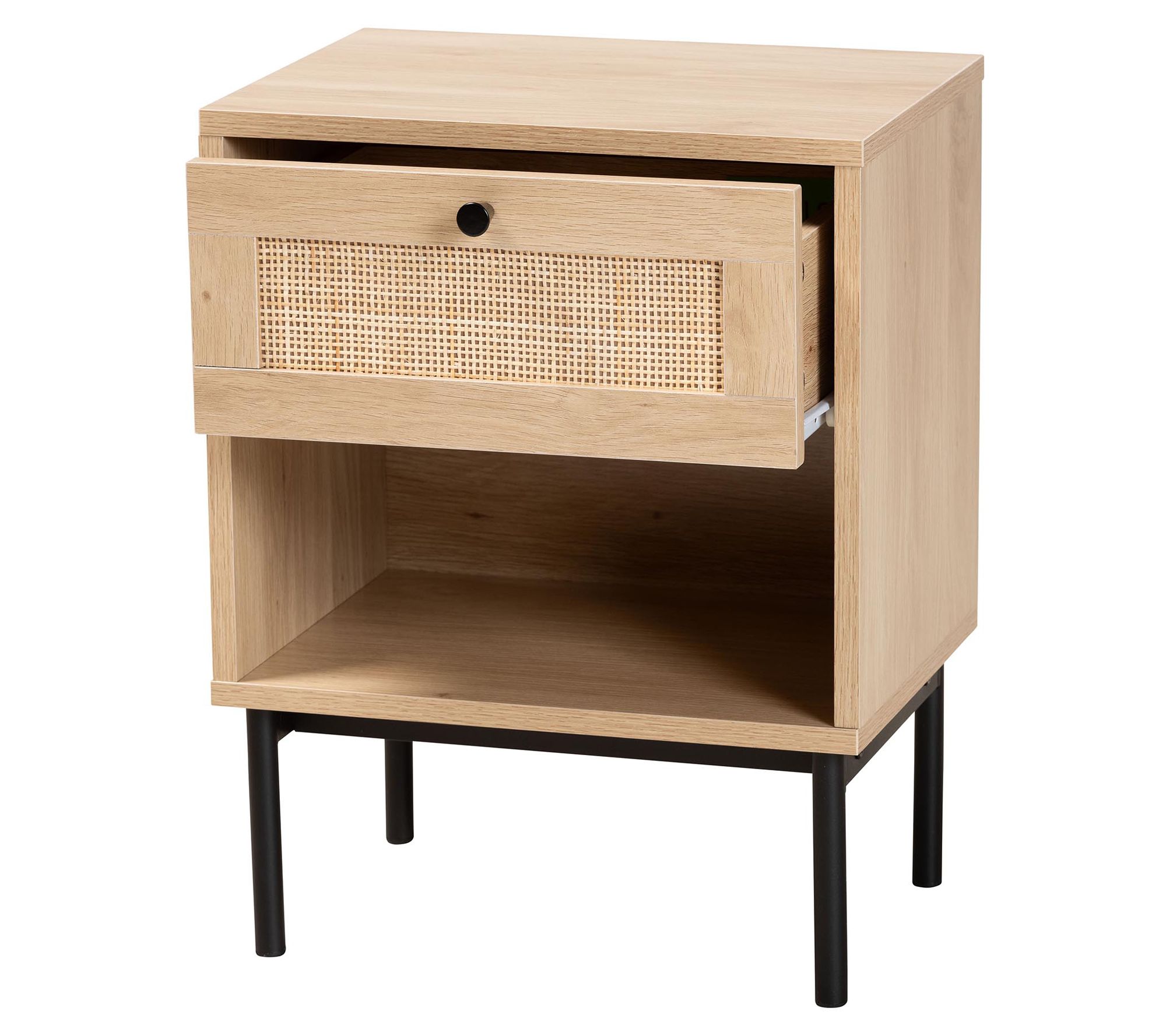 Elevate your living space with the stylish and functional Sherwin end table by Baxton Studio. This mid-century gem combines a sturdy wood frame with a solid metal base, offering both durability and charm. Perfect for storing essentials in its convenient drawer while accommodating larger items on the open shelf, this table adapts traditional aesthetics for modern needs. From Baxton Studio.