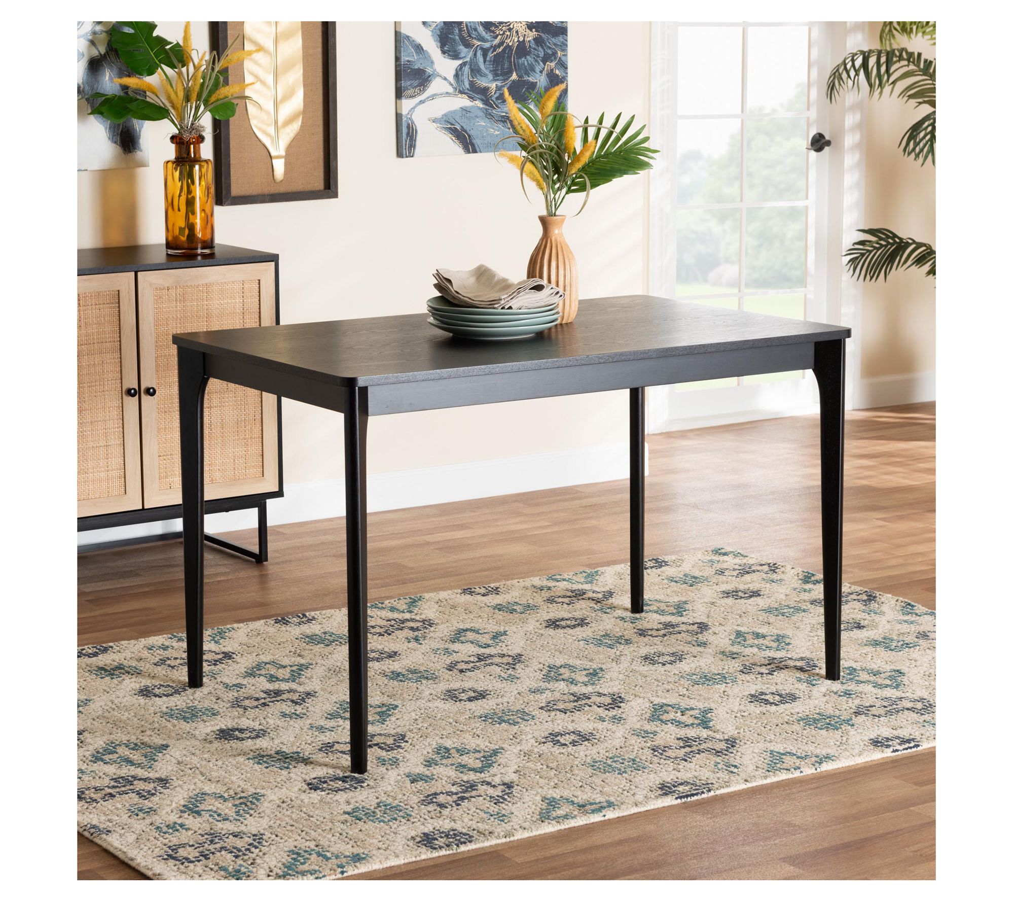 Accompany every meal with the classic refinement of the Sherwin dining table. The mid-century inspired piece comfortably seats four and features an inviting broad, rectangular outline with rounded corners. Tapered legs provide excellent support while lending a minimalist, airy feel. From Baxton Studio.