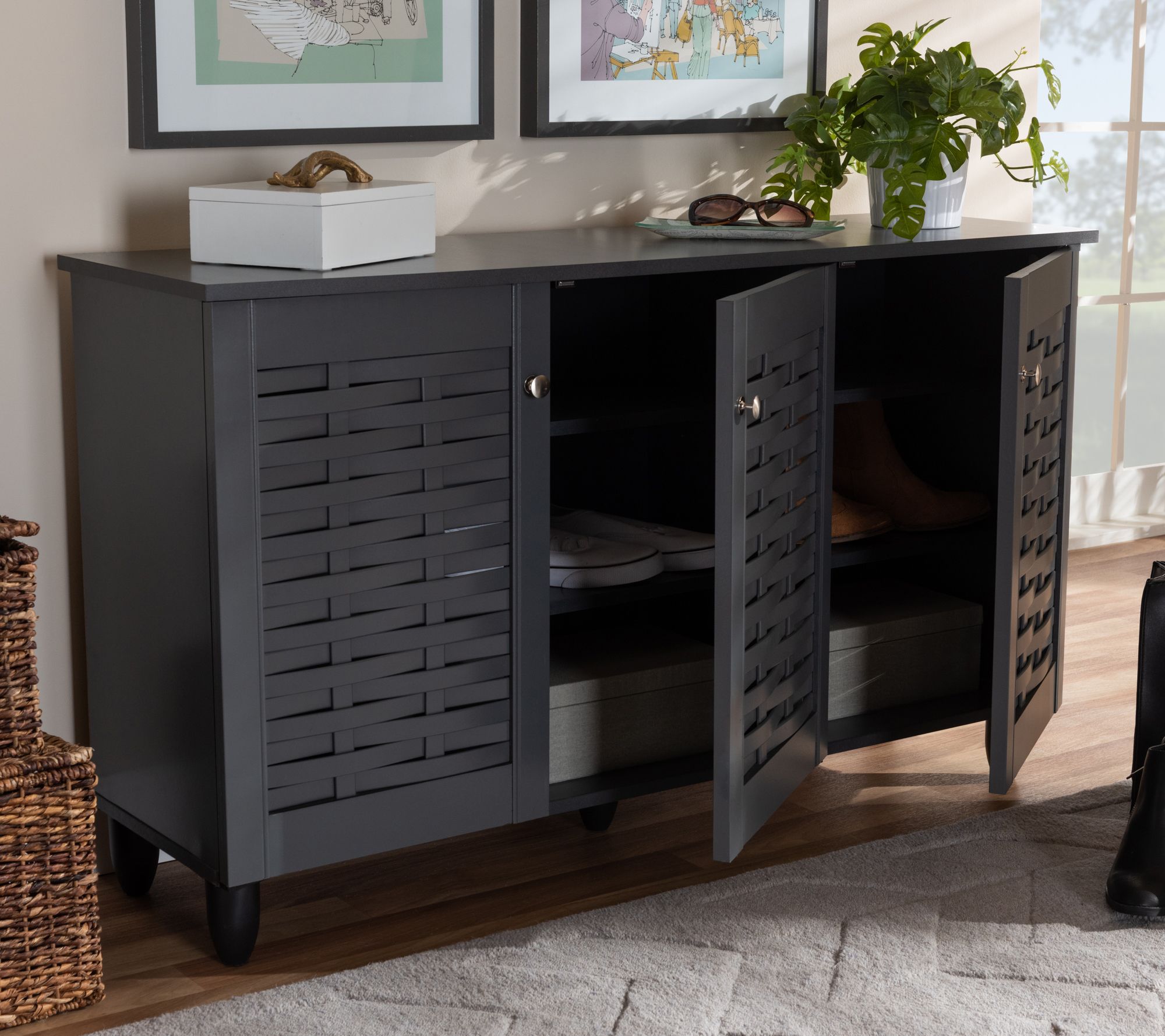 Baxton Studio Winda Charcoal 3-Door Shoe Cabinet