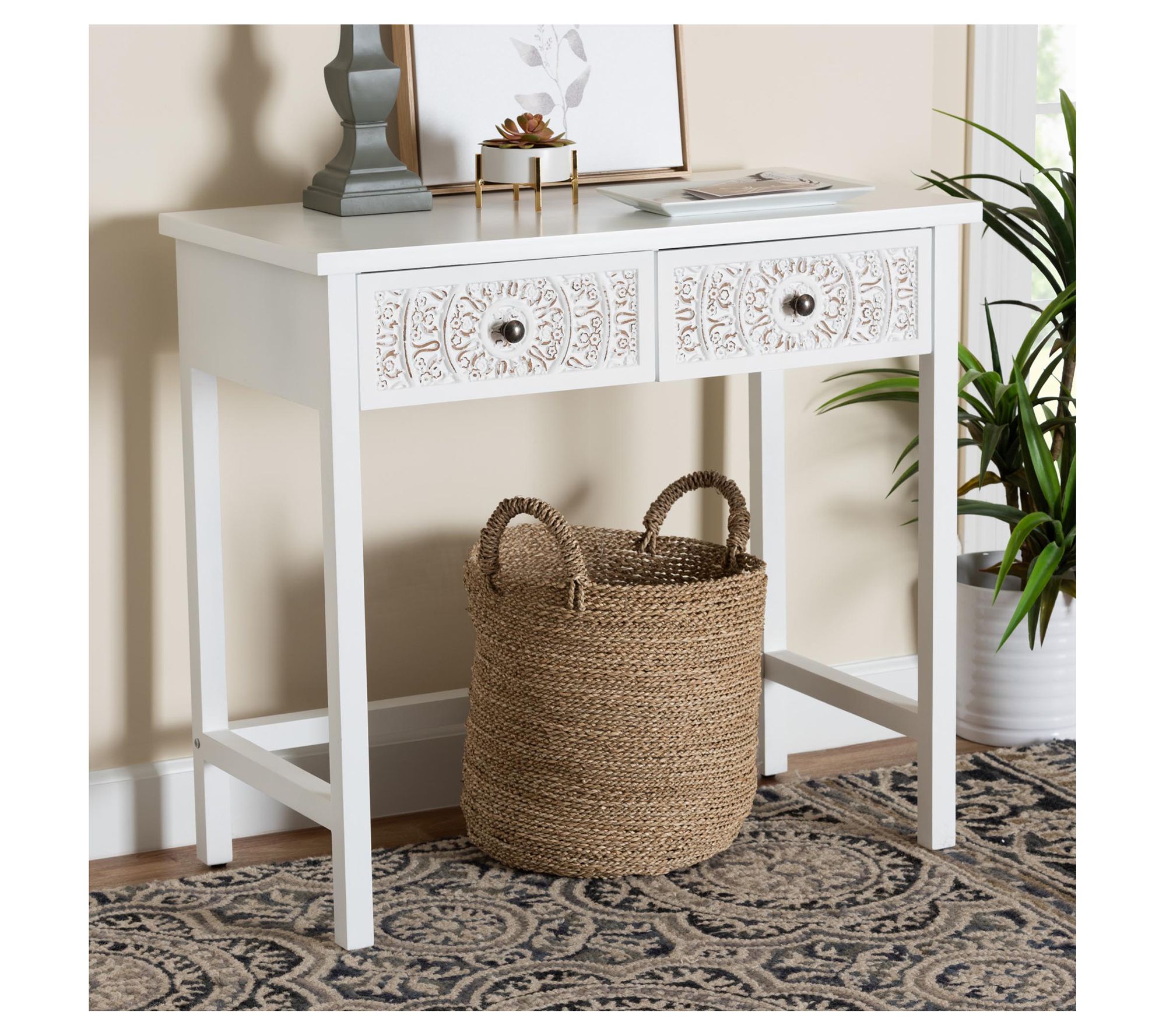 Baxton Studio Yelena White Wood 2-Drawer Console Table