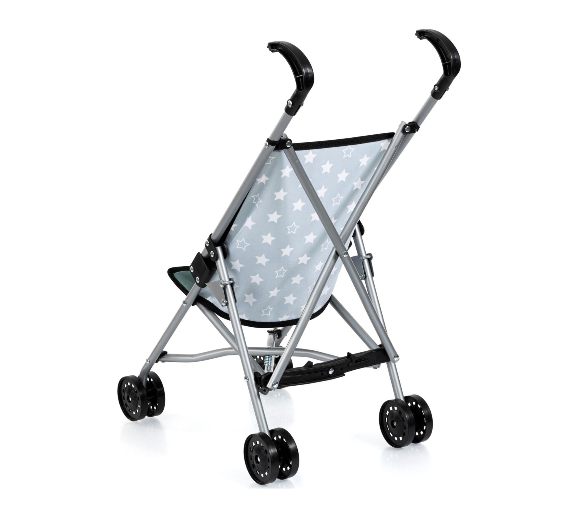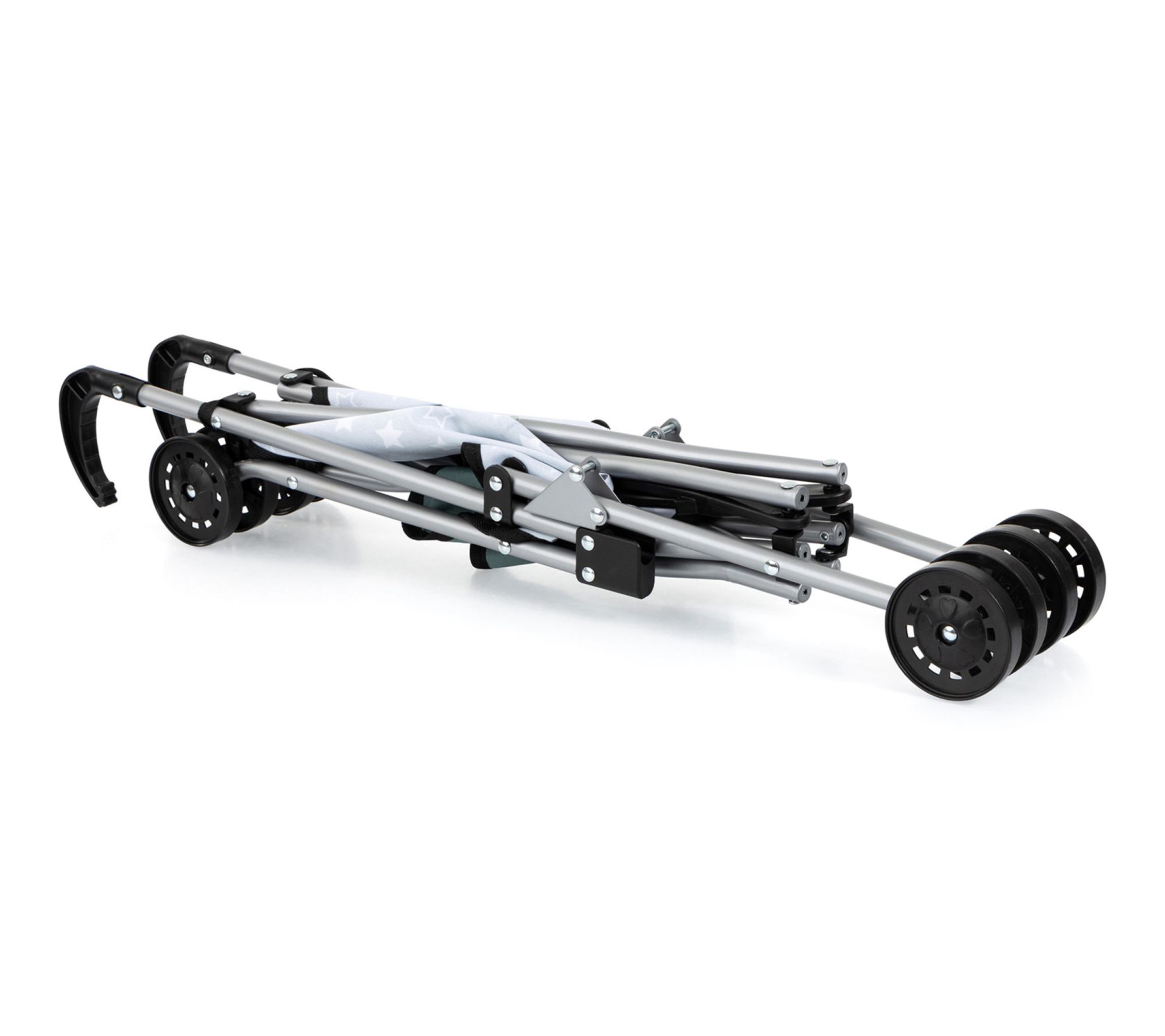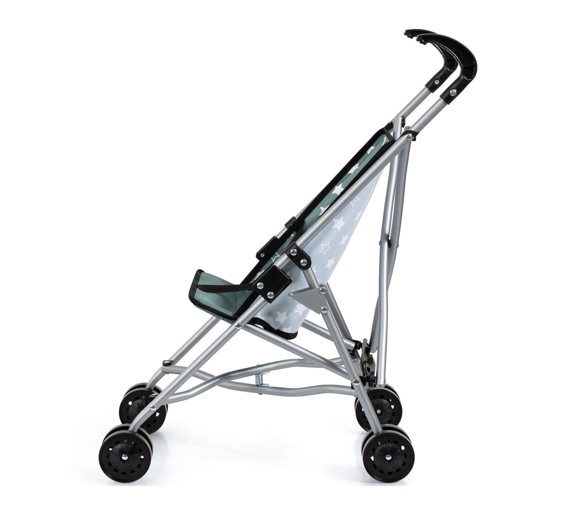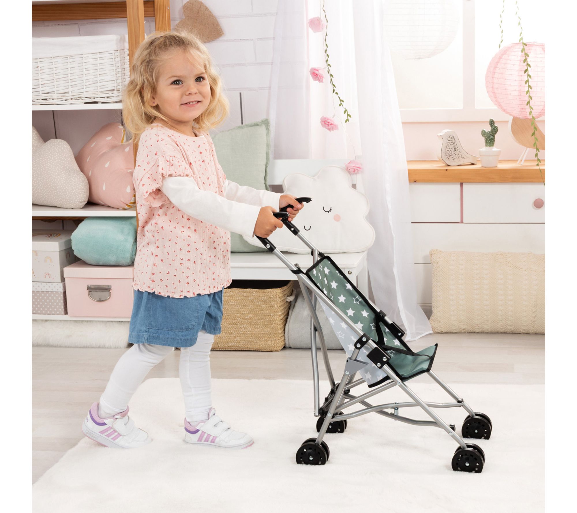 Take playtime on the go with this doll umbrella stroller, featuring charming green and white stars. Effortlessly foldable and equipped with an integrated safety belt, it's made for strolls around the house or neighborhood, ensuring plushies and dolls up to 18 inches are comfortably secured. Dual wheels make for smooth movement, encouraging imaginative adventures wherever the day takes you. From Bayer Design.