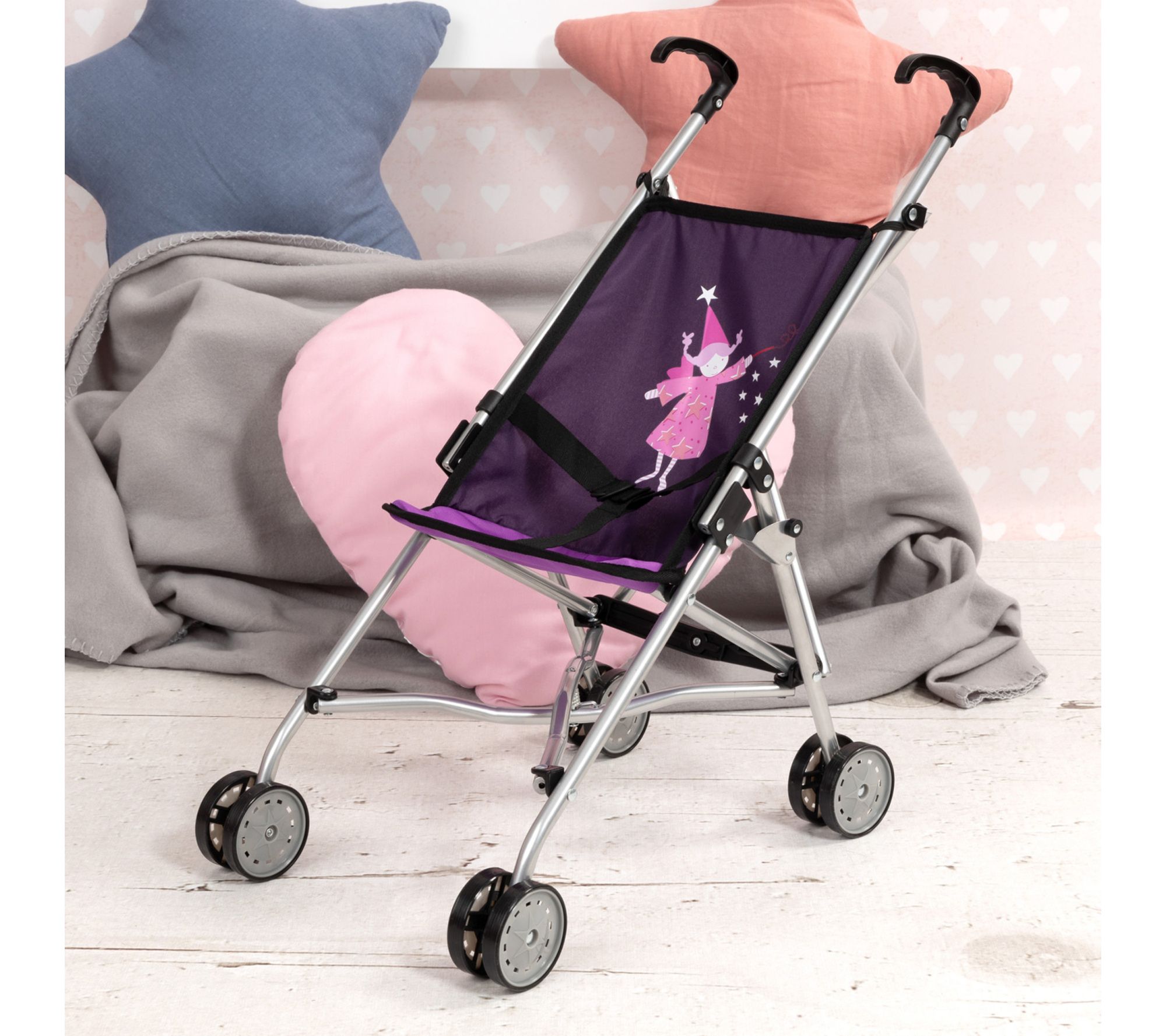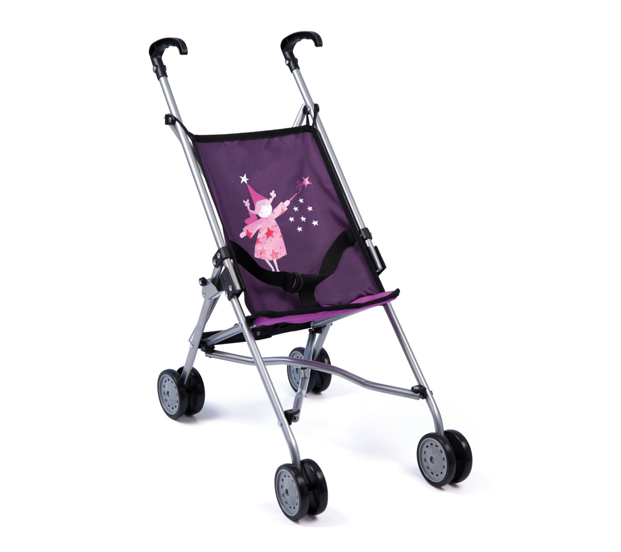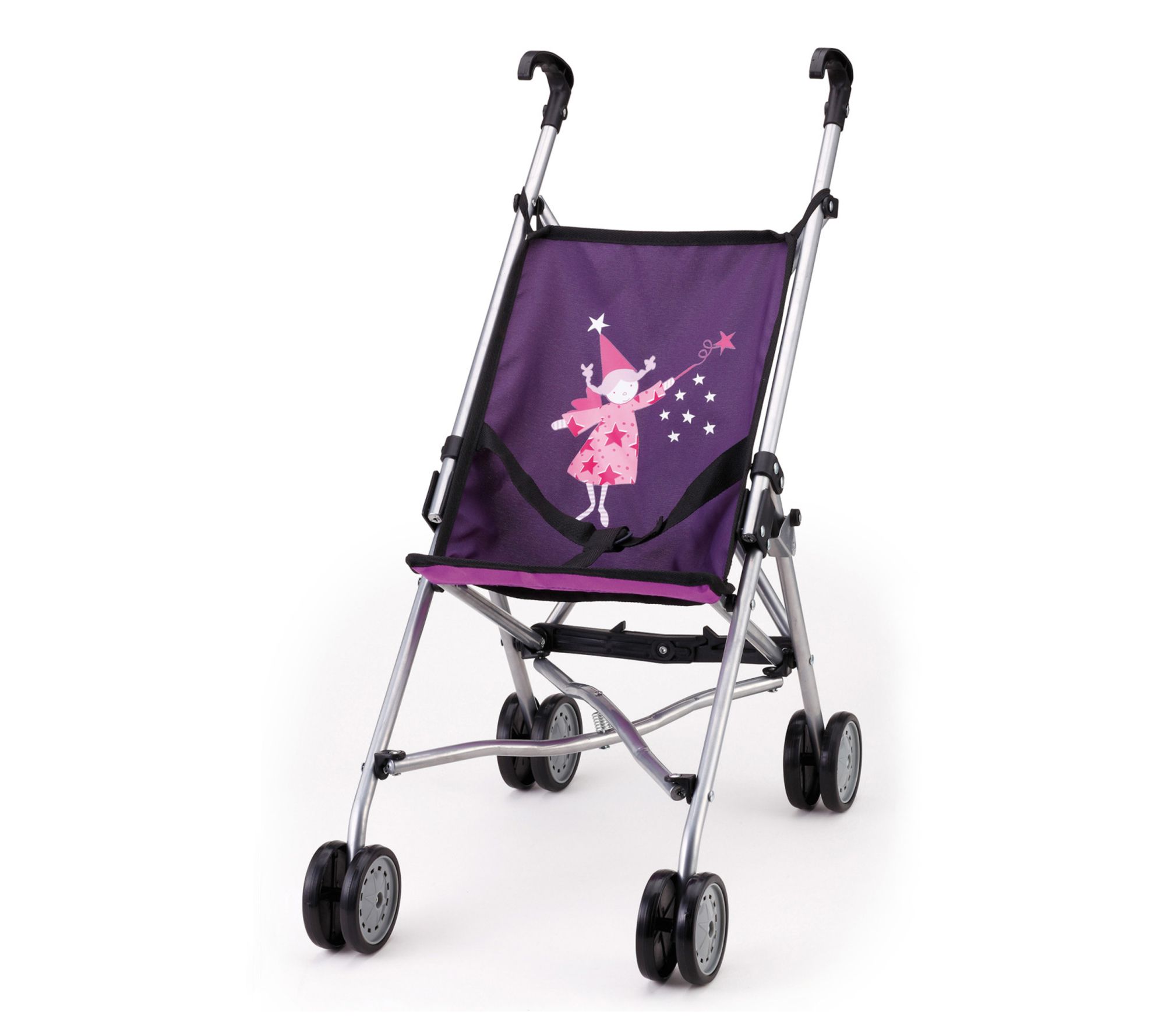 Watch your little one's imagination soar during playtime as they stroll, care for, and adventure with their favorite dolls and plush companions in this fairy-themed doll buggy. Its foldable, lightweight design means playtime can happen anywhere, while an integrated safety belt and cheerful purple fabric add extra charm and comfort to each outing. From Bayer Design Dolls.