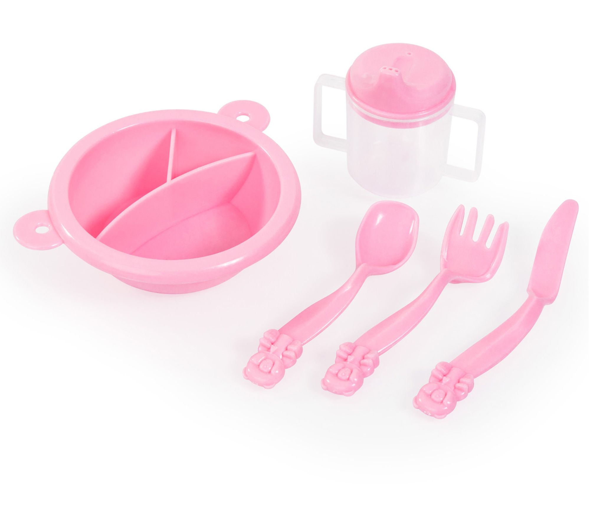 • Includes high chair, bed, playground, shoulder bag, plate, bottle, spoon, fork, knife