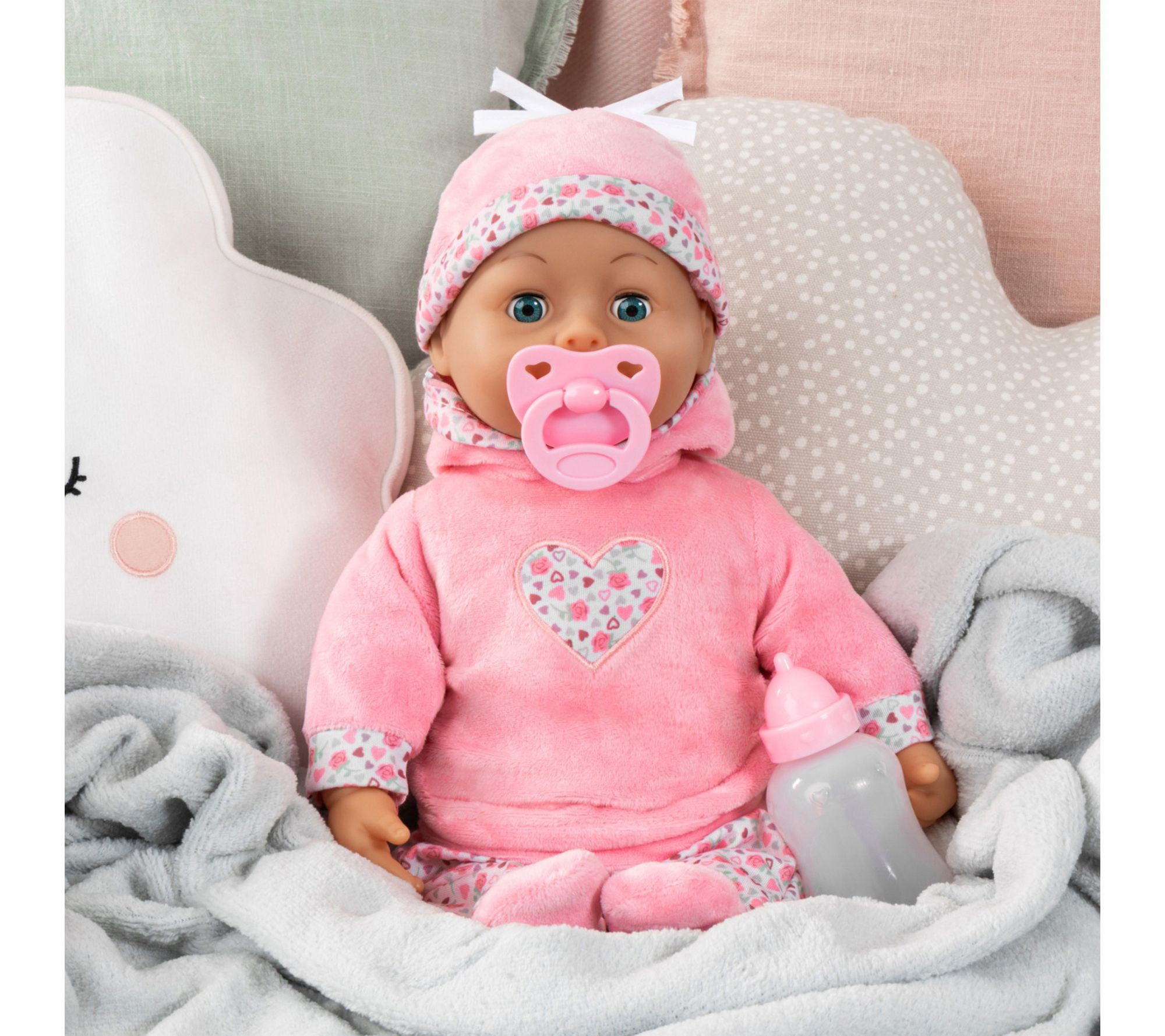 • Includes doll, bottle, and pacifier