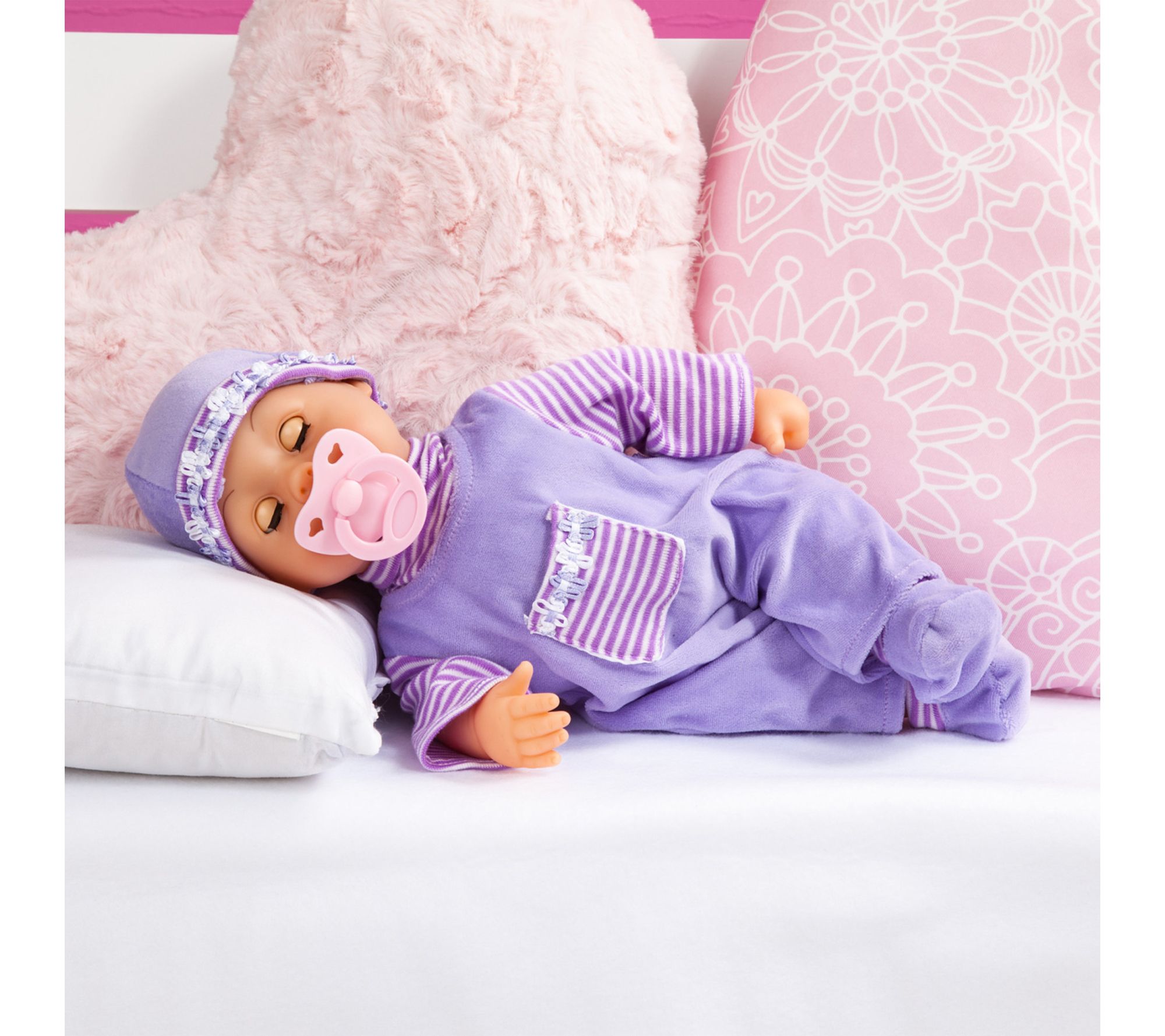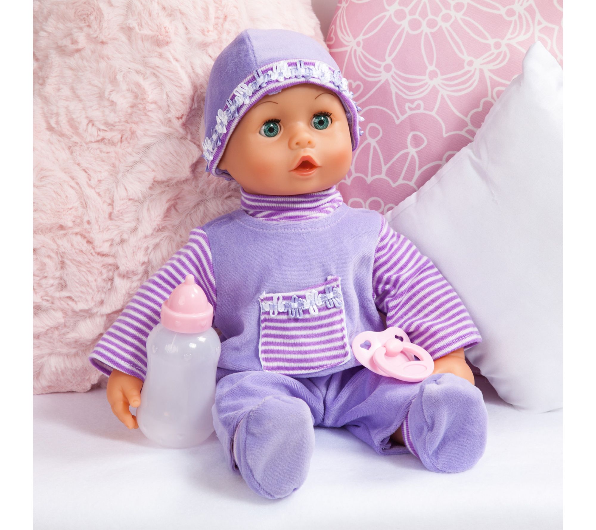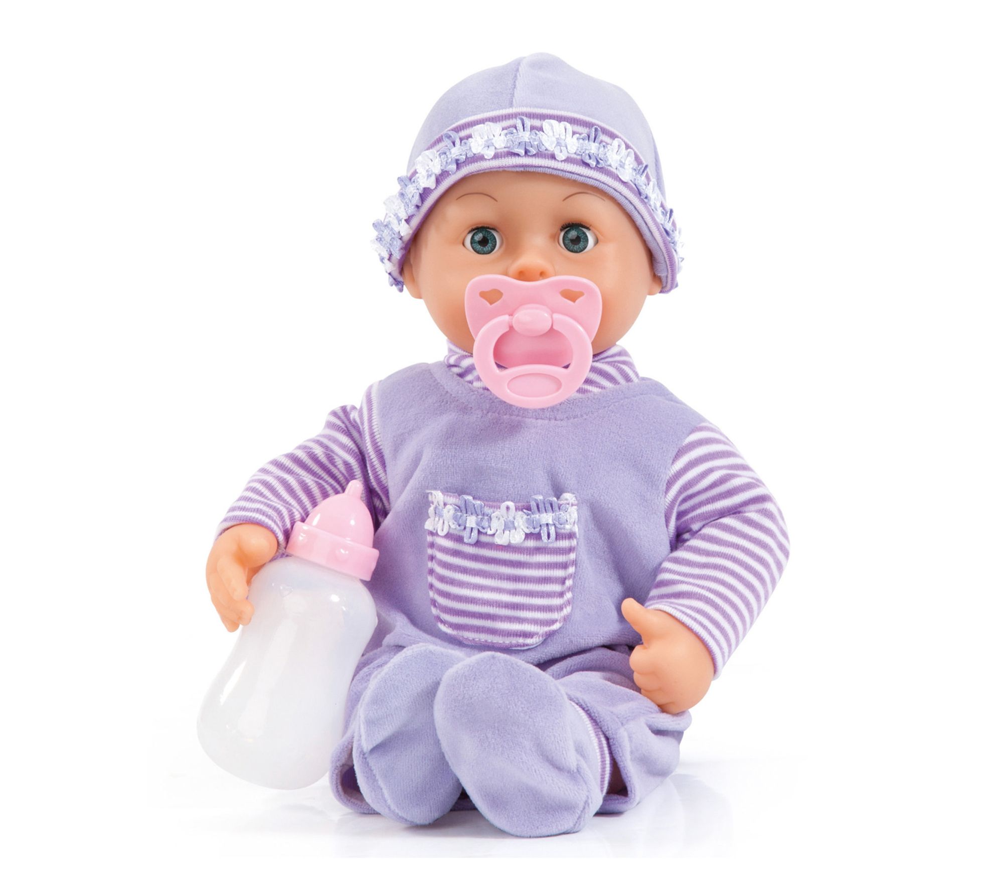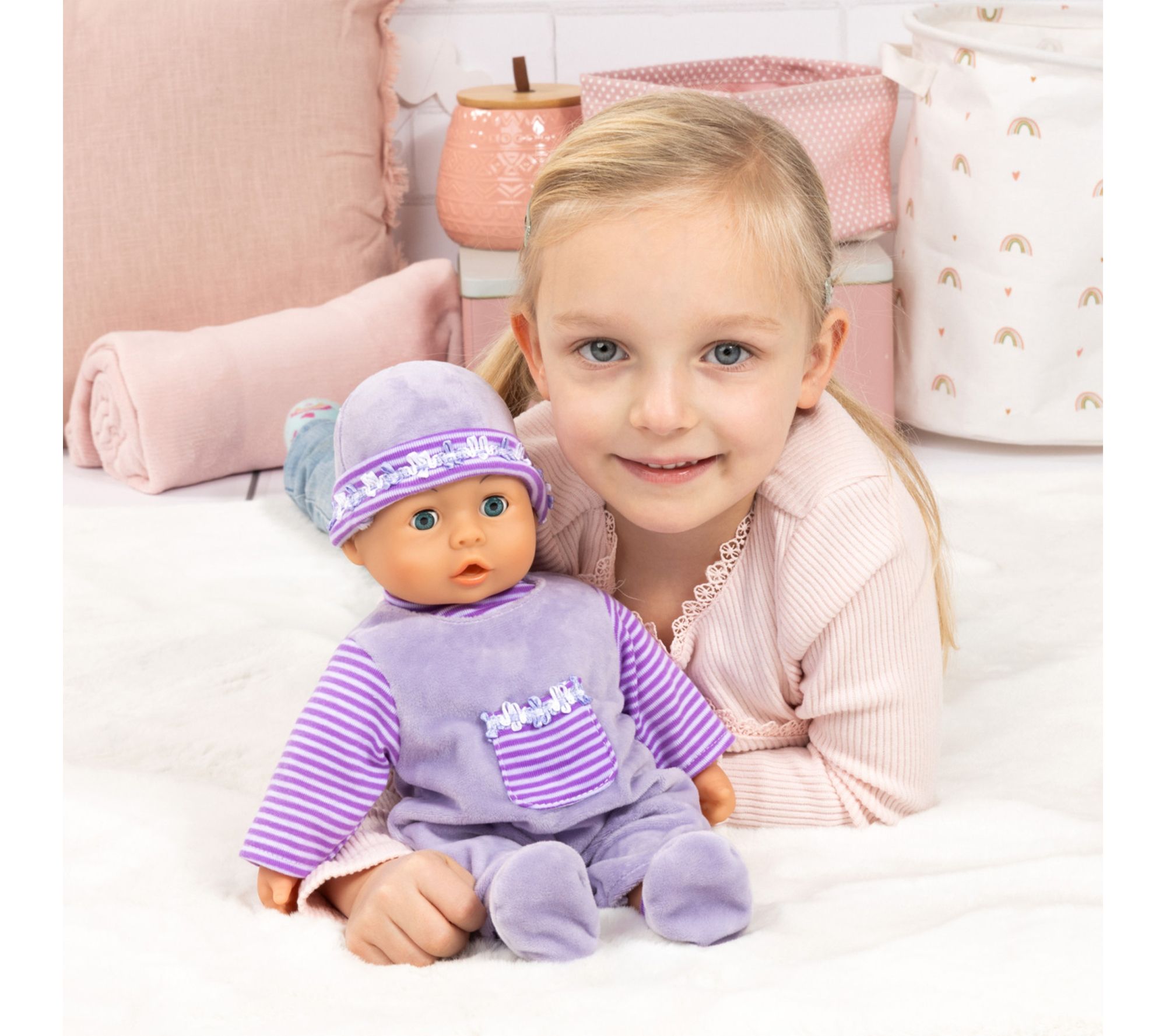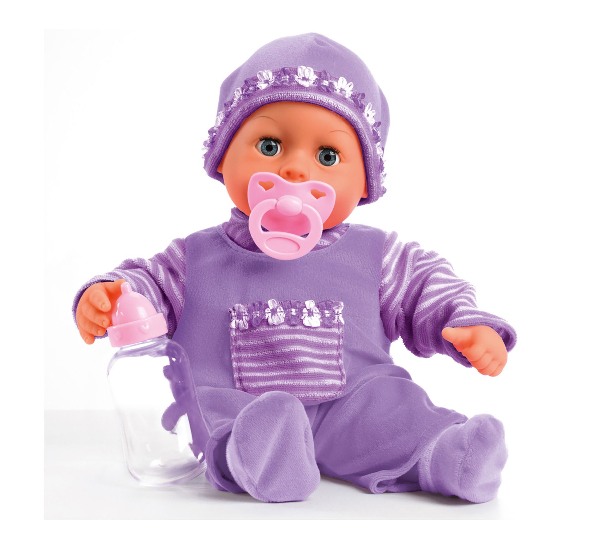 Little ones can nurture and care for their very own soft body baby doll, complete with interactive sounds and adorable accessories for feeding and comforting. Whether at home or on the go, this cuddly companion encourages imaginative play and gentle caregiving moments with every hug and giggle. From Bayer Design.