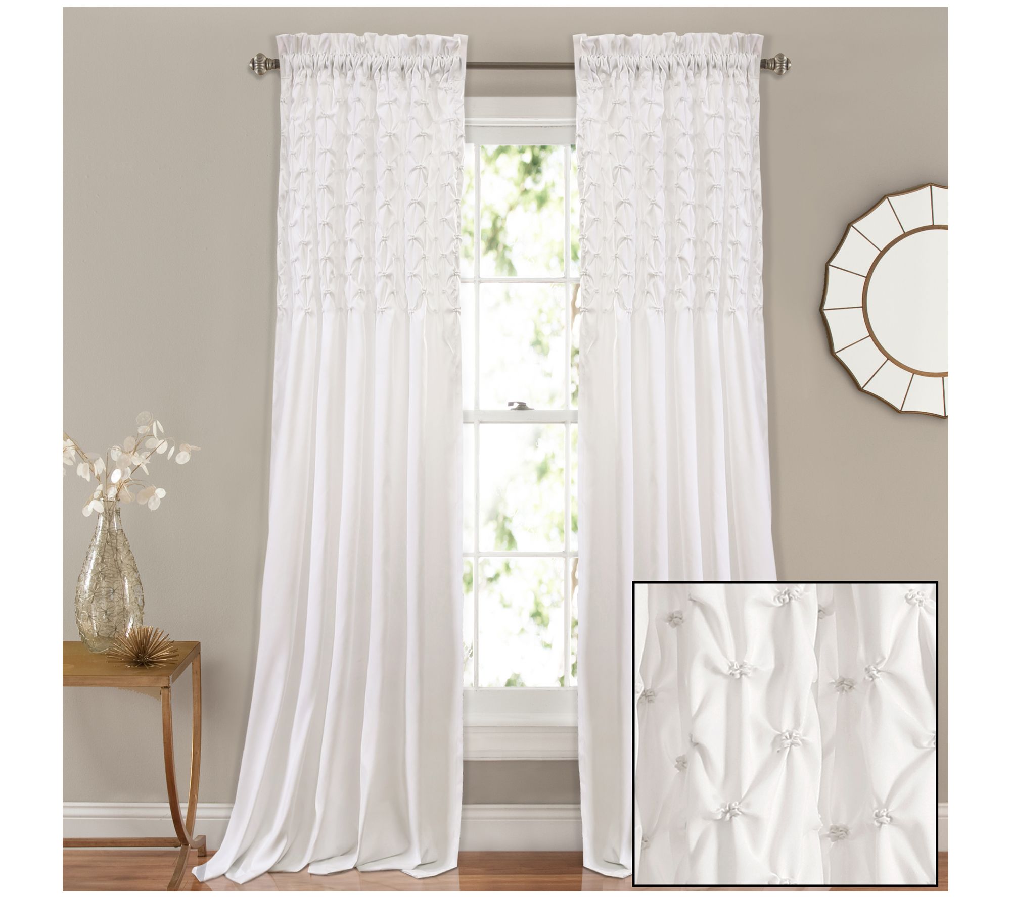 Long and flowing, these window panels are exquisitely detailed with diamond pintucking and elastic embroidery across the top, making them the perfect way to add subtle interest to any space. From Lush Decor.