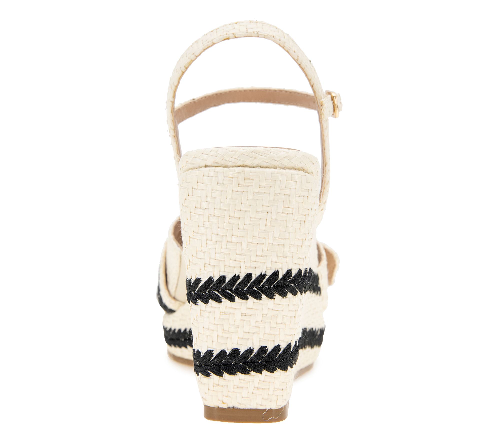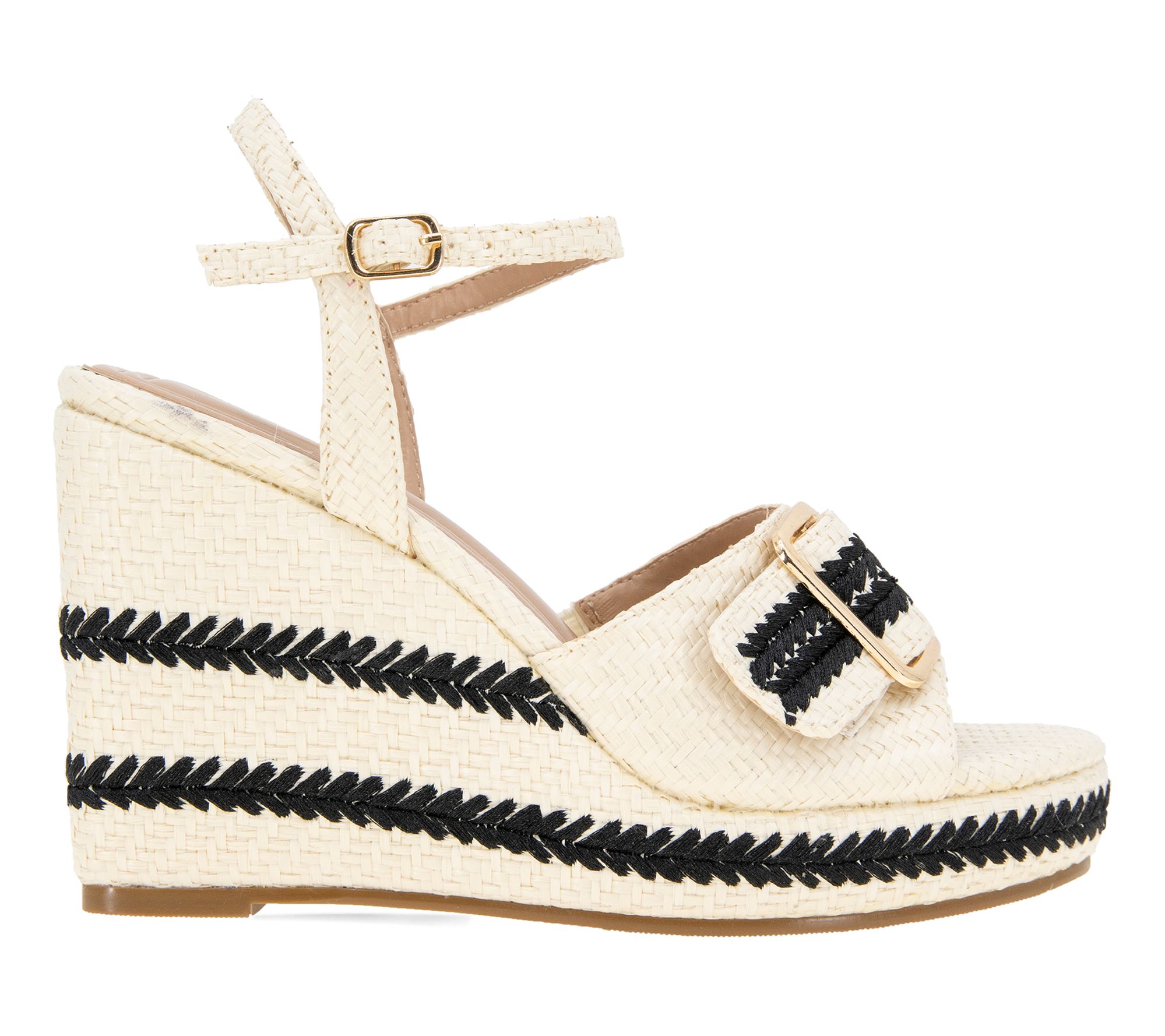Whether you’re strolling the promenade or attending a sunny lunch date, these wedges in raffia fabric impart casual elegance. From BCBGeneration.