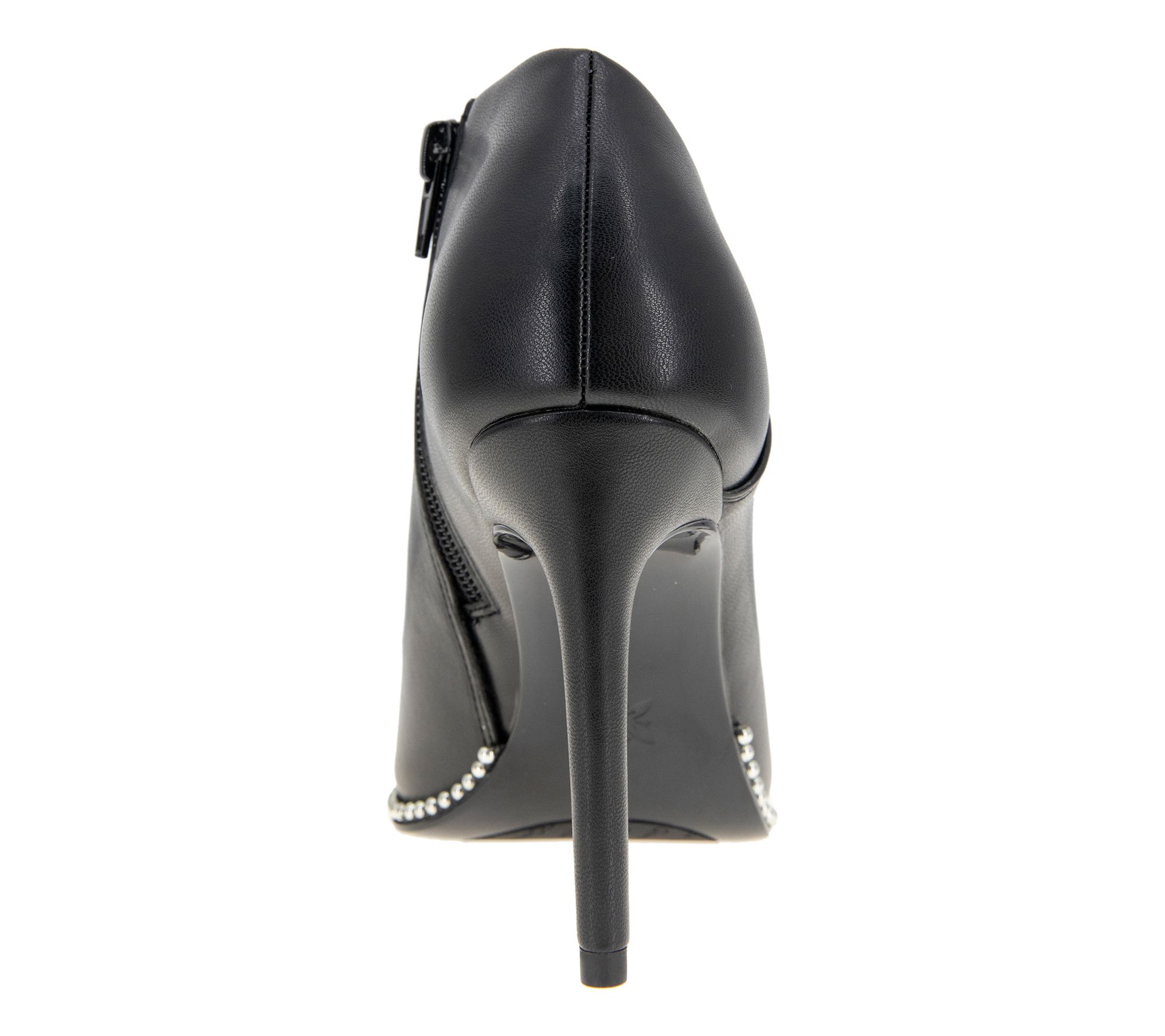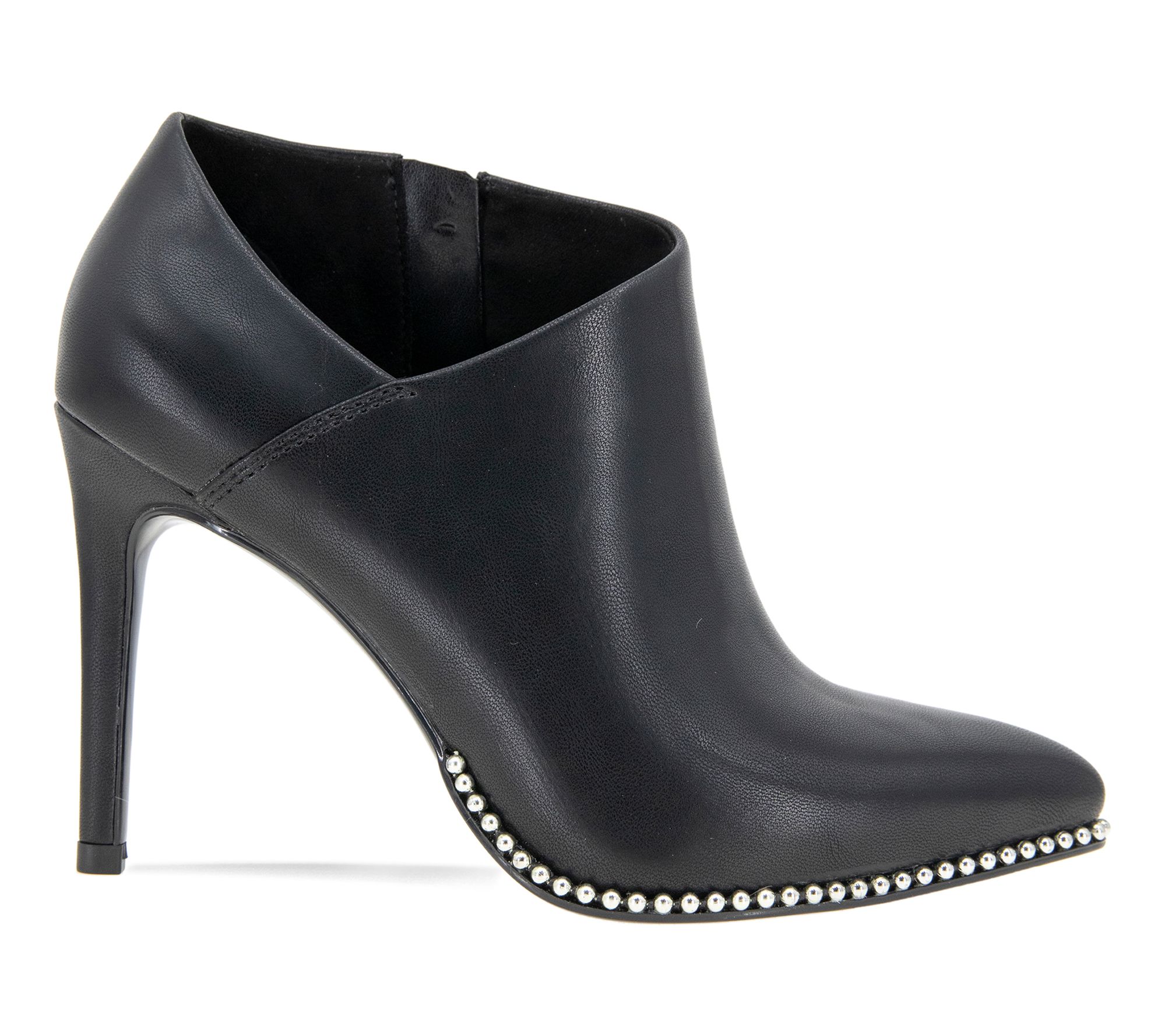 Put a little edge in every step. The Hadix-2 ankle bootie is giving diva energy with its stiletto heel and striking metallic chain detail. Get ready to make a statement. From BCBGeneration.