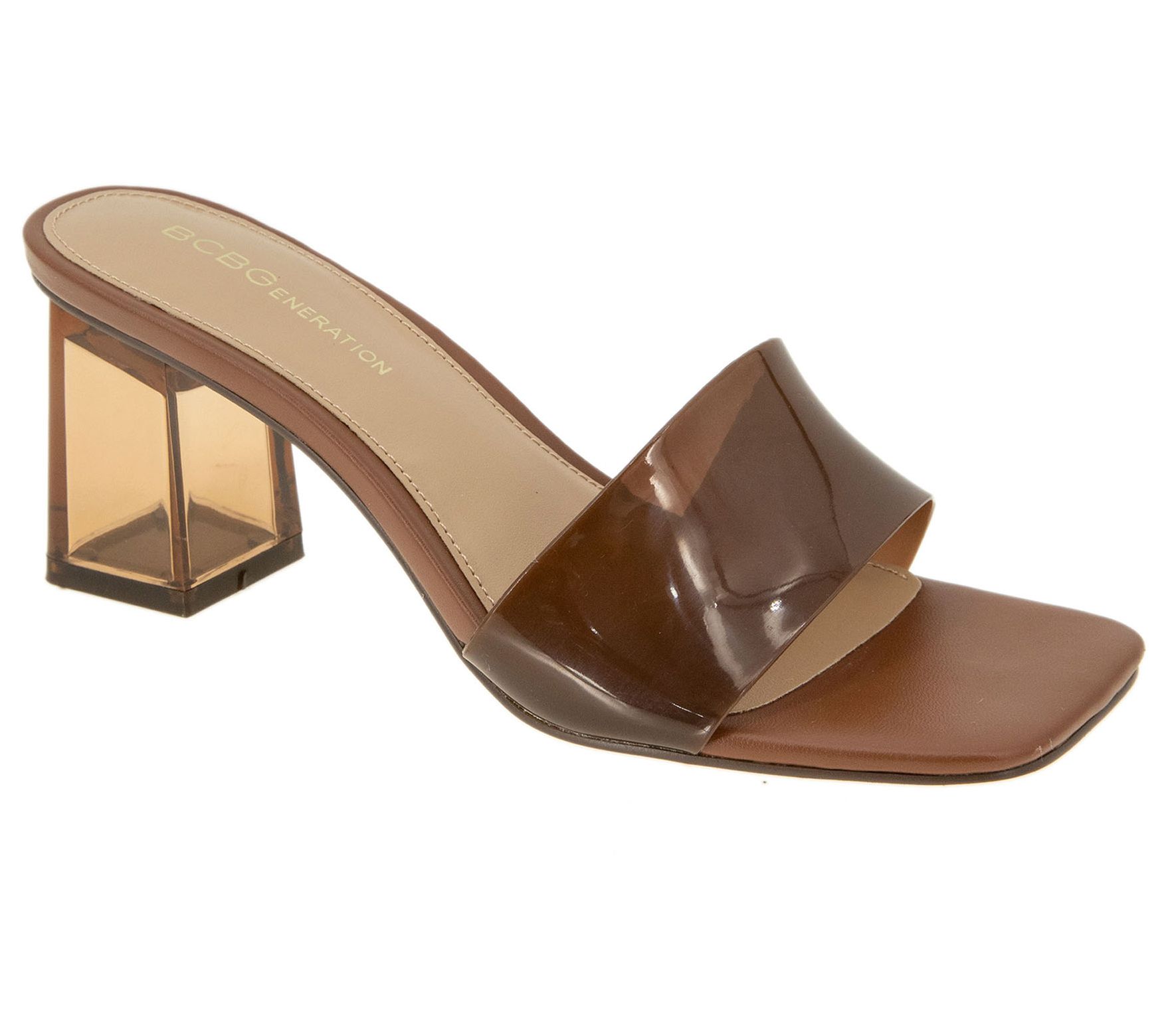 A clear style winner, the Luckee mule features a playful see-through block heel and strap, a flattering profile, and a padded insole for comfort that keeps you dancing all night. From BCBGeneration.