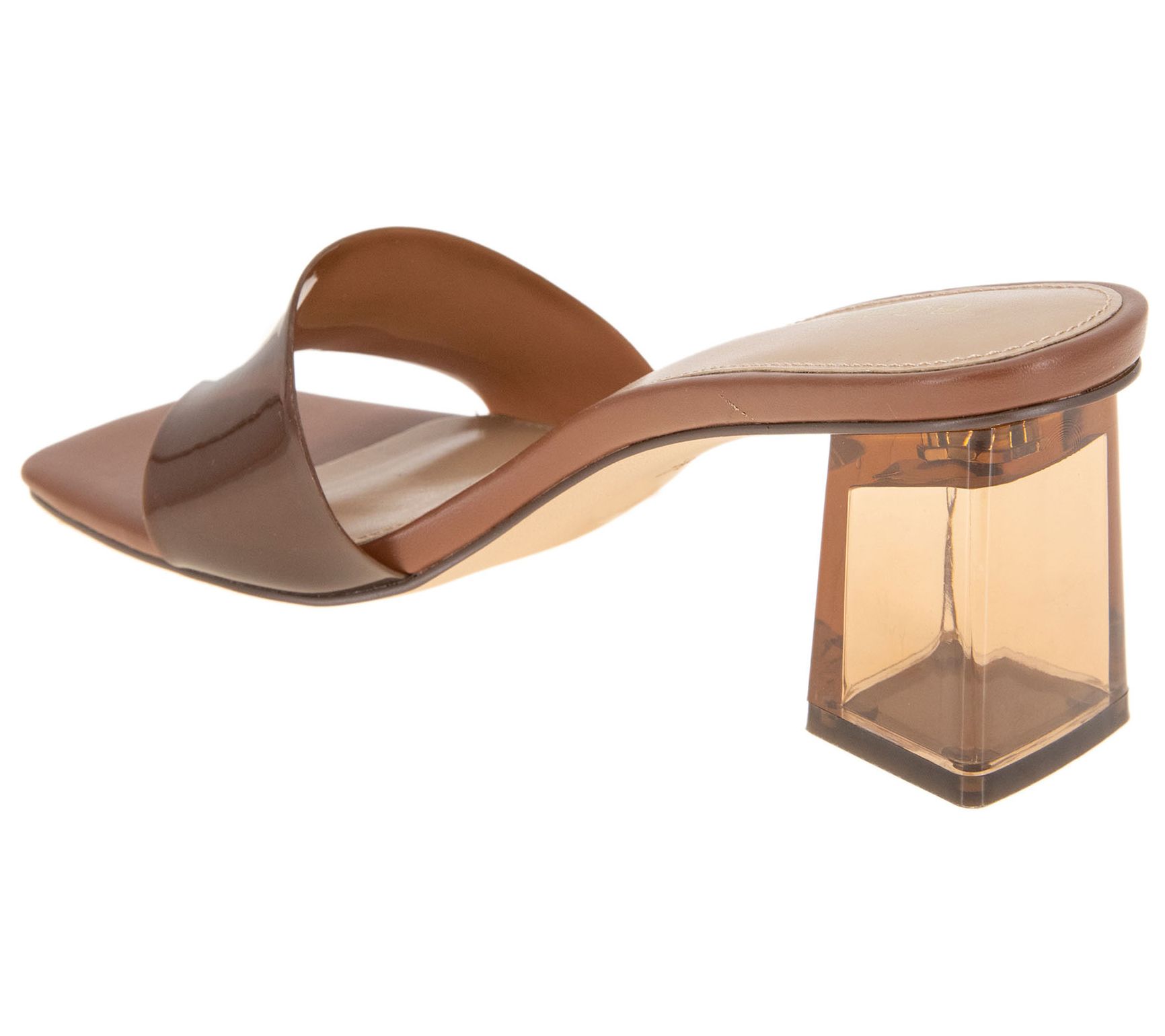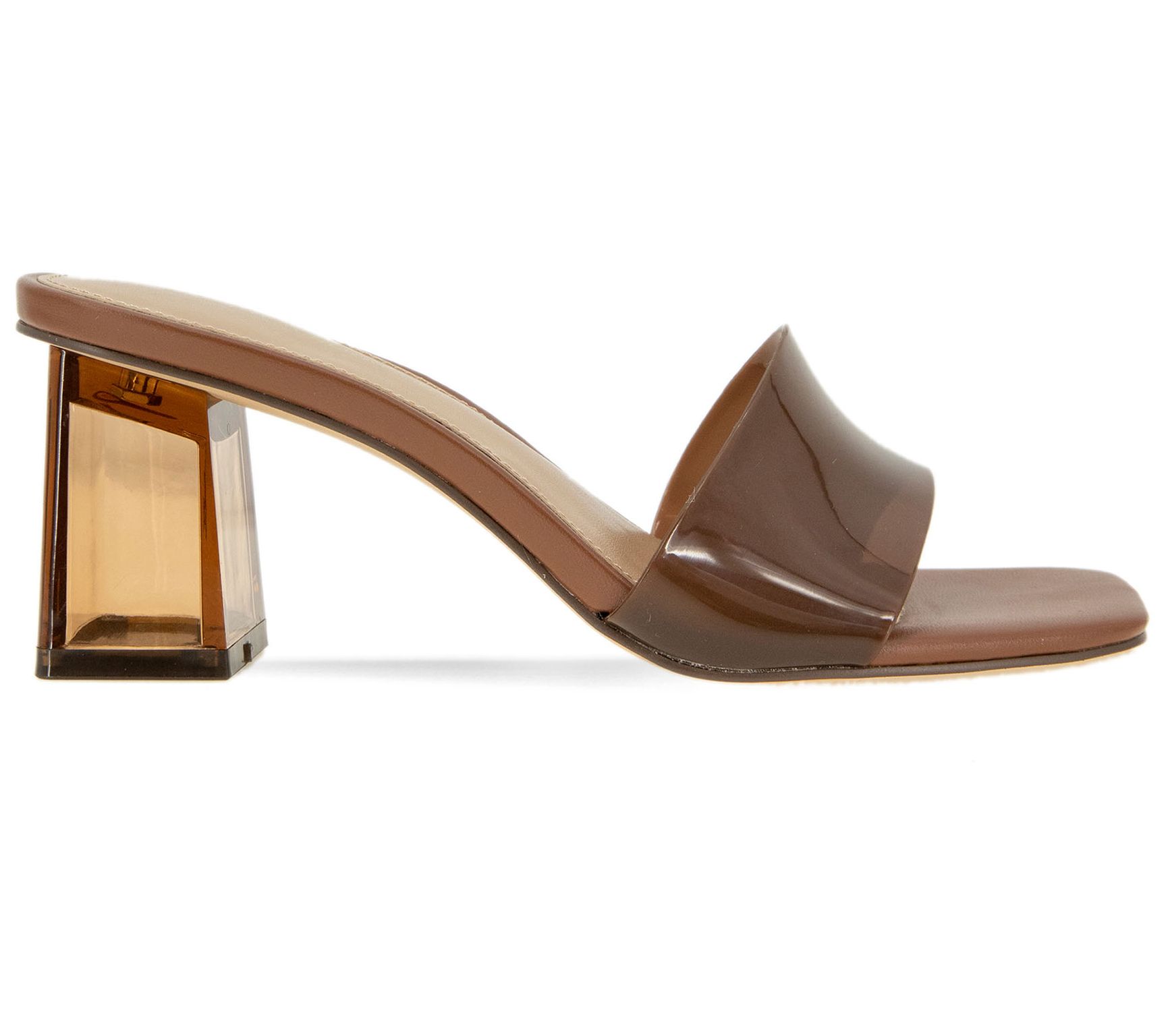 • Slip-on style, see-through strap, see-through block heel, squared toe