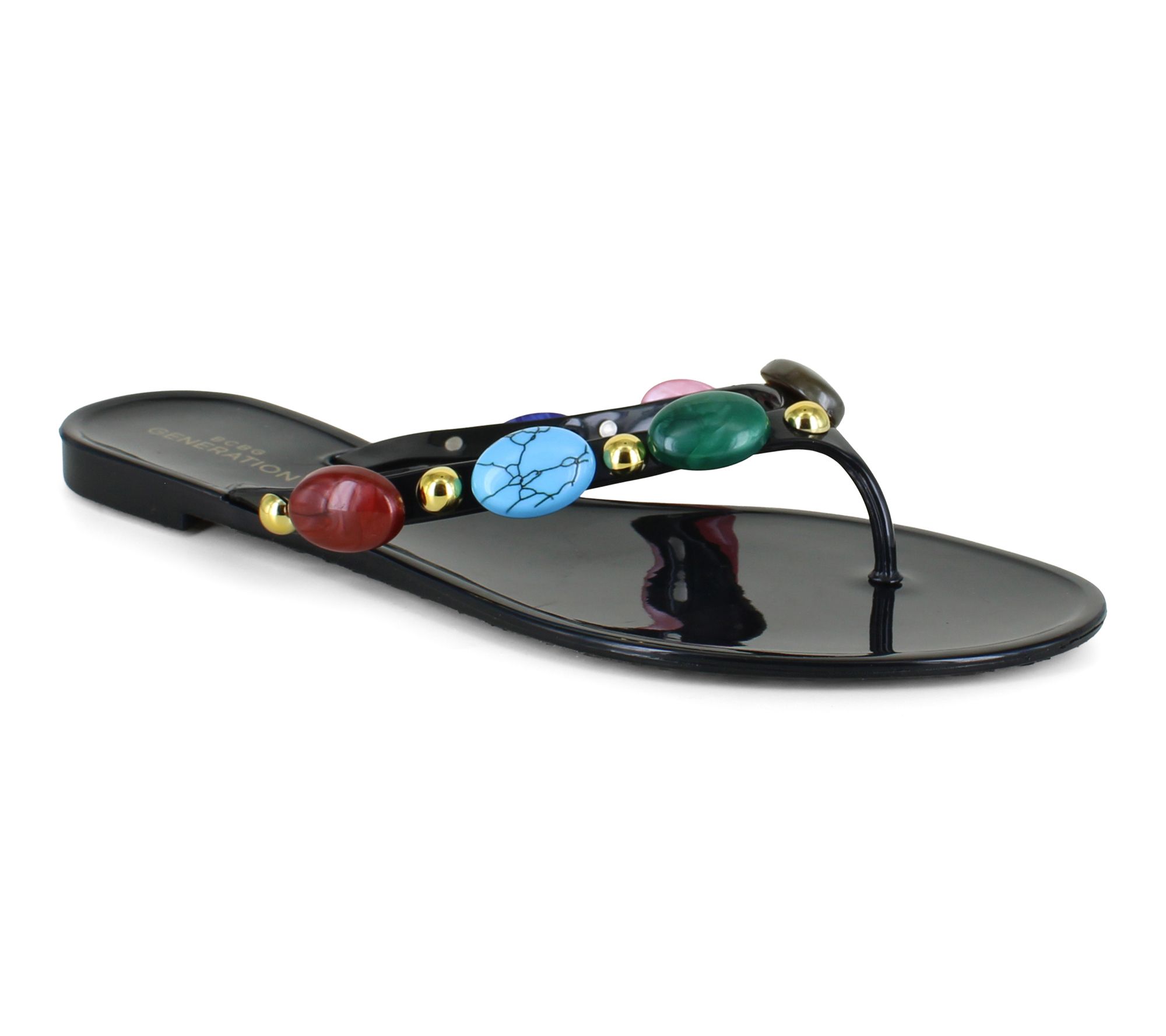 Add a playful twist to your warm-weather looks with these jelly beaded thong sandals -- perfect for park picnics, weekend errands, or strolling along the boardwalk. Eye-catching bead accents on the upper bring a touch of fun, while the easy thong design keeps every step light and comfortable. From BCBGeneration.