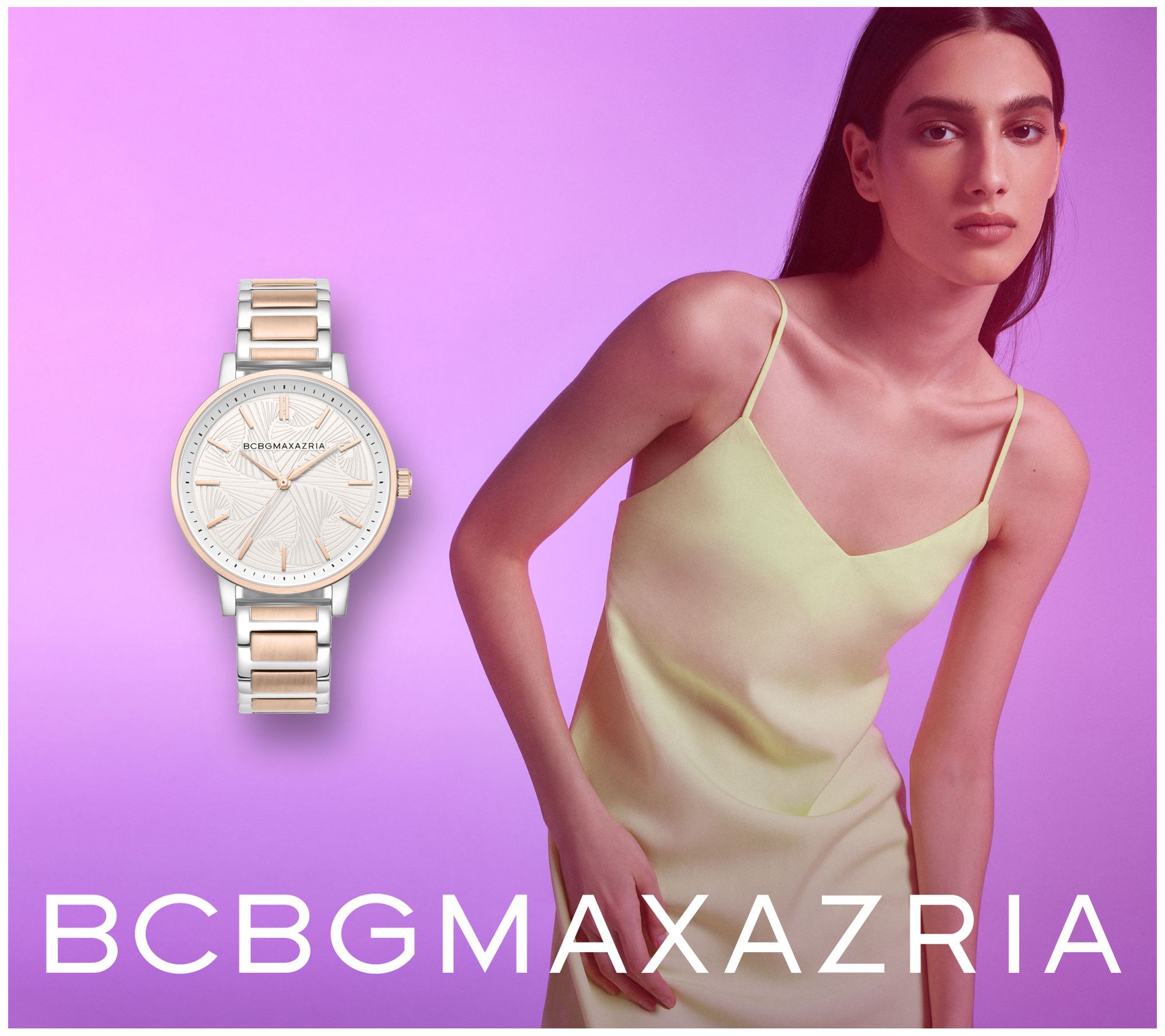 Style up your accessorized look with this timeless watch set in a luxurious two-tone case and anchored with a matching bracelet. From BCBGMAXAZRIA.