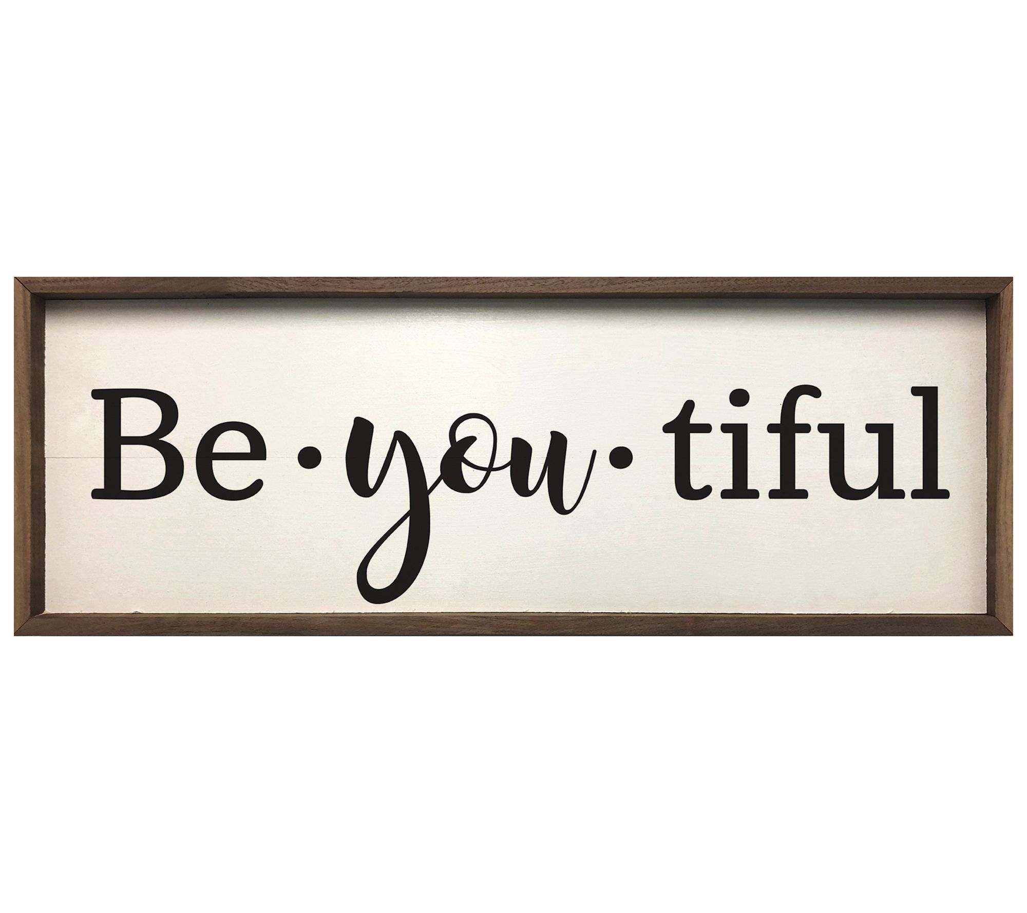 Add a meaningful message to your home decor with this "Be-you-tiful" typography print, framed in a rustic walnut frame.