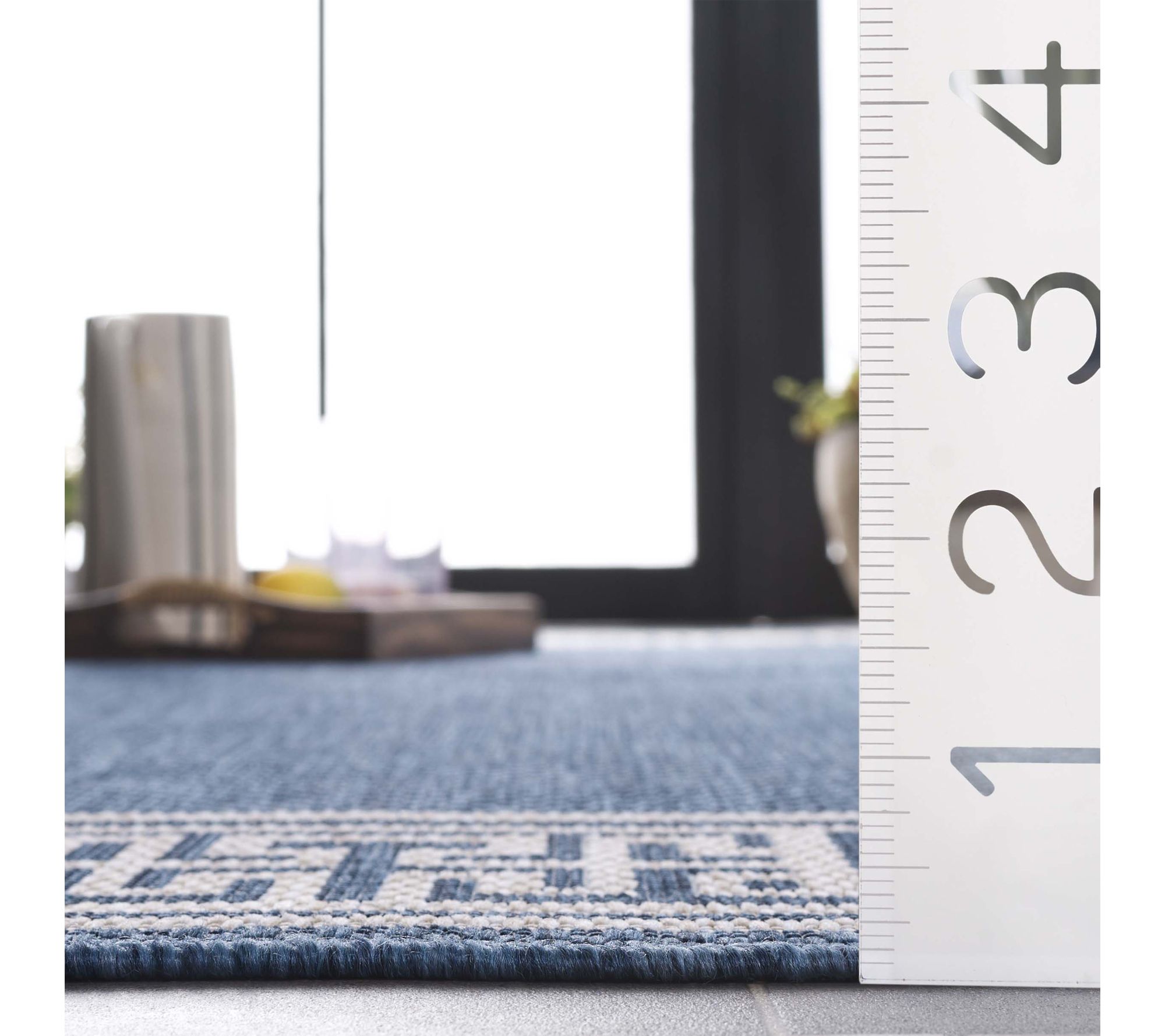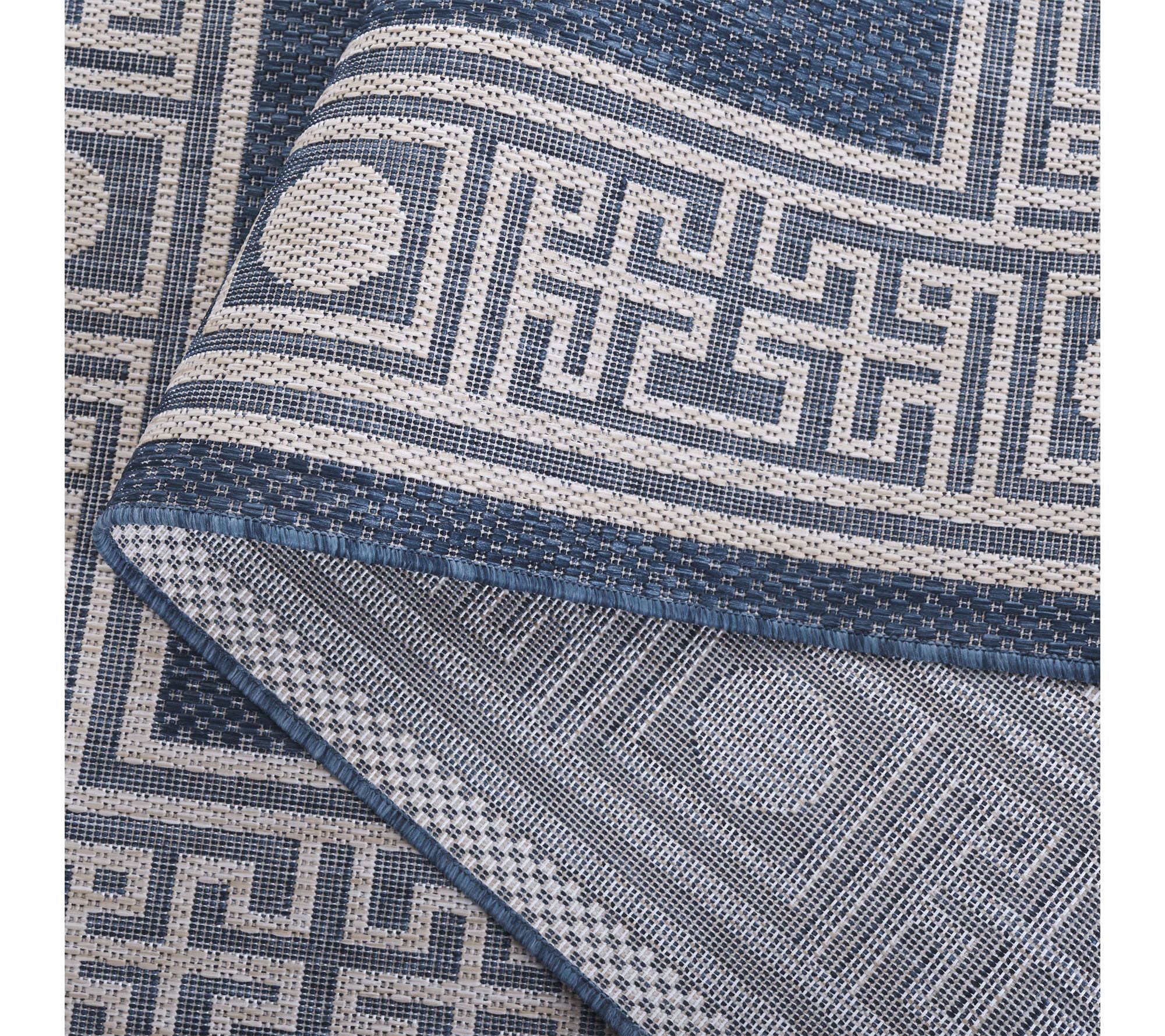 Infuse timeless sophistication into your hallway, kitchen, or patio with this area runner rug. Its sleek profile and striking blue and ivory palette create a welcoming atmosphere, while the classic border pattern enhances traditional decor. Enjoy a lasting blend of comfort and durability that's ready to handle daily life, indoors or outside. From the Valerie Parr Hill Collection.
