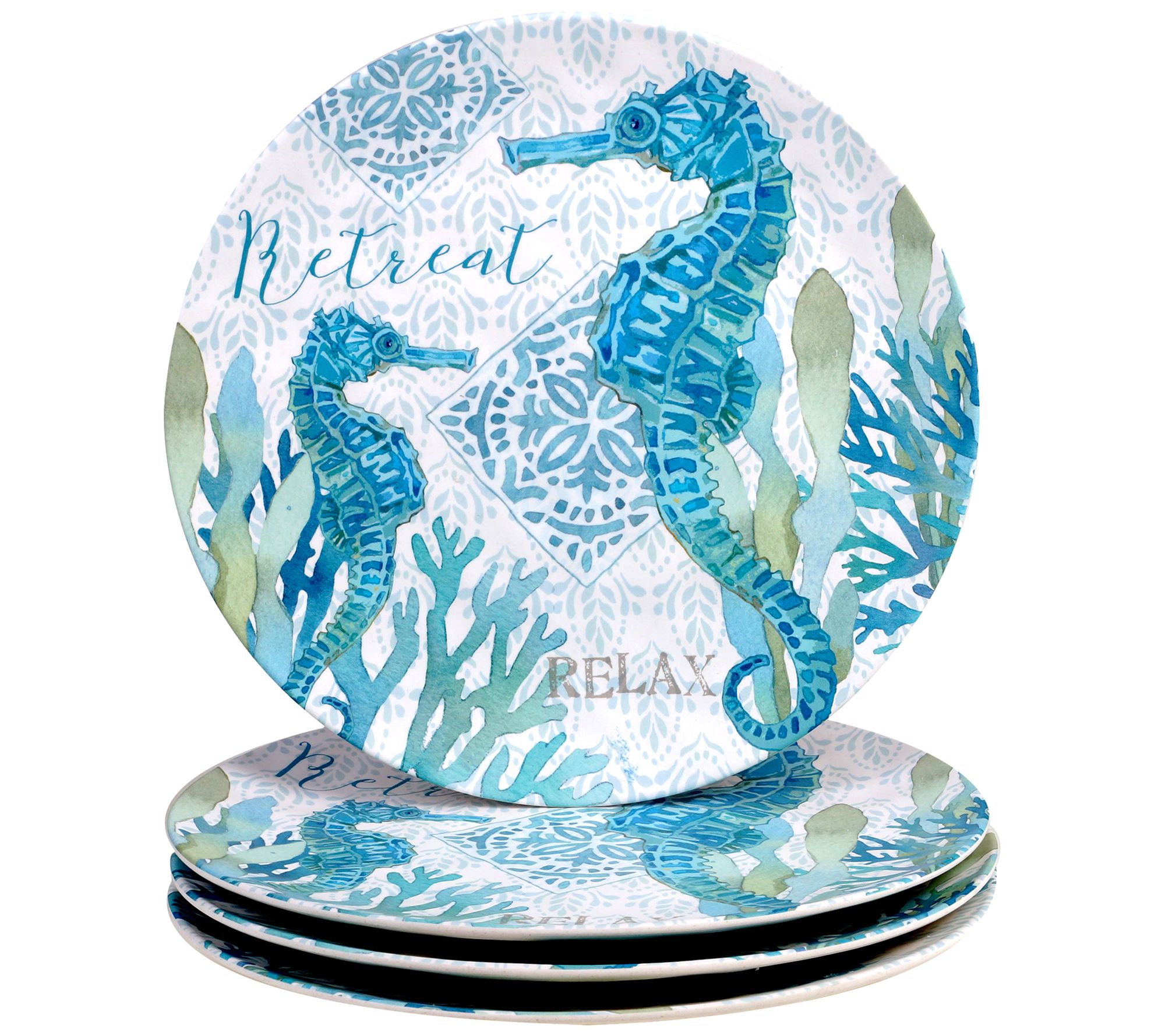 Create a coastal vibe at any mealtime or snack break with these durable dinner plates. From Certified International.