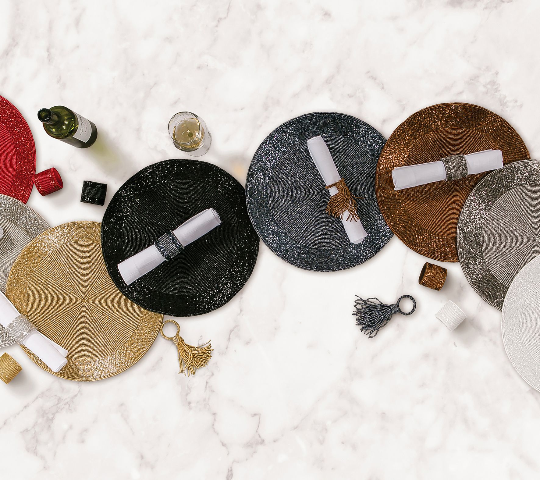 Beaded Tassle Napkin Ring Set of 6 by Valerie