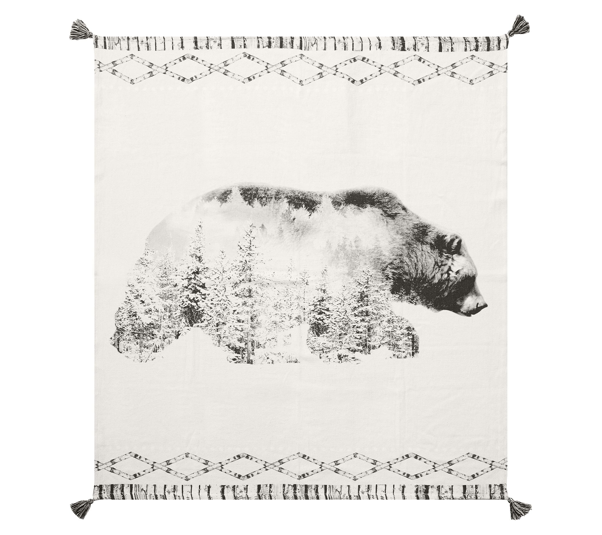 Add a fun woodland touch to your own cozy den with this printed throw blanket, featuring a bear accented by trees, and super-soft fabric that makes you want to cuddle up for a comfy night on the sofa. From the Valerie Parr Hill Collection.