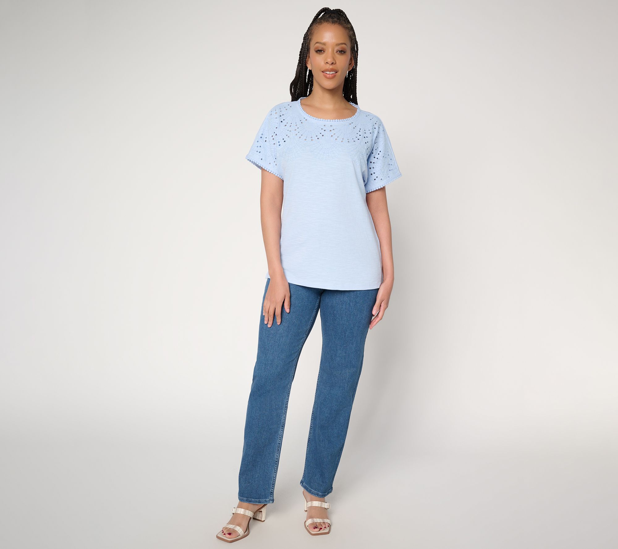 Refresh your warm-weather wardrobe with this breezy dolman top, featuring a charming novelty eyelet design and a flattering boat neckline. Its classic silhouette pairs effortlessly with anything from jeans to shorts. From BEAUTIFUL by Lawrence Zarian.