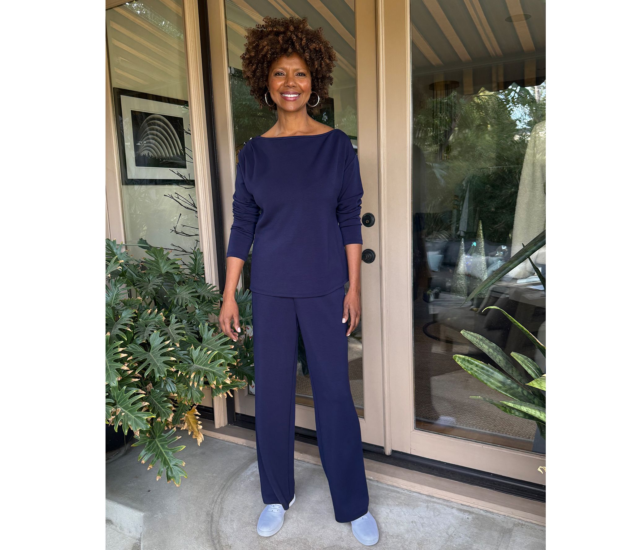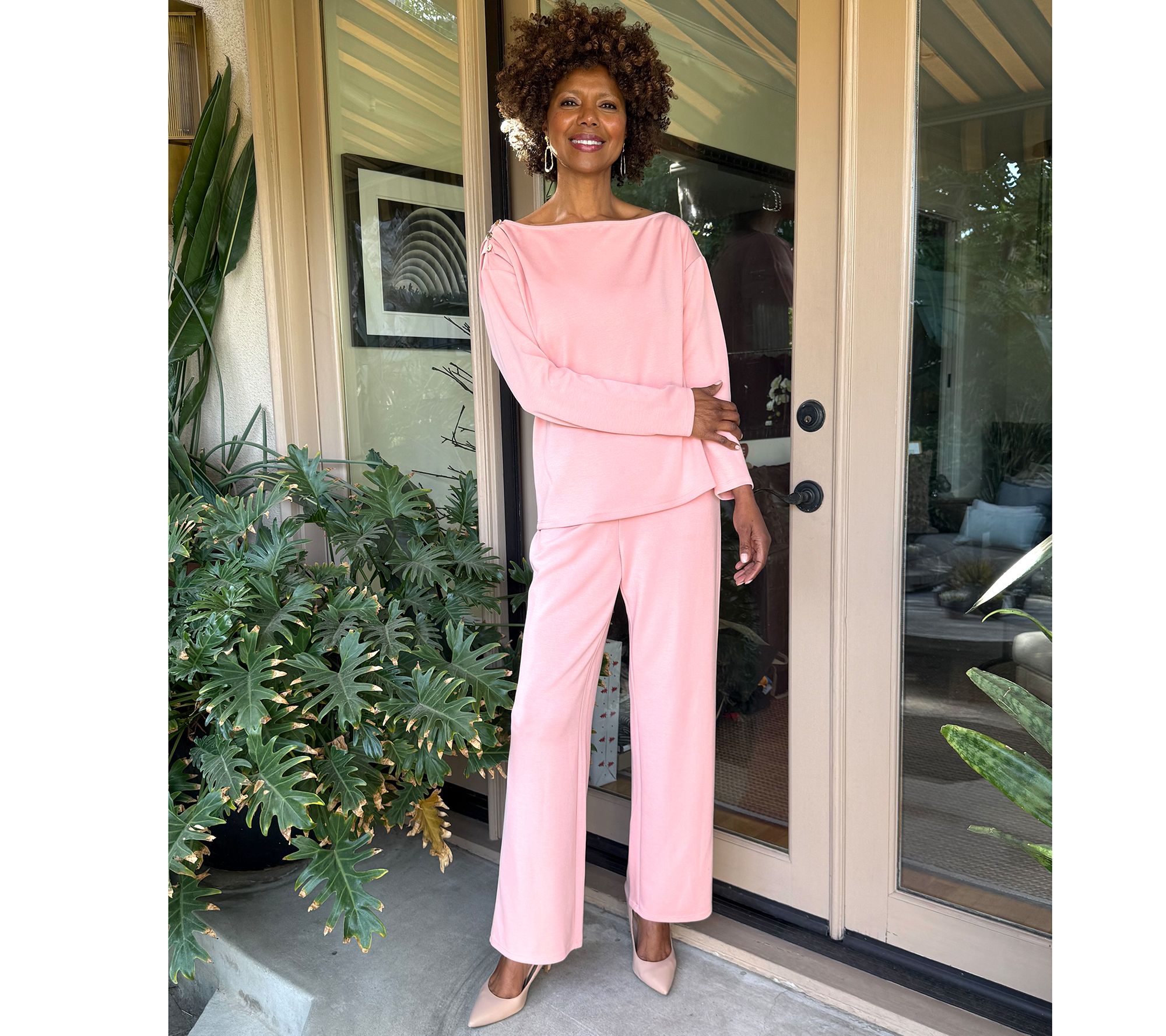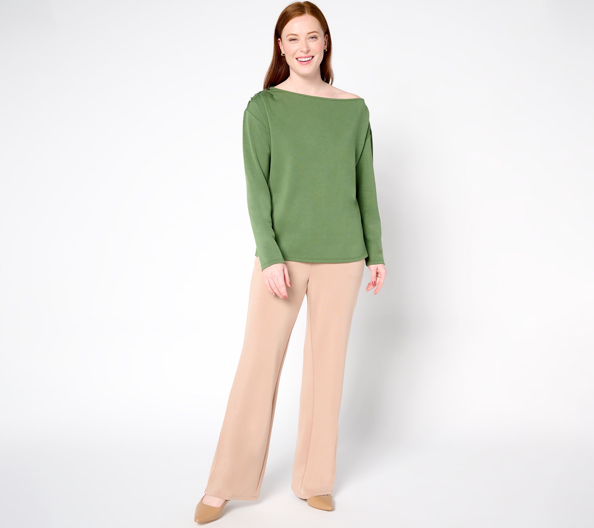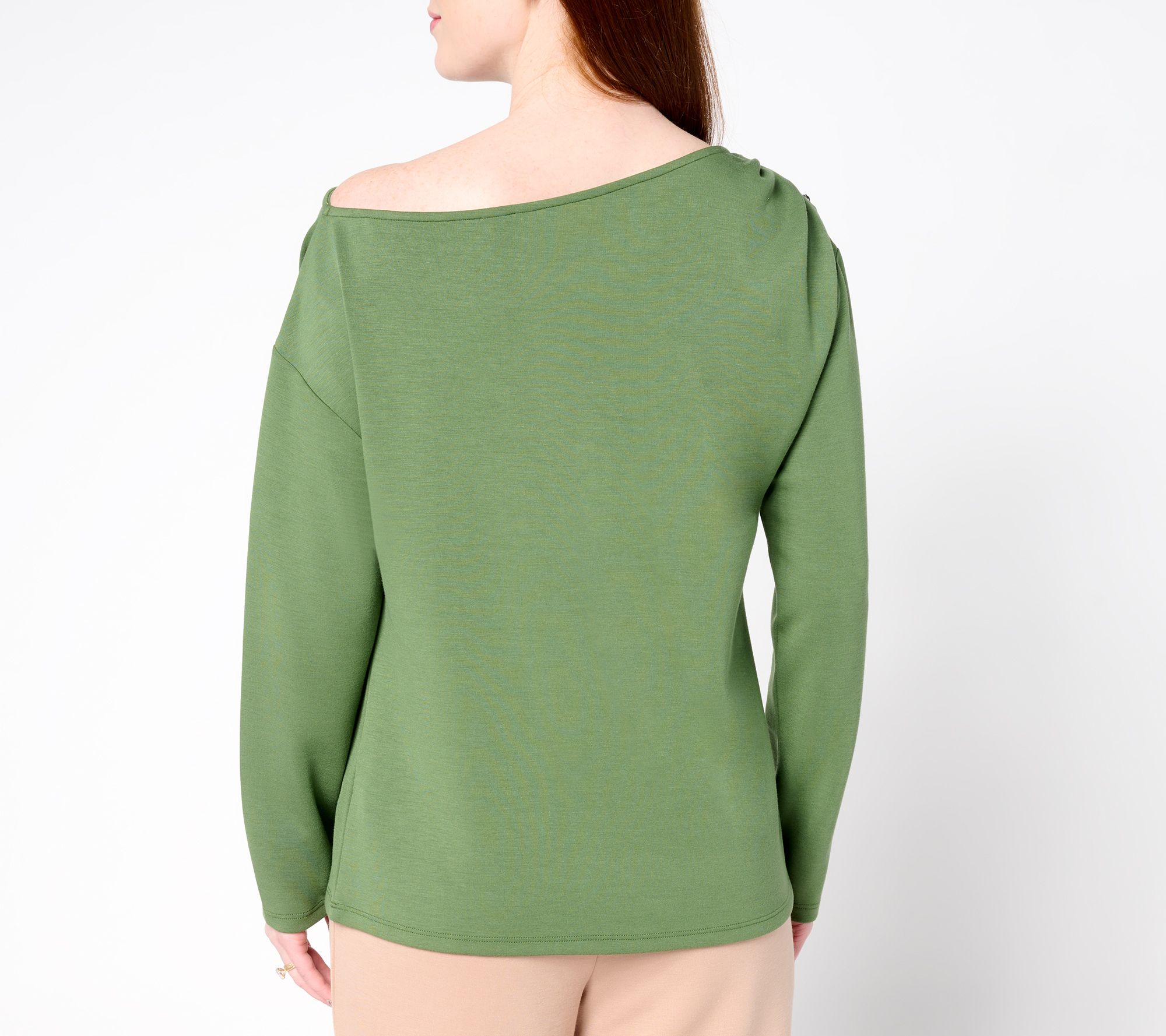 A little asymmetrical drama at the neckline elevates this drop shoulder top from a reliable basic to a standout separate. Decorative gathering and button details complete the distinctive design. From BEAUTIFUL by Lawrence Zarian.