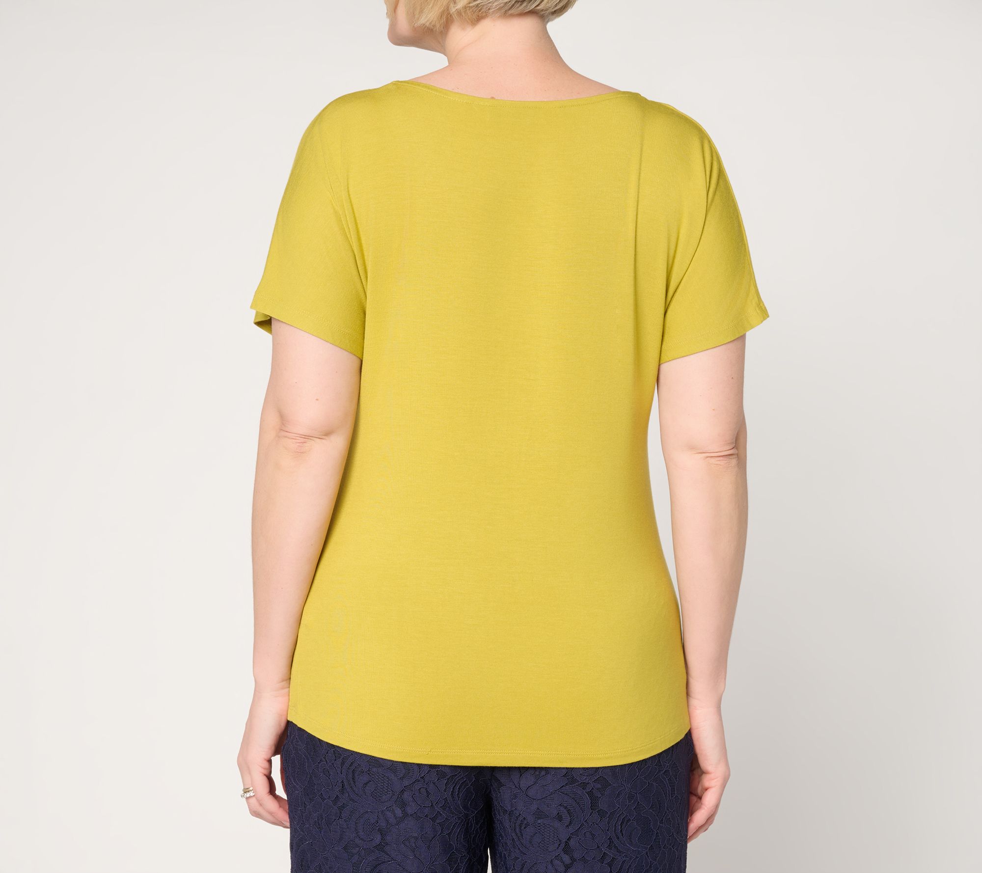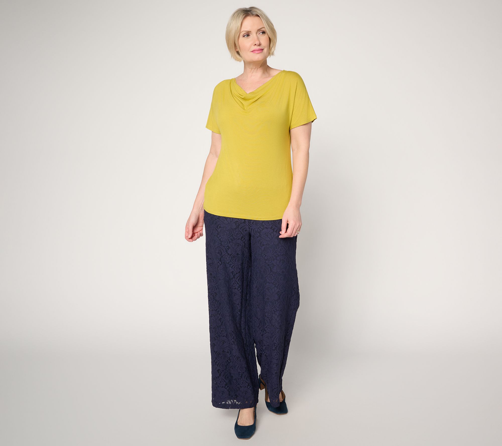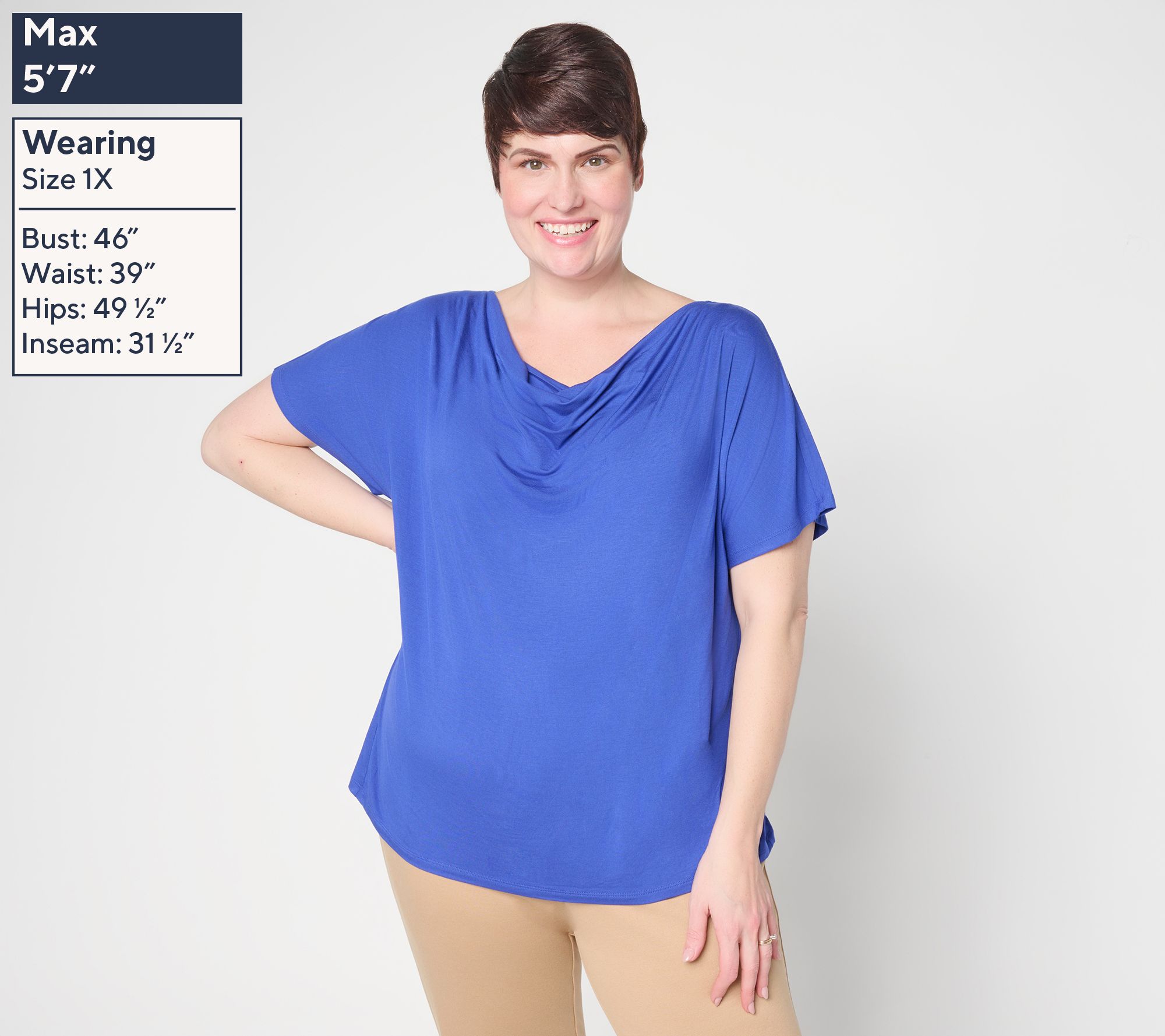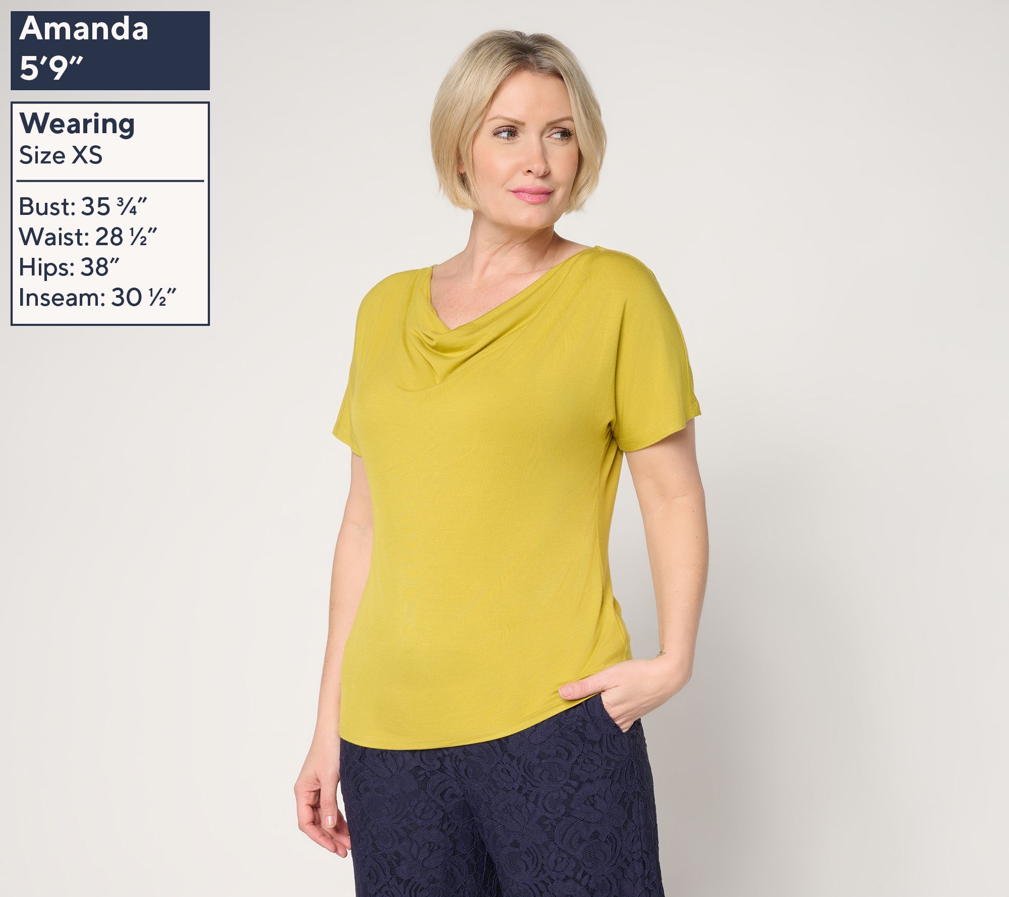 Ease into any day with this knit top, designed with a graceful cowl neckline and comfy short sleeves for a look that's both effortless and polished. The semi-fitted shape complements everything from tailored trousers at the office to your favorite jeans during weekend outings. From BEAUTIFUL by Lawrence Zarian.