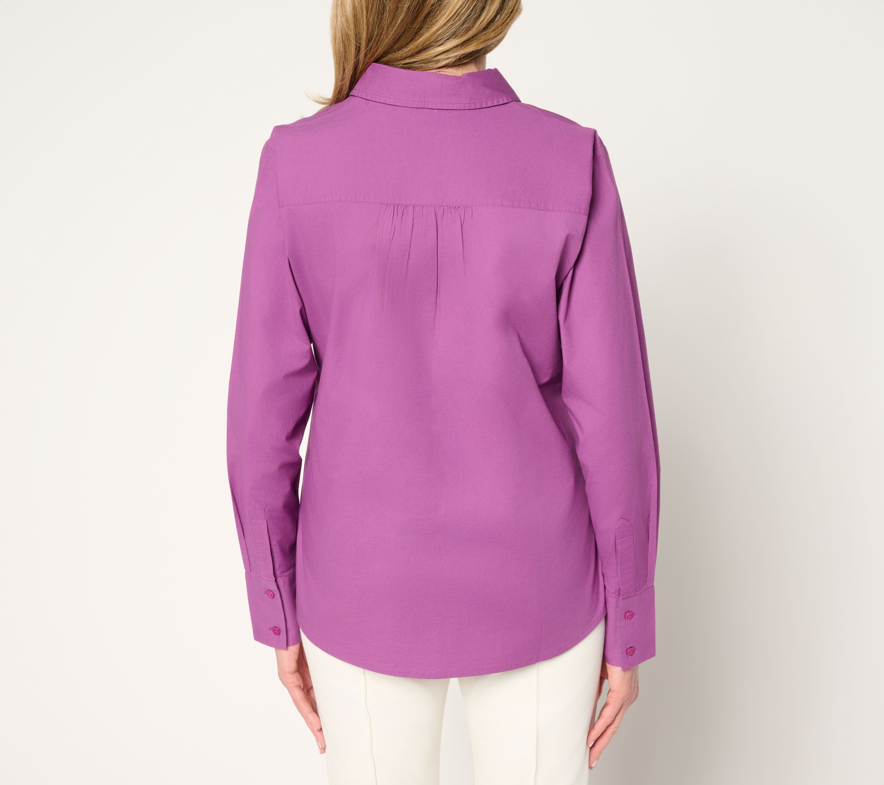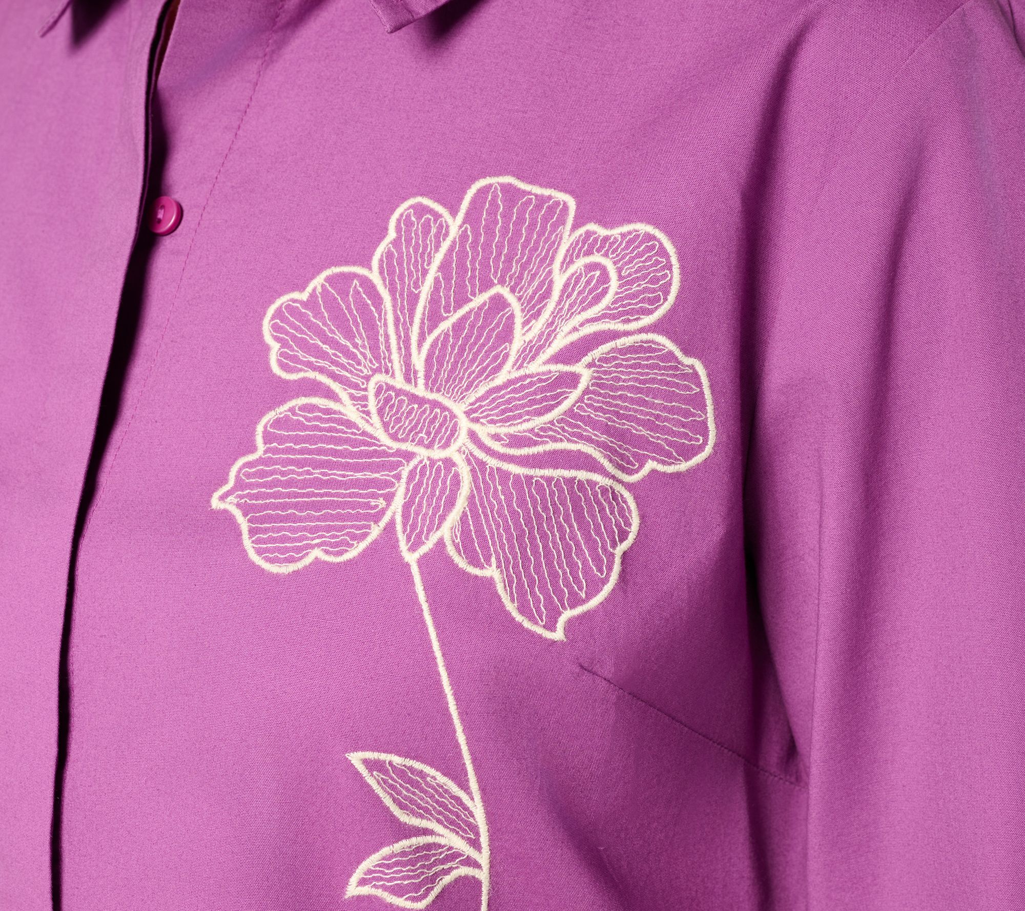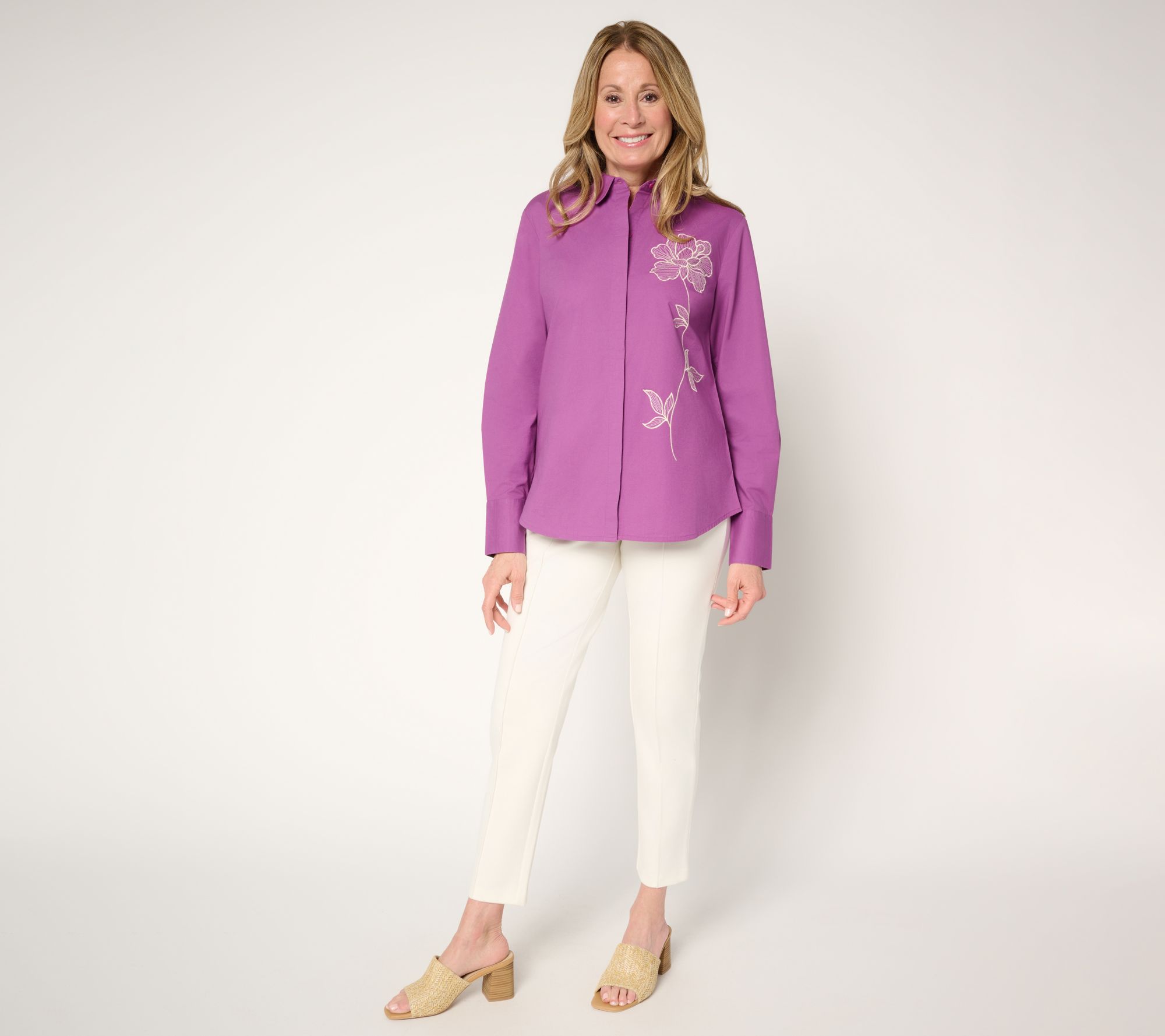 Ban boring button-downs from your wardrobe with this stylish upgrade! Combining sophisticated detailing with casual comfort, this embroidered long-sleeve shirt offers a versatile look that's perfect for any occasion, whether you're heading to a casual brunch or a day at the office. From BEAUTIFUL by Lawrence Zarian.