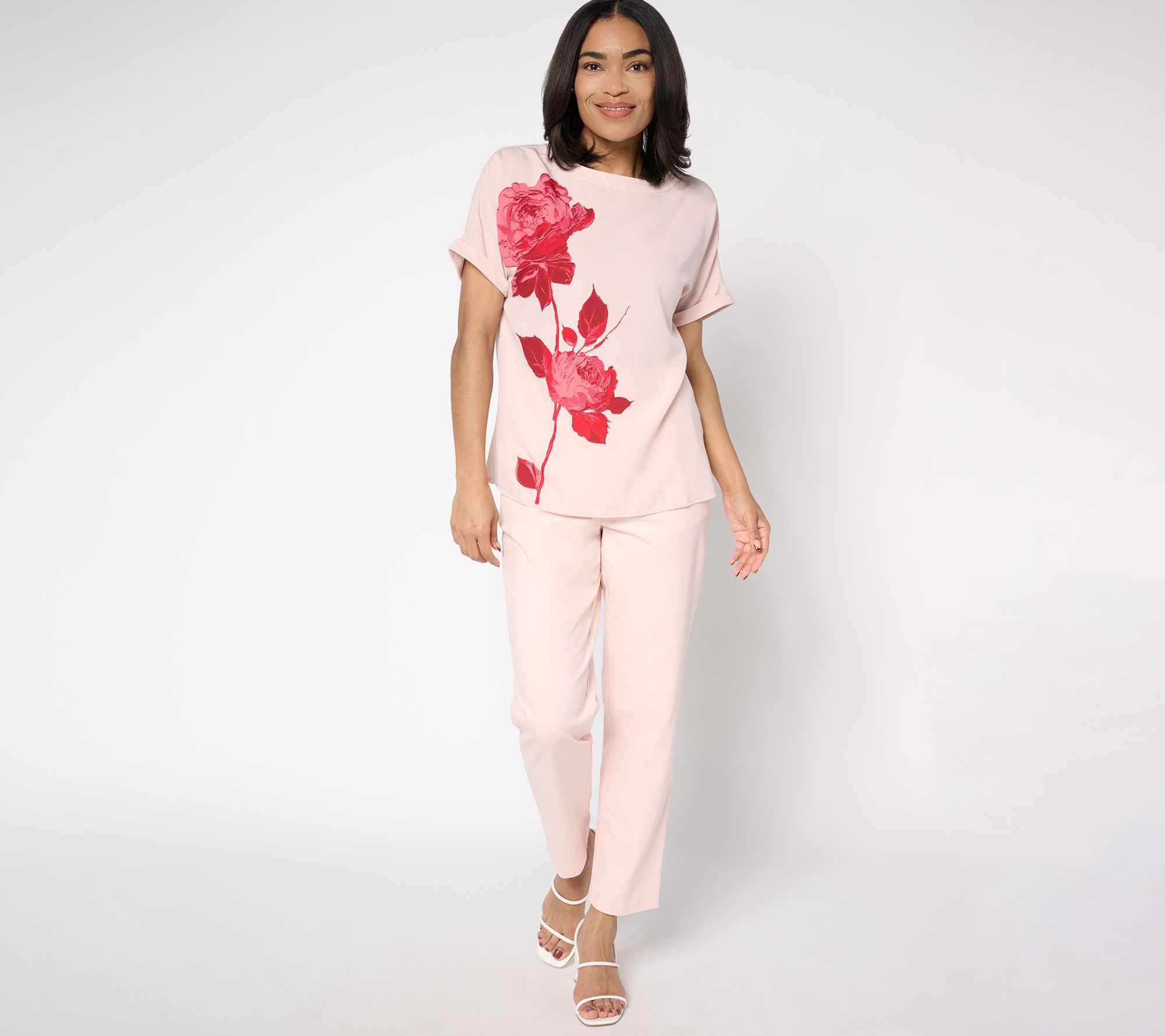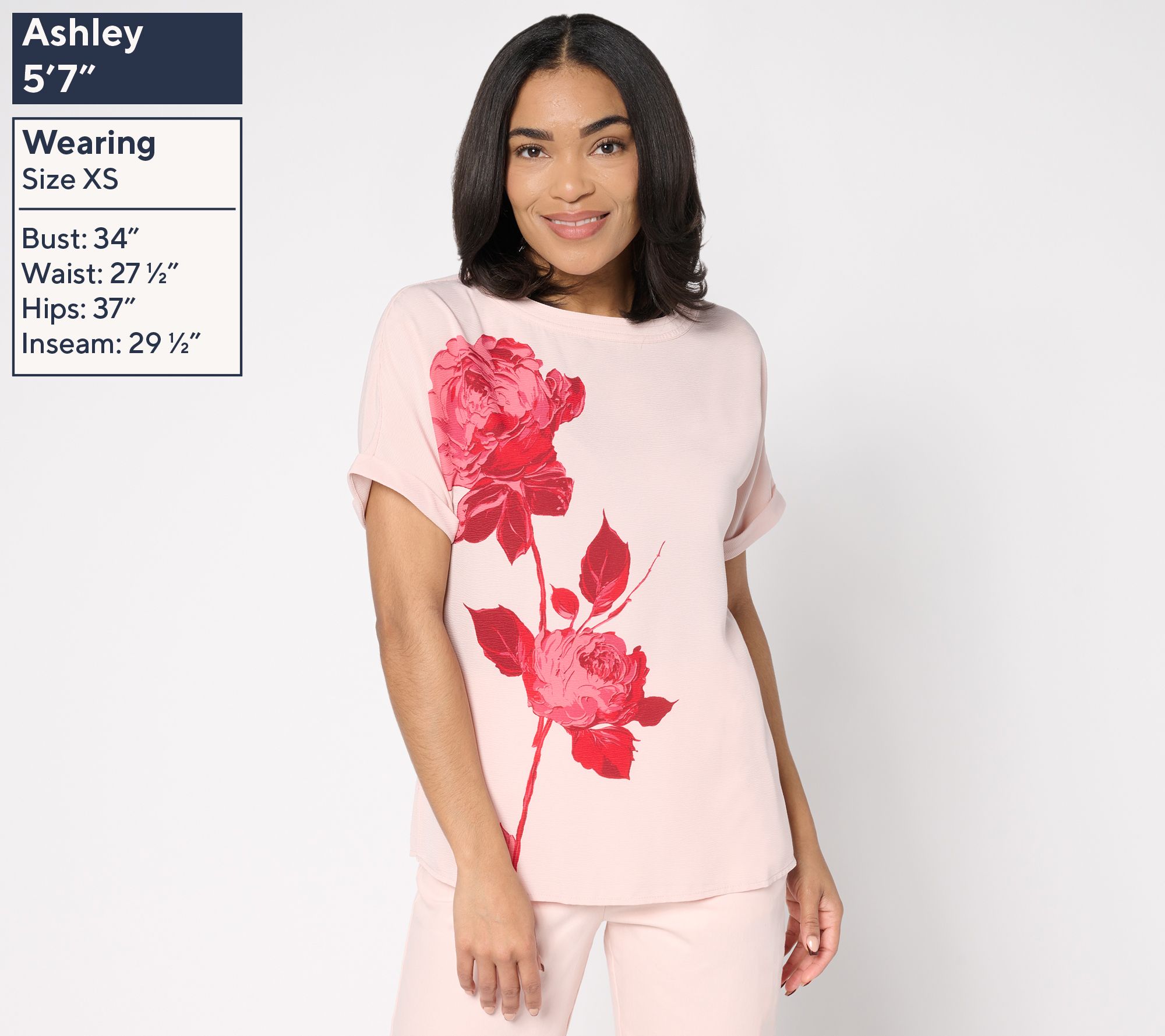 Freshen up your fashion options with this pretty and playful floral printed top. From BEAUTIFUL by Lawrence Zarian.