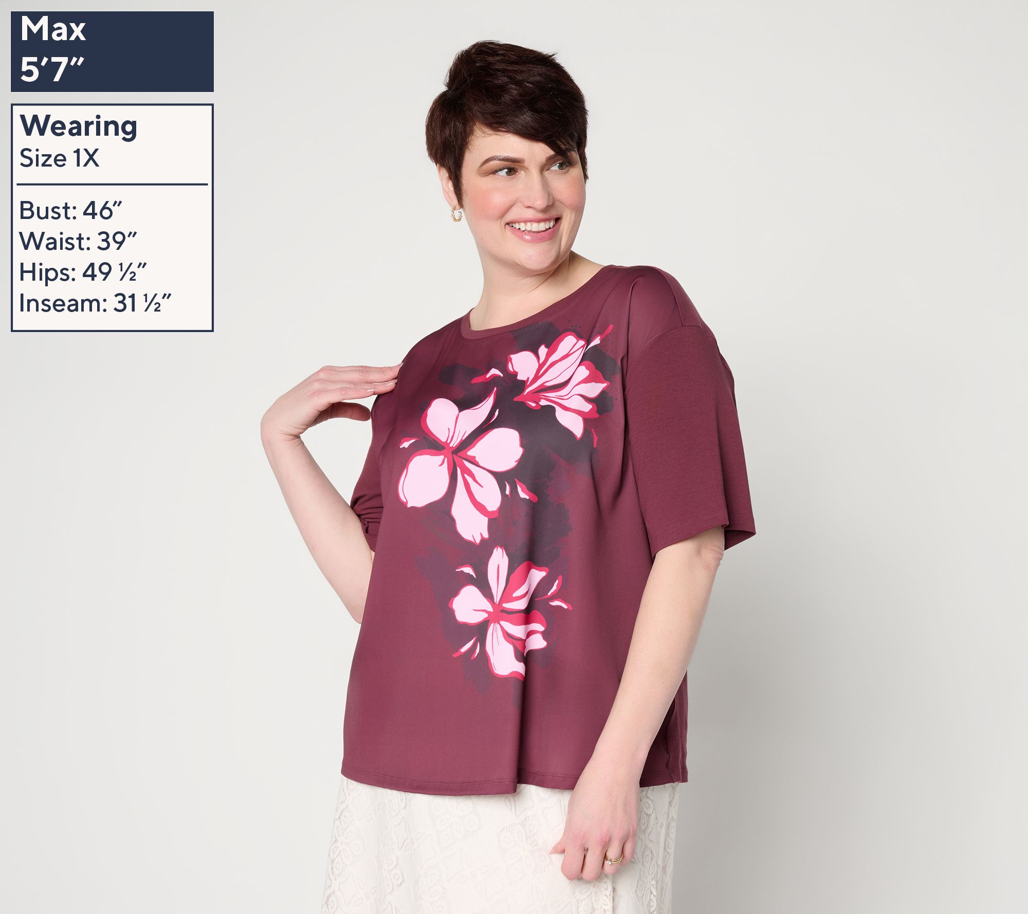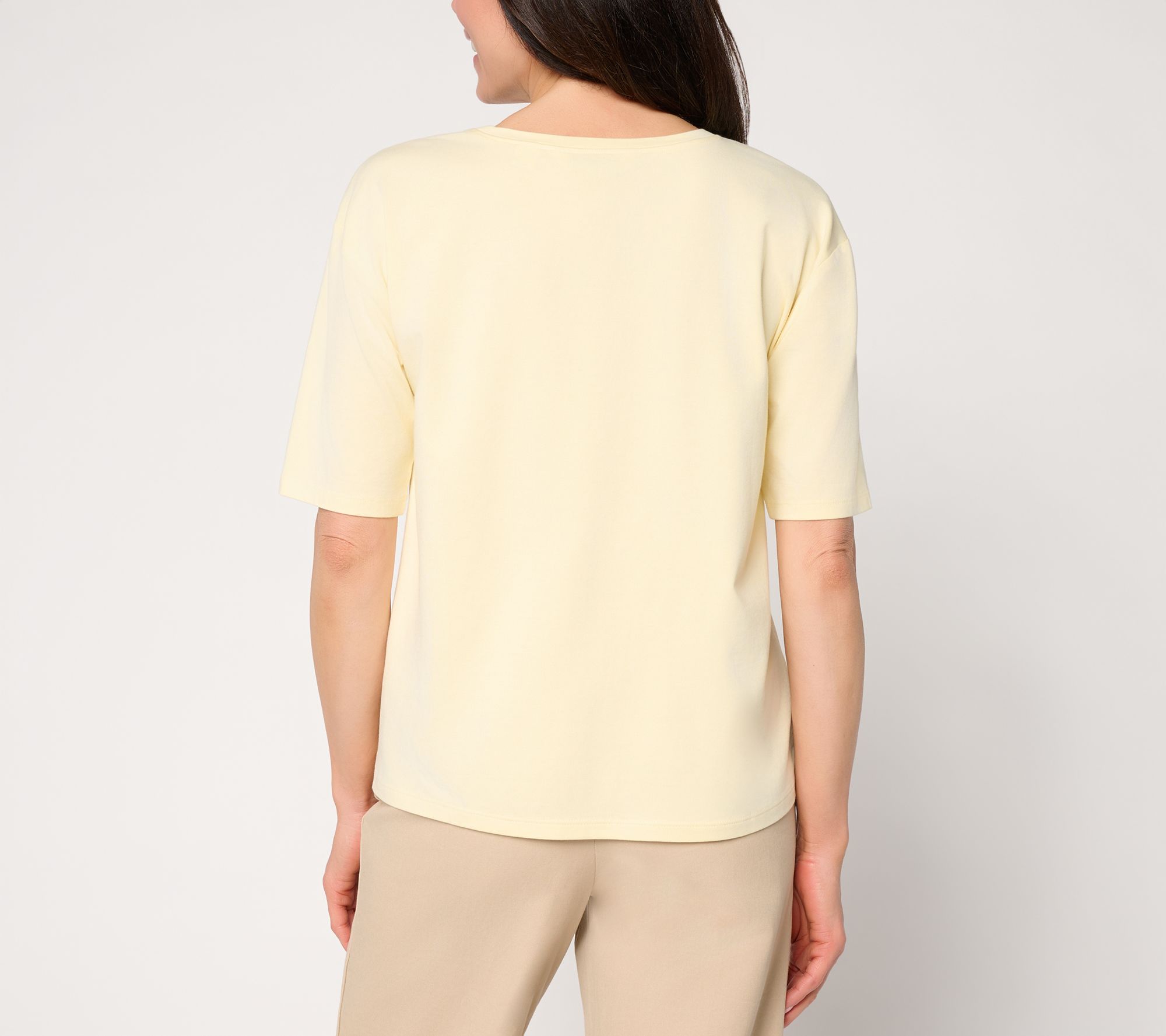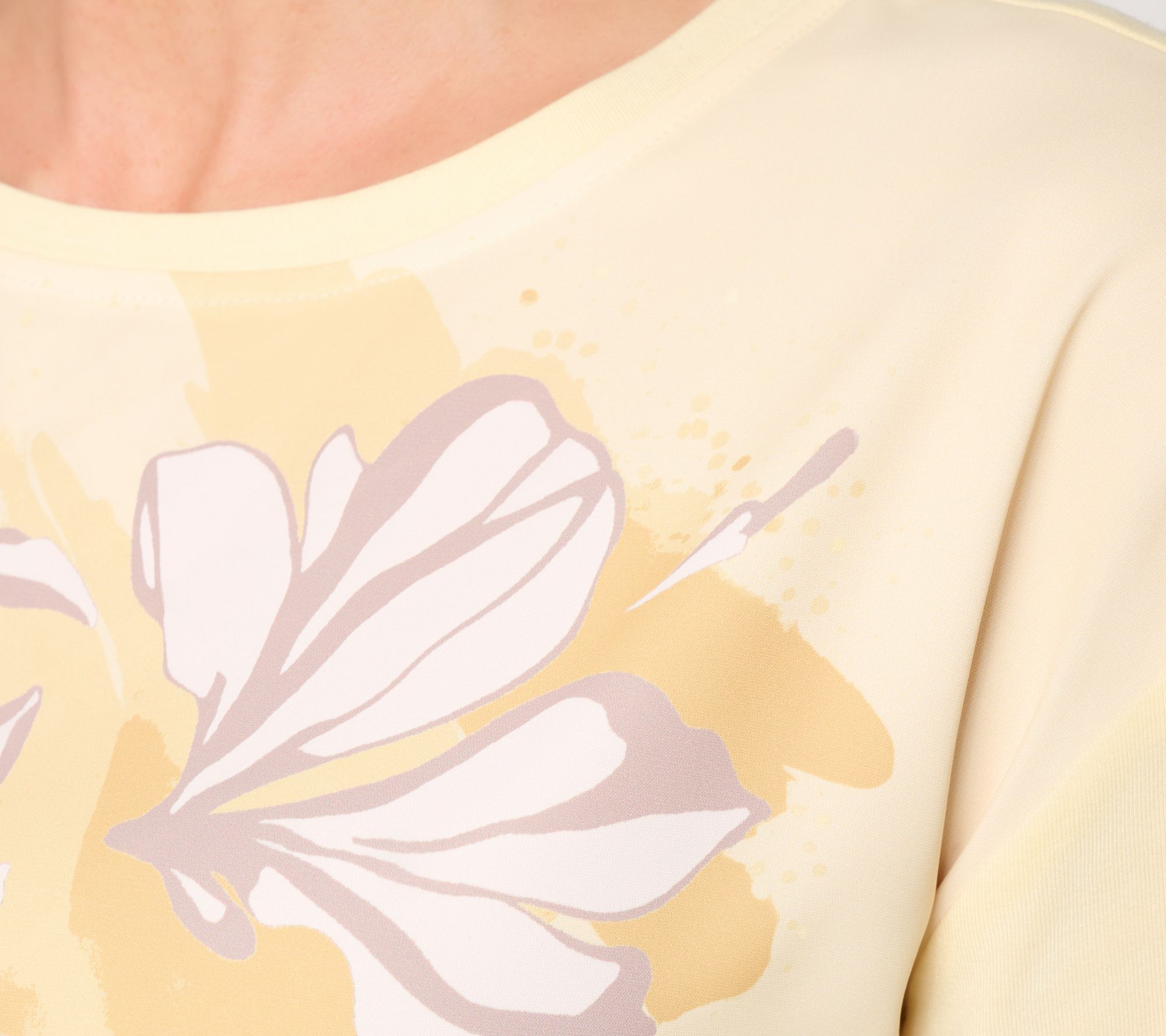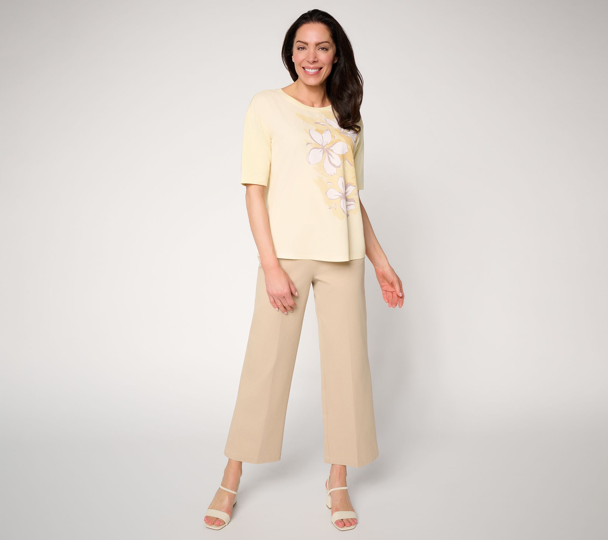 Soft prints and a graceful silhouette make this woven and knit top a standout for casual Fridays, relaxed lunches, or catching up with friends. The versatile elbow-length sleeves and smooth stretch invite effortless pairing with slacks or denim for a pulled-together look no matter the occasion. From BEAUTIFUL by Lawrence Zarian.